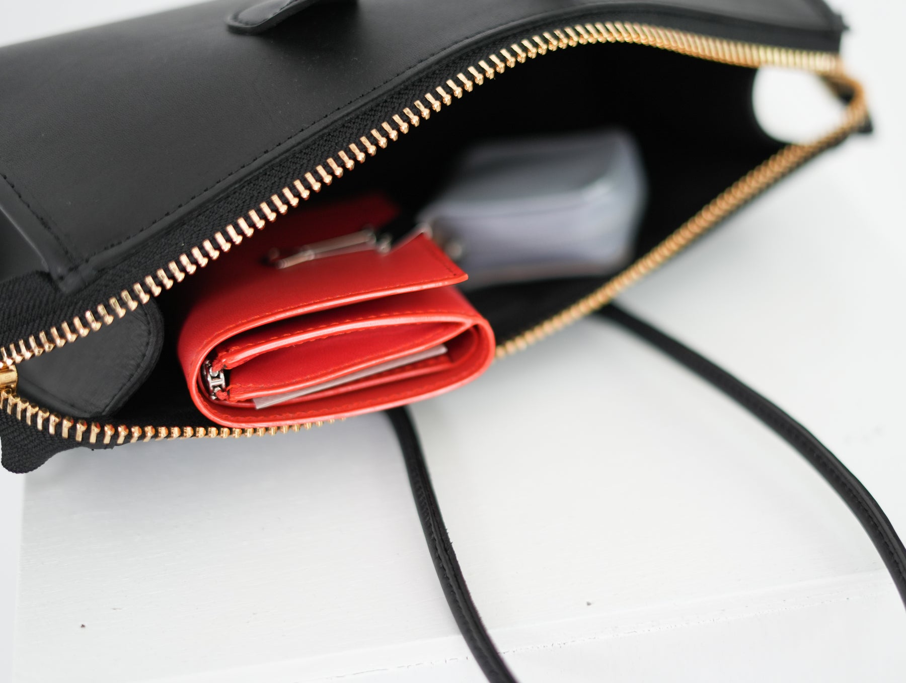 ペットボトルやポーチ、長財布も余裕で収納できます。