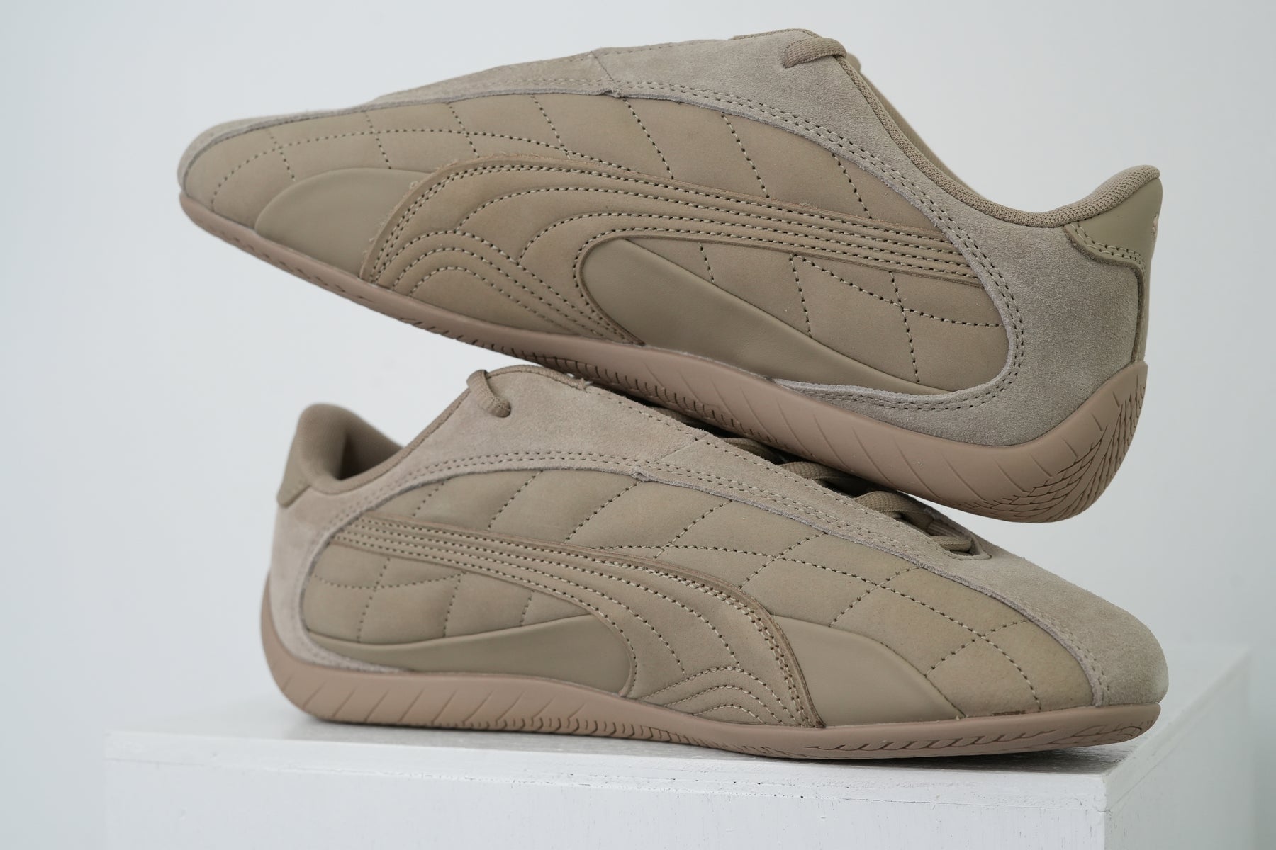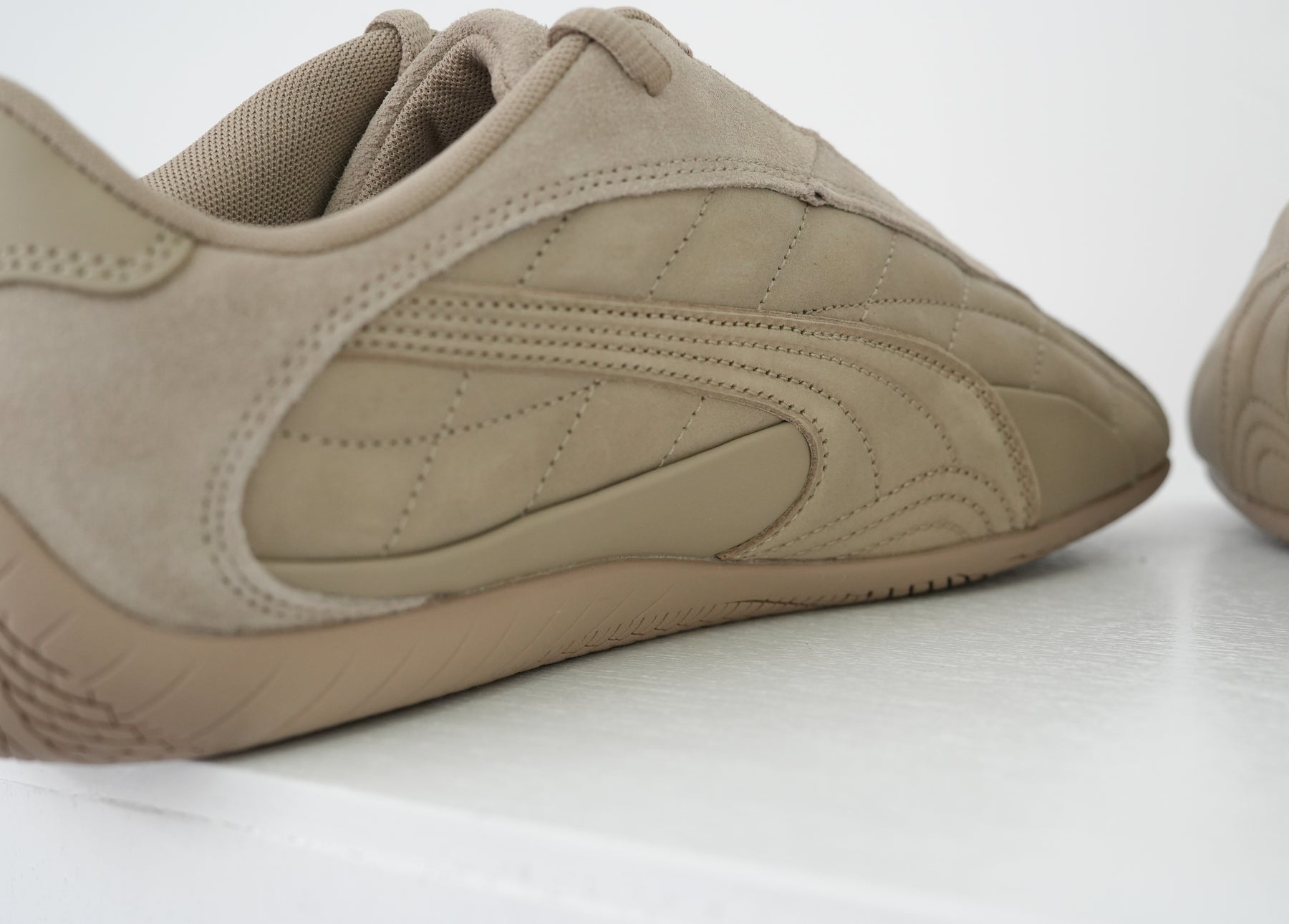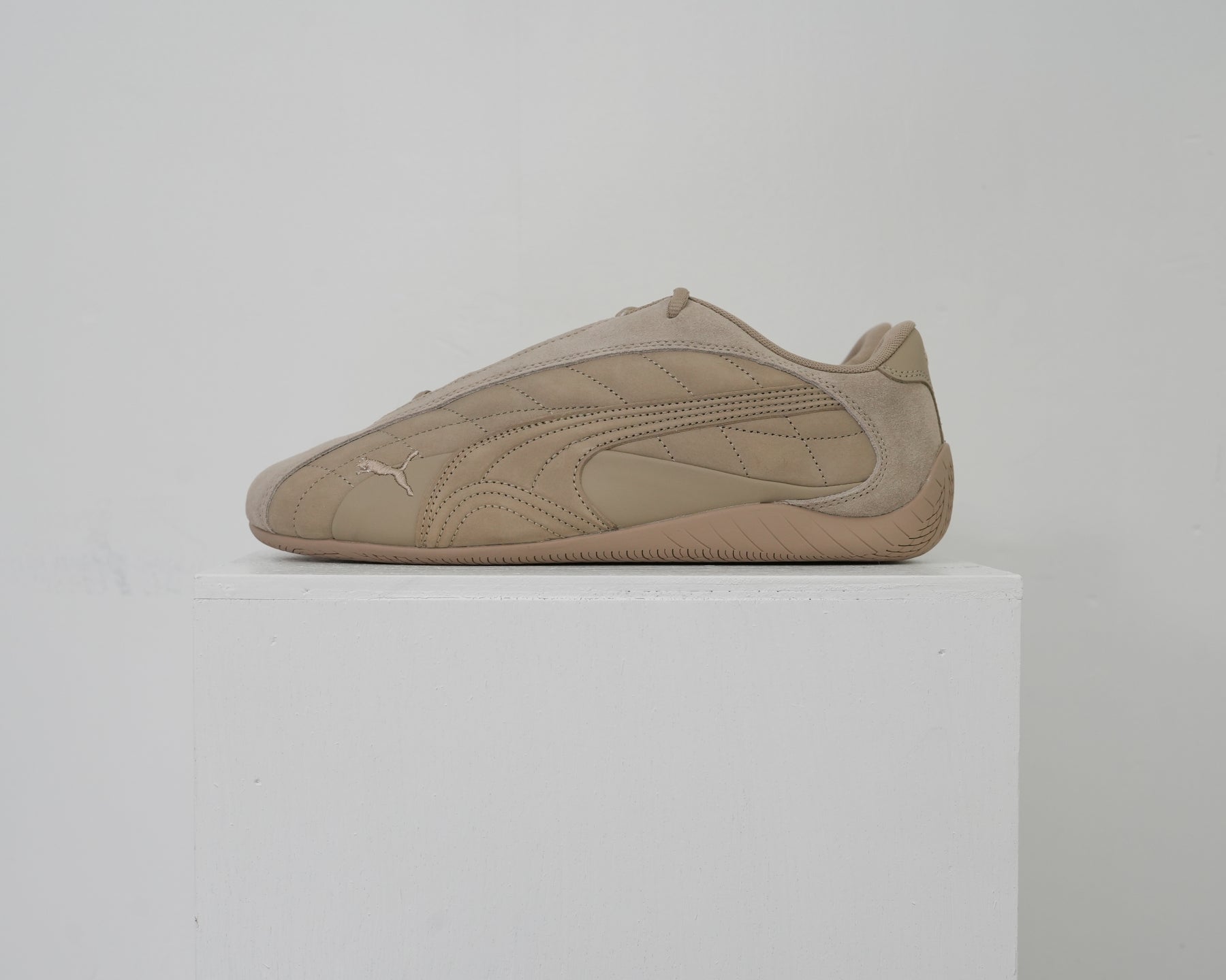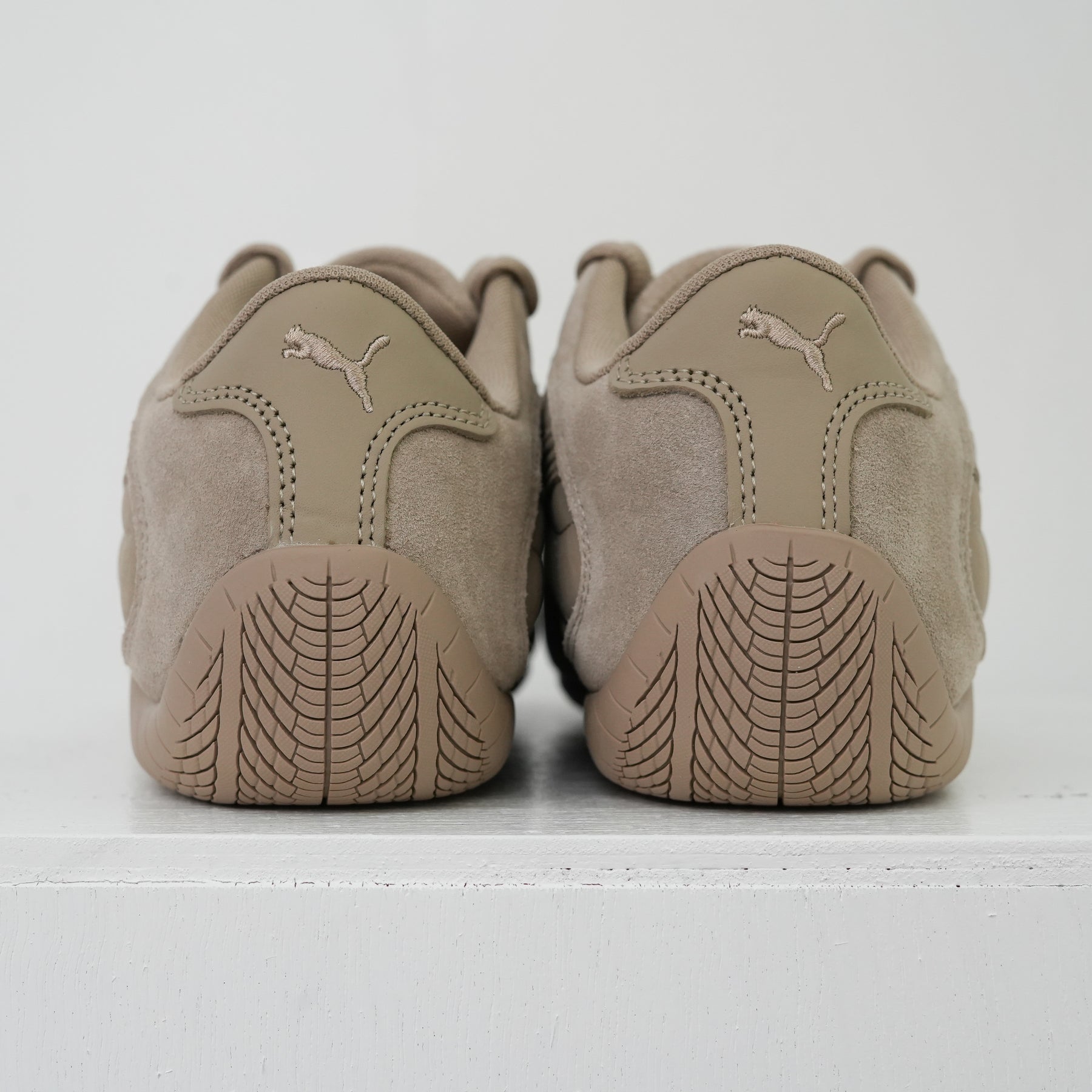 1999年に誕生し、80年代から90年代にかけてF1グランプリのドライバーが履いていた耐熱レーシングシューズをベースにしたライフスタイルシューズ。レーシングにインスパイアされたなめらかなラインと空気力学に基づいたデザインにより、ファッションやスニーカーカルチャーに衝撃を与えてきました。アイレットを隠したミニマルなSPEEDCAT PLUSをベースに、25AWのテーマを表現する様、アッパーにはスムース、ショートスエード、ヌバックの3つの革を使用し、ソール、刺繍すべてを同色で統一したモダンな仕上がりに。