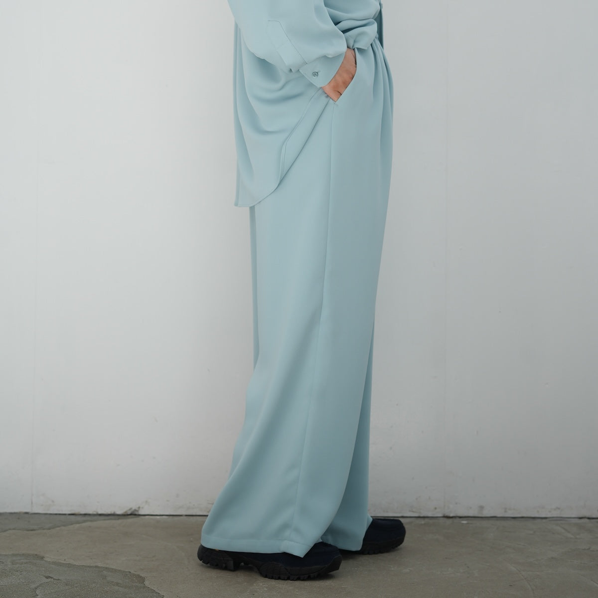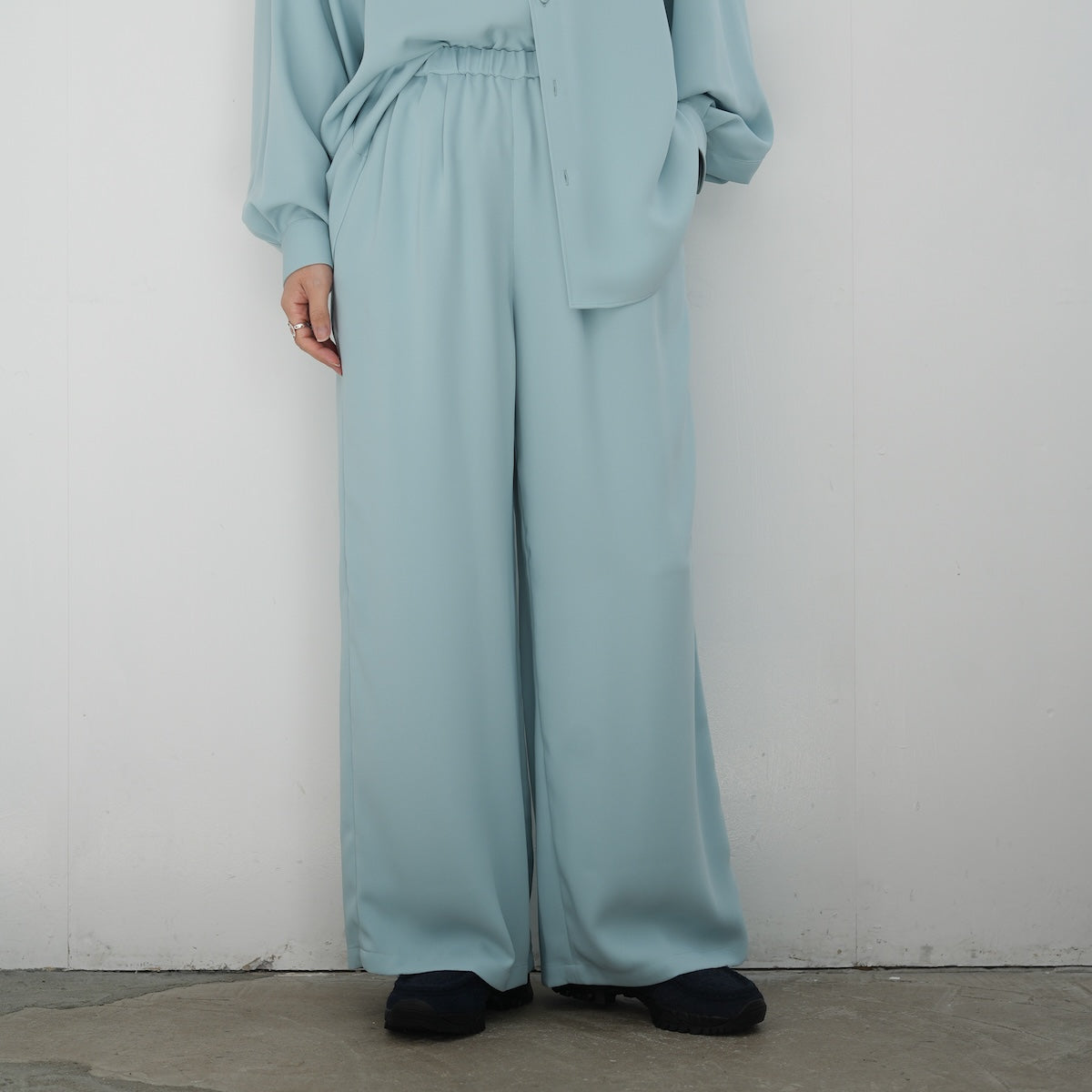 Graphpaper Satin Easy Wide Pants "SMOKE BLUE"