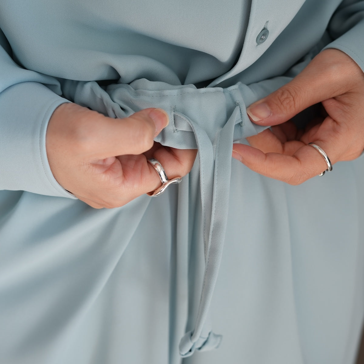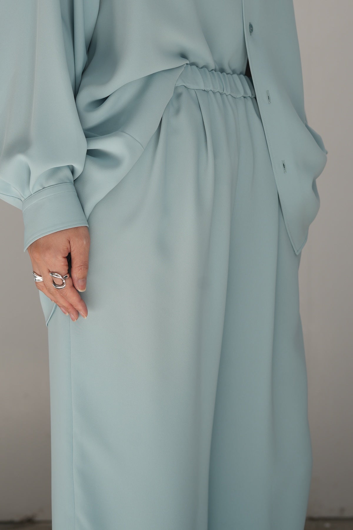 たっぷりとボリュームのあるストレートシルエットで、歩くたびに揺れる生地のドレープ感が美しい1着。