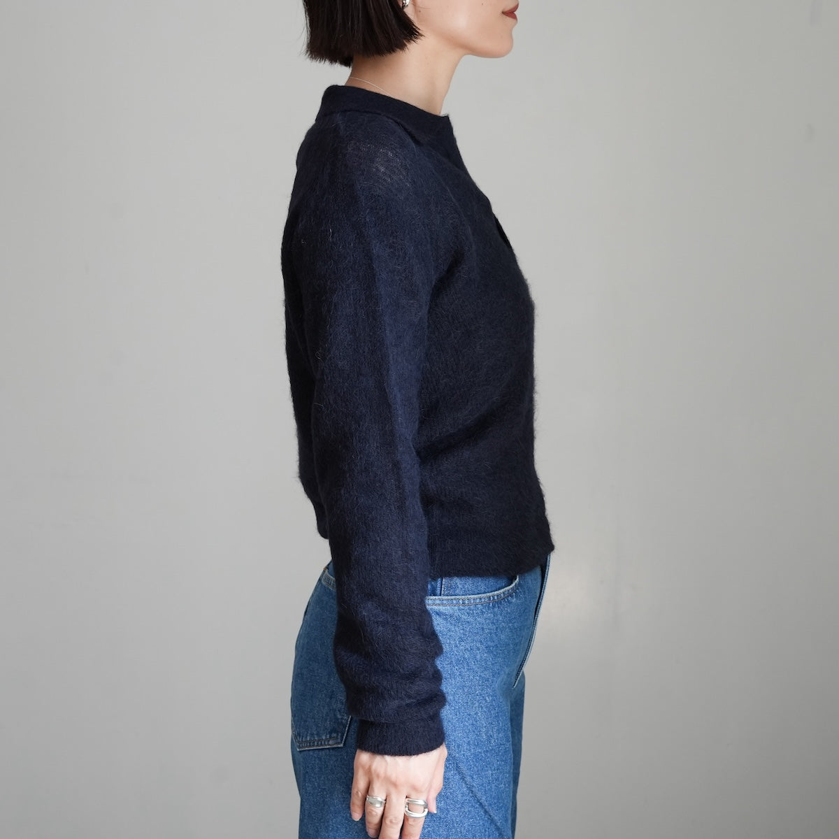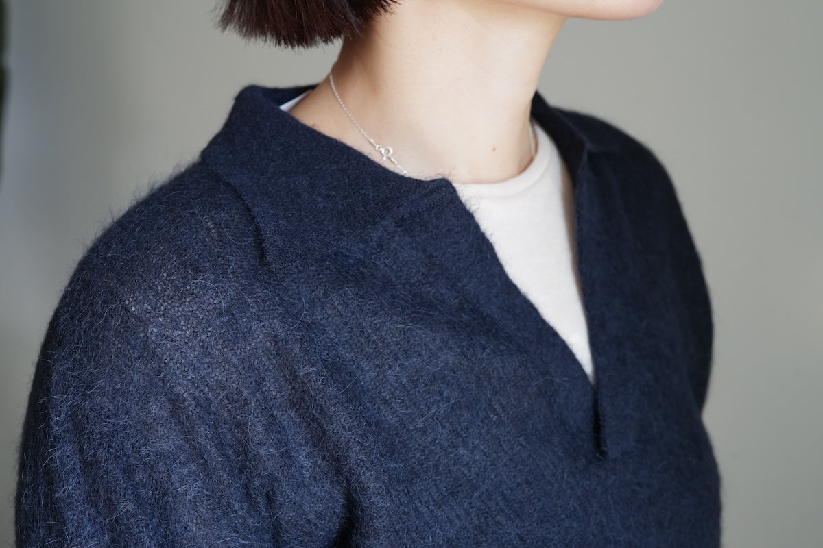 【25AW】AURALEE BABY SURI ALPACA SHEER KNIT SKIPPER POLO "NAVY"