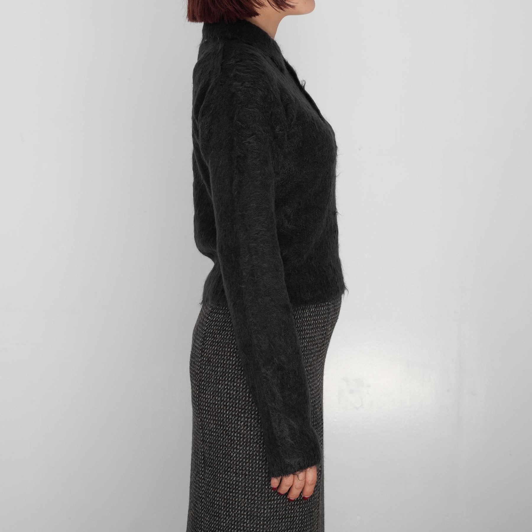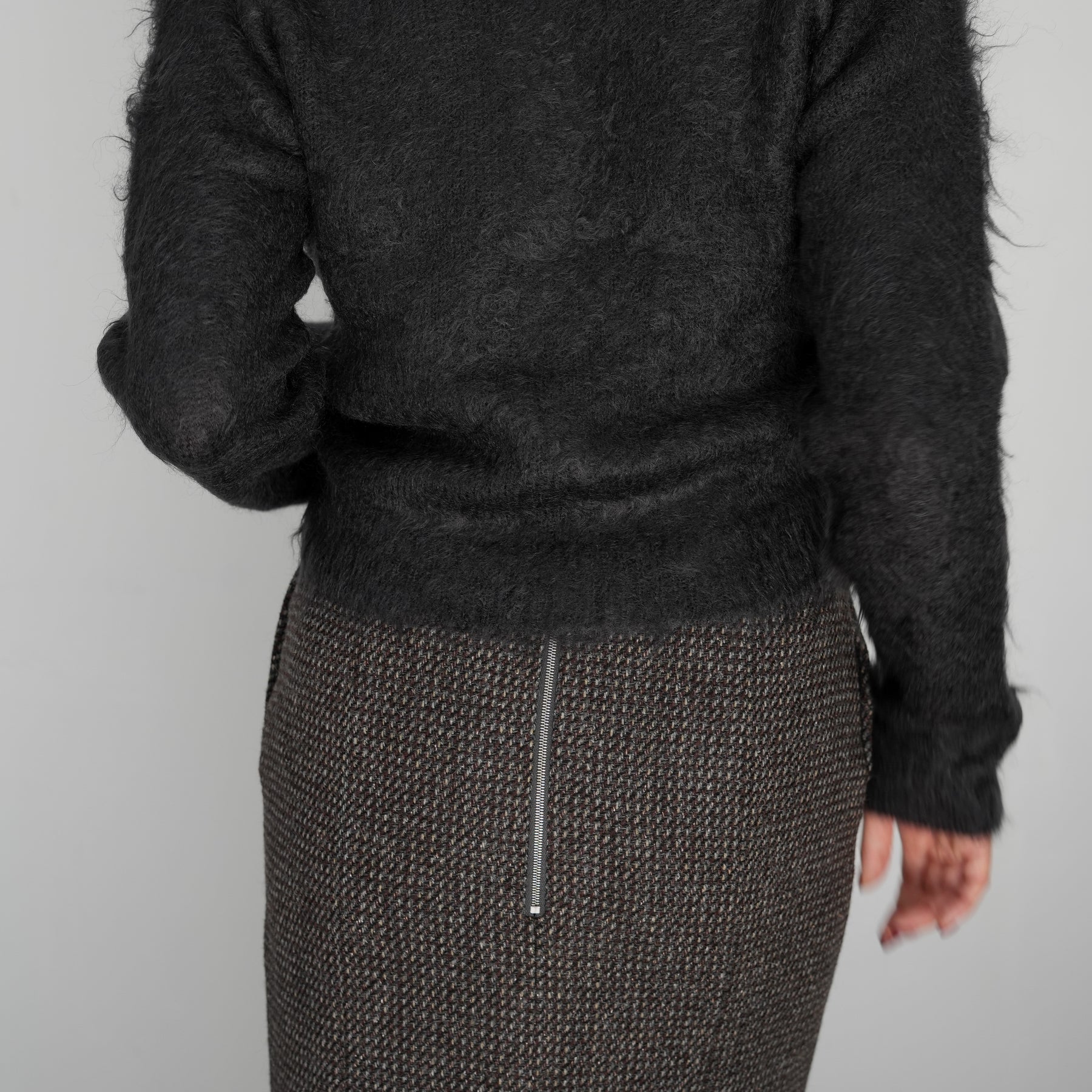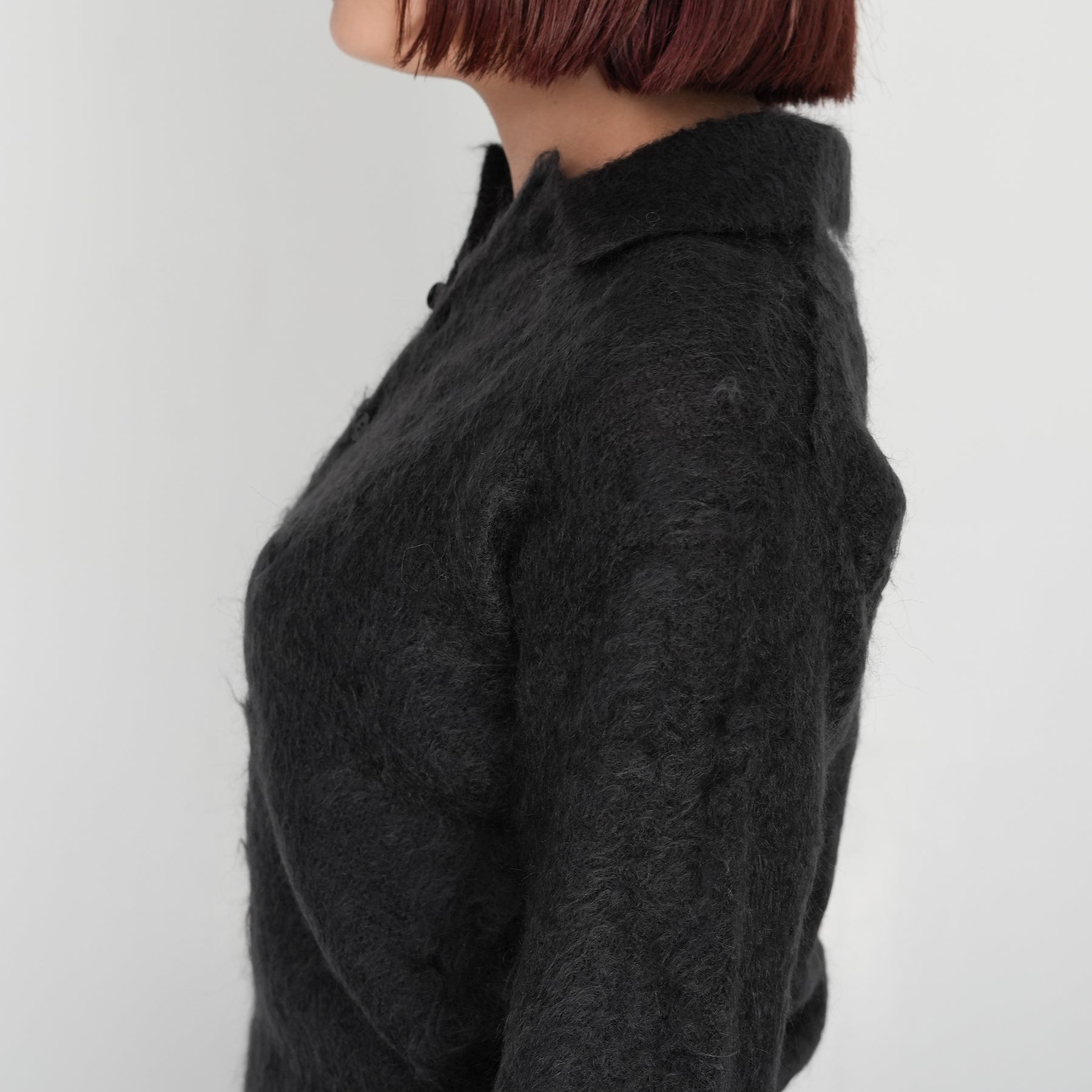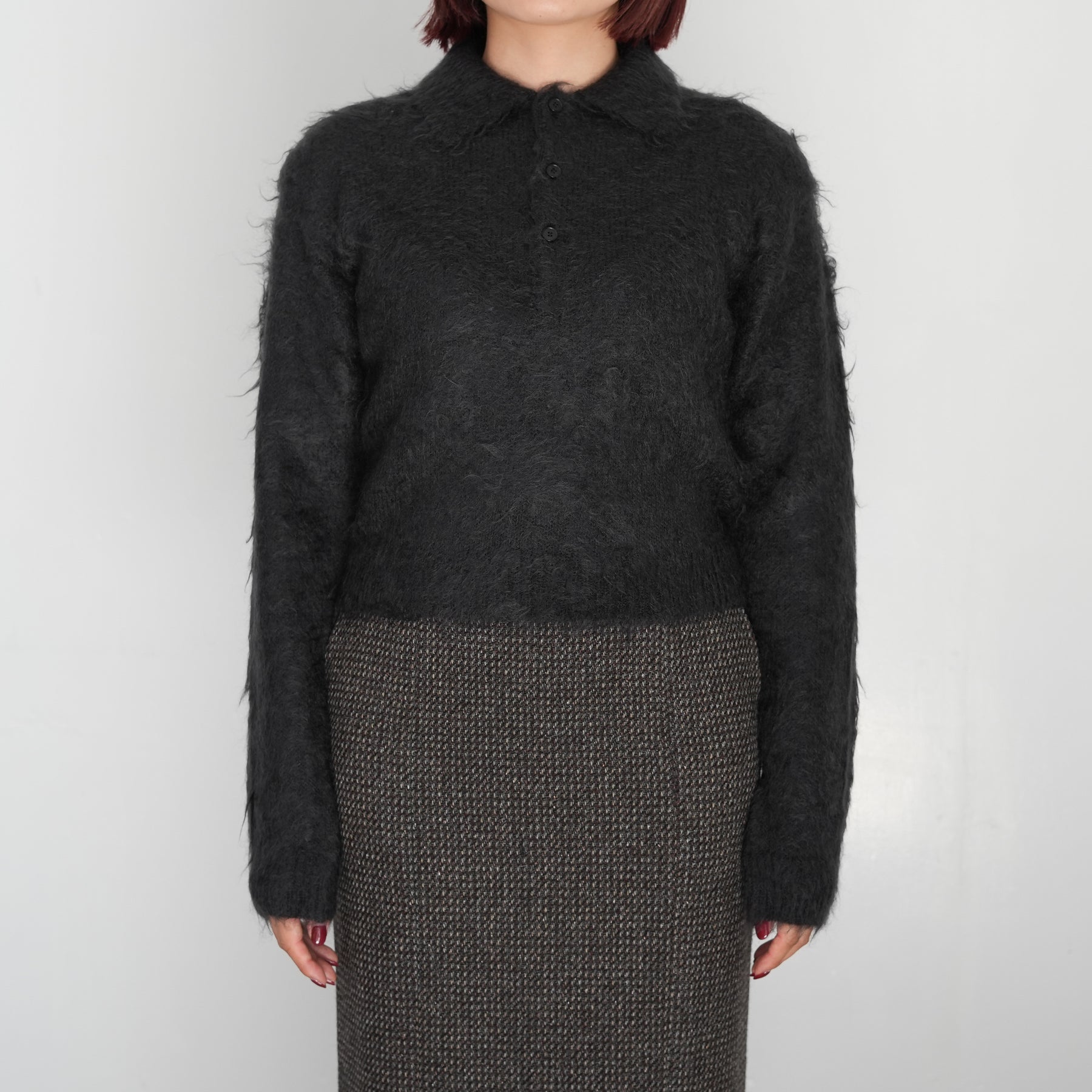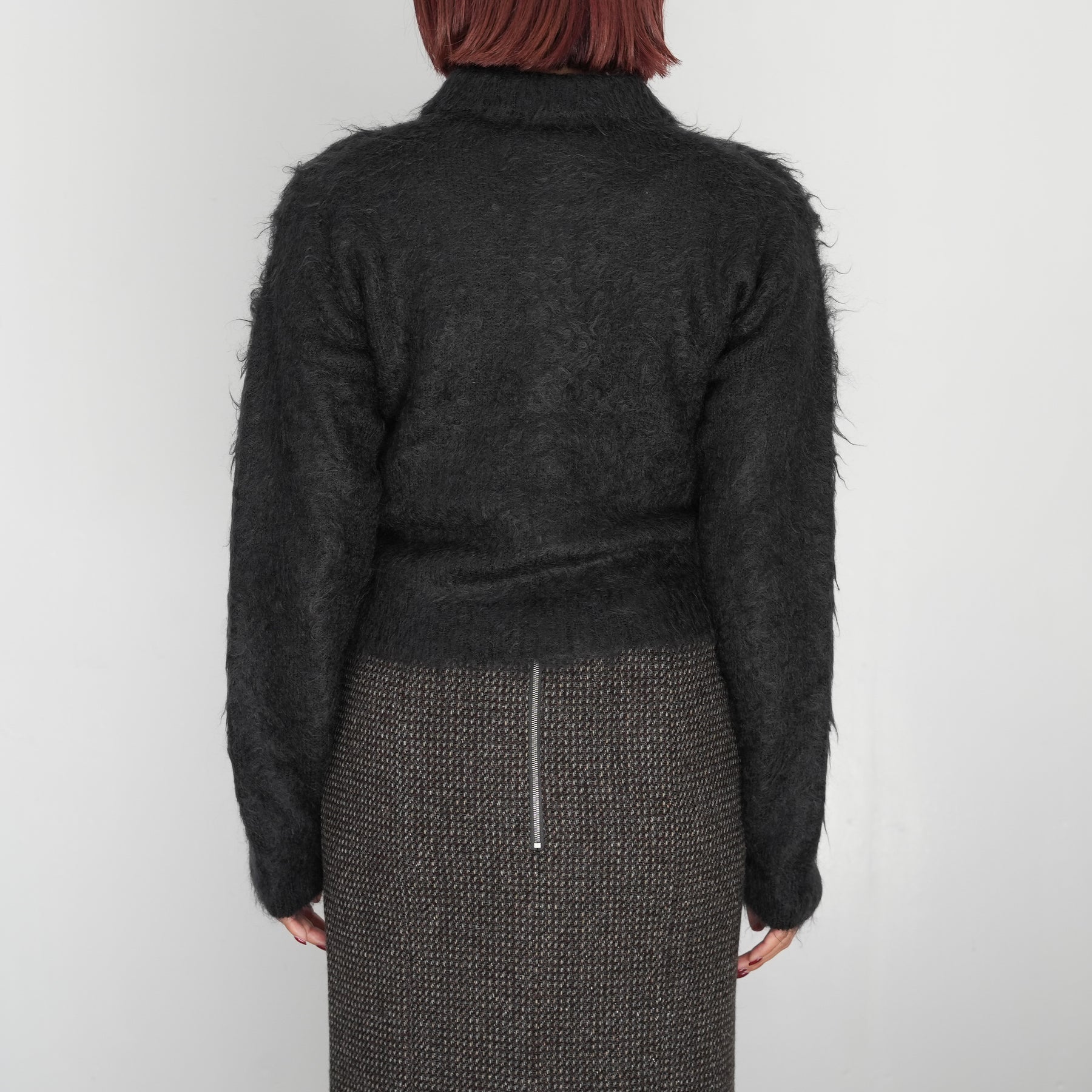 南アフリカ産の柔らかなスーパーキッドモヘヤを甘撚りに紡績し、芯糸には柔らかな天然ウールを使用して編み上げた、ふんわりとした温かみを感じる極上のモヘヤニットです。