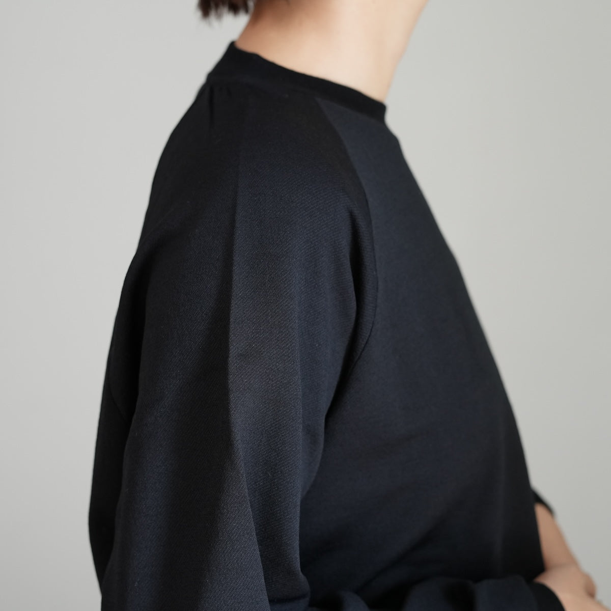 表面と裏面には毛羽をカットしたウール糸を使用し、中糸にはナイロン糸を取り入れて、伸縮性と軽さを実現したスウェット素材です。