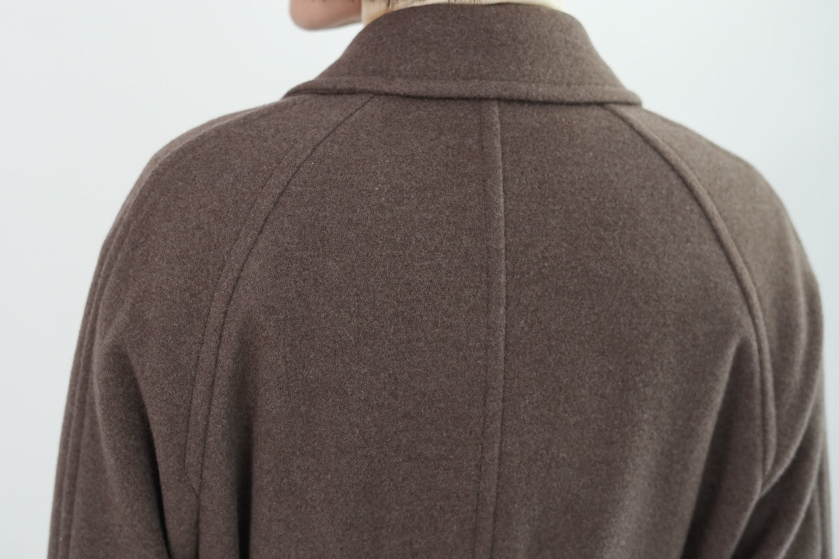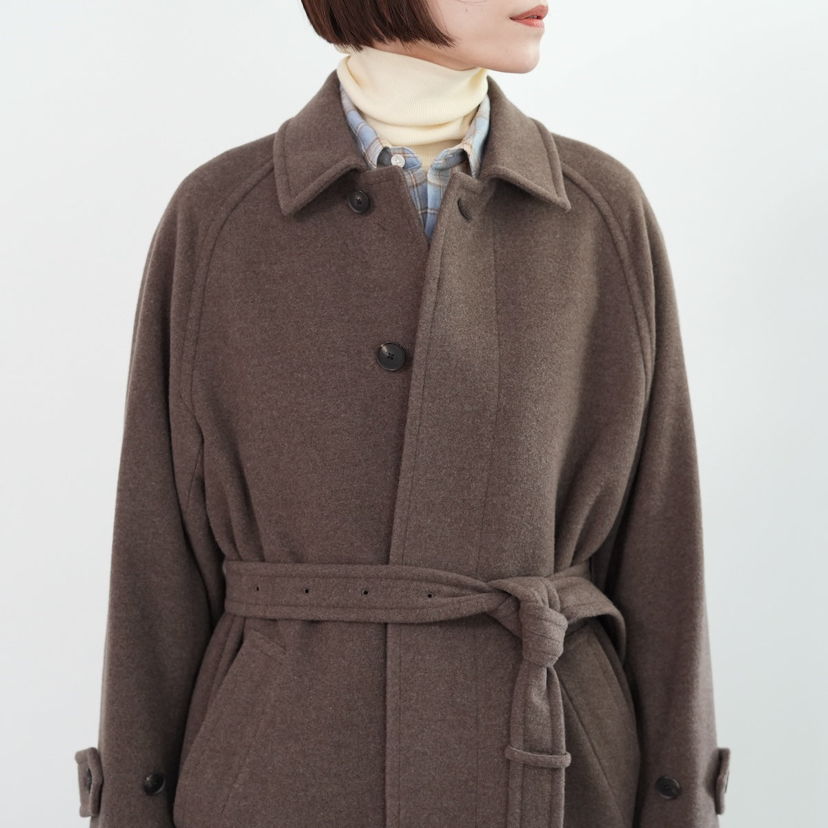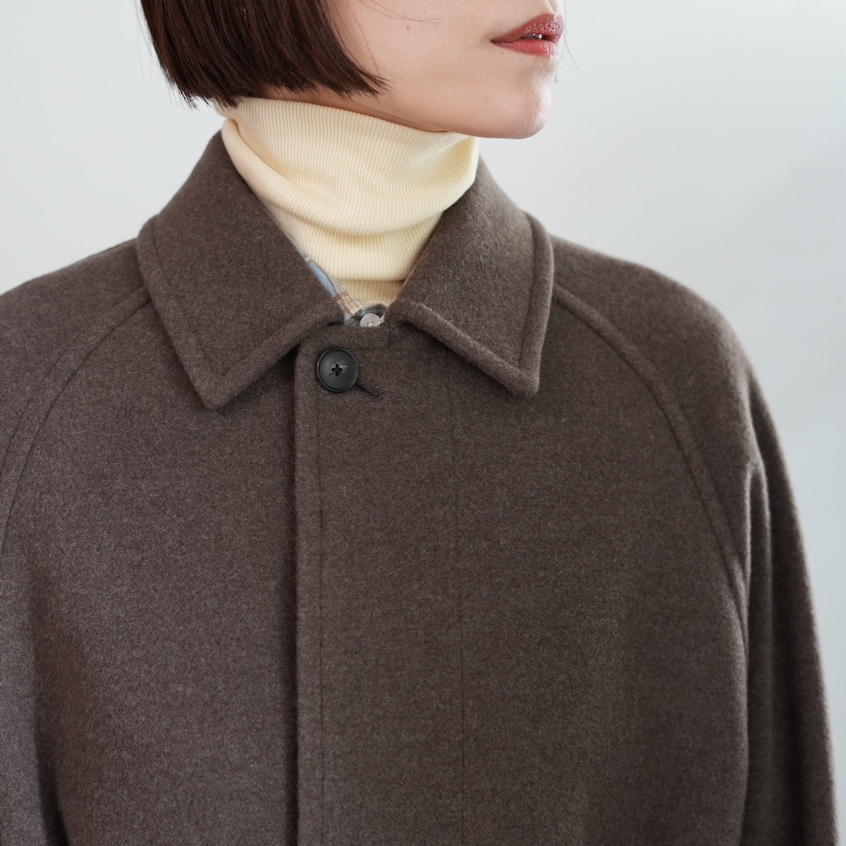 カシミヤと同等の繊度を持つ、オーストラリア産のウルトラファインメリノウール(15.5マイクロン、Super160's)を、オリジナル配合で紡毛糸にし、モッサー仕上げを施しています。