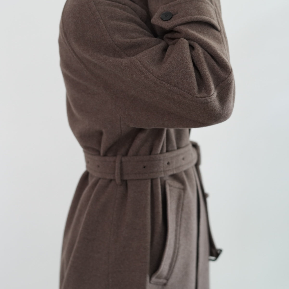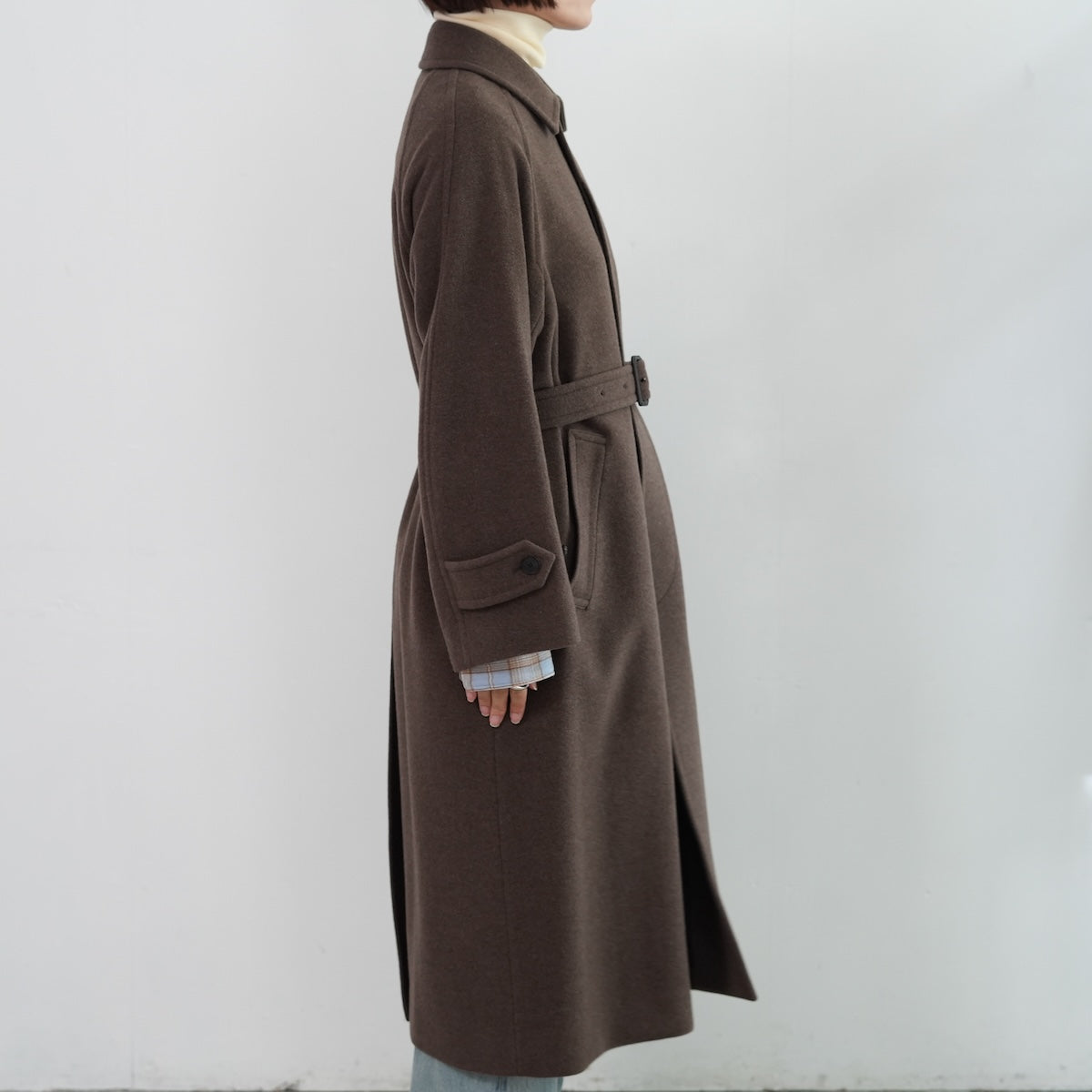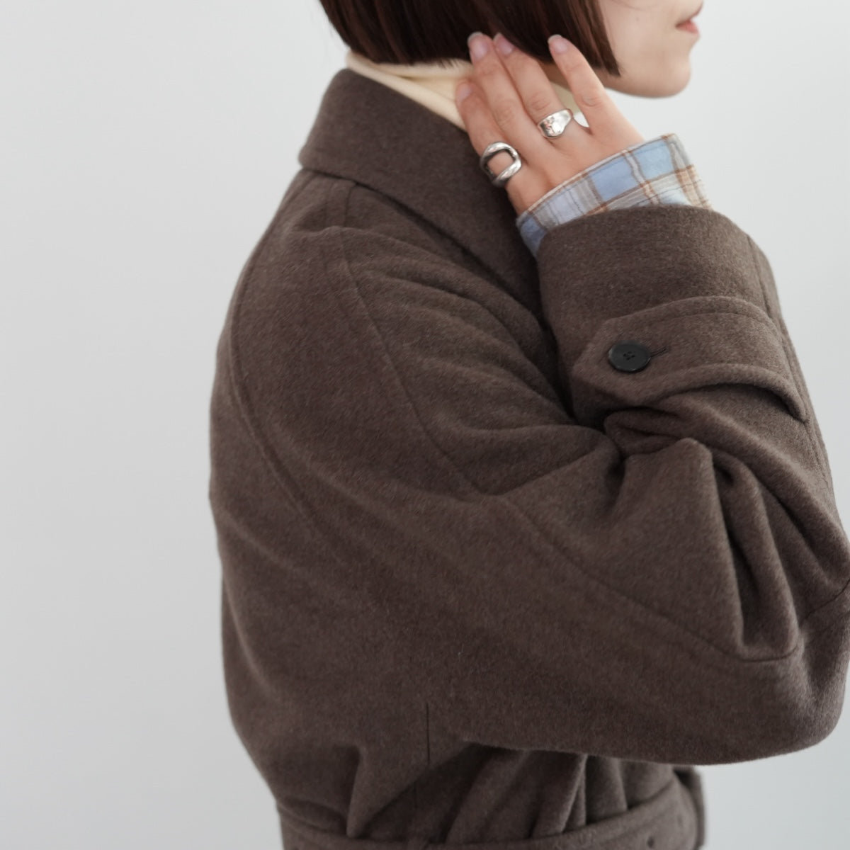 カシミヤと同等の繊度を持つ、オーストラリア産のウルトラファインメリノウール(15.5マイクロン、Super160's)を、オリジナル配合で紡毛糸にし、モッサー仕上げを施しています。