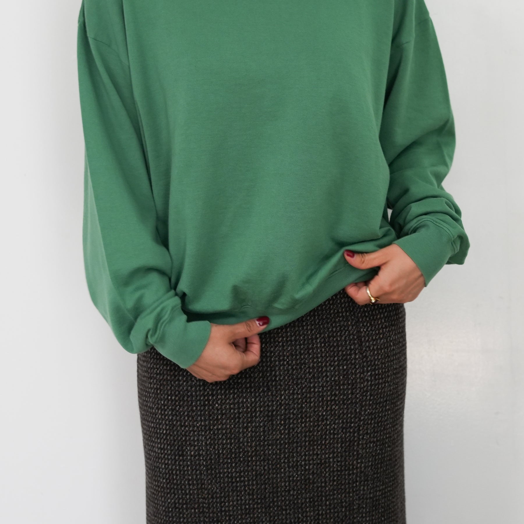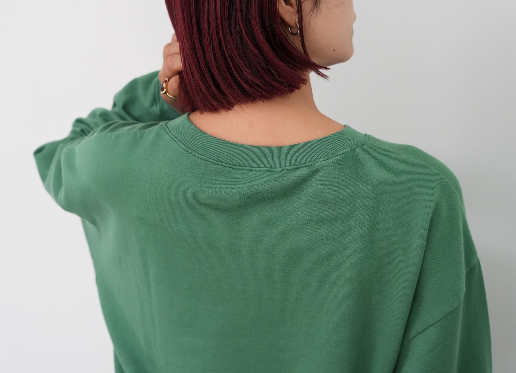 程よくゆったりとしたシルエットで、スウェットとロンTの中間くらいの肉厚さです。