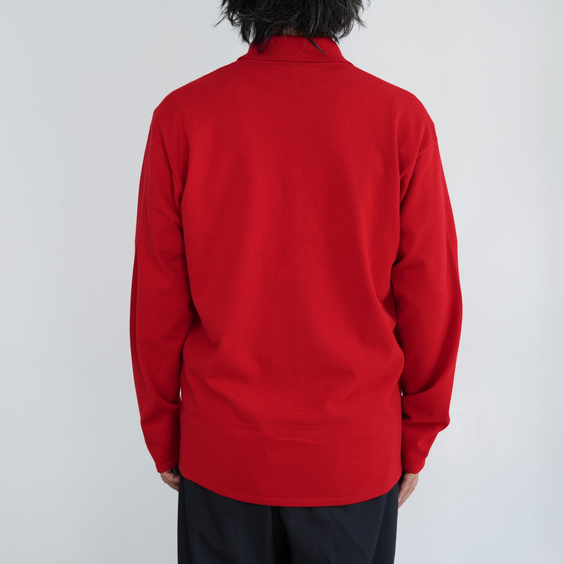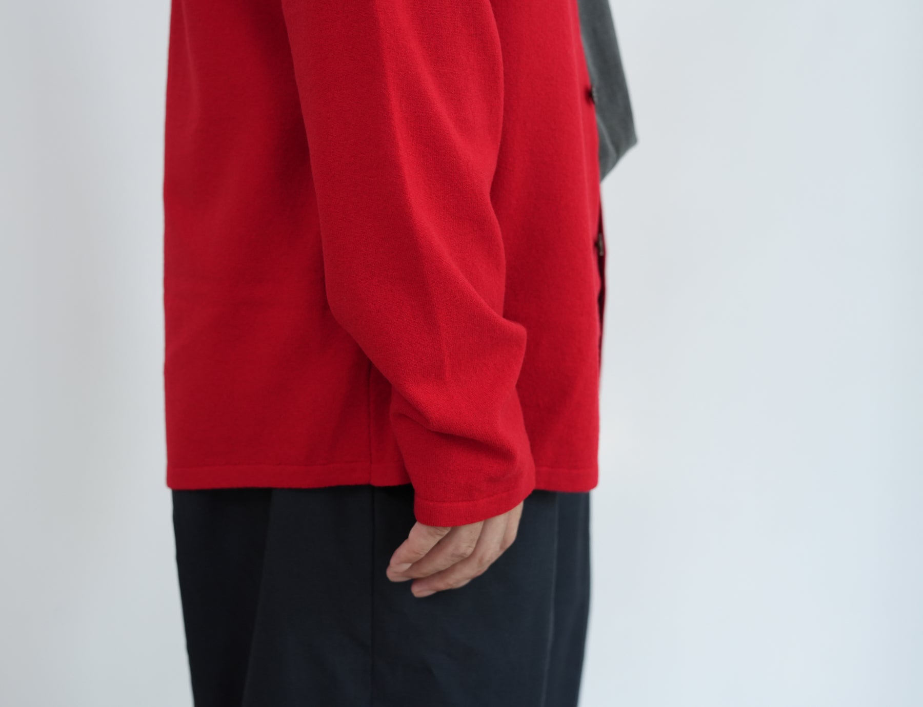 上質な極細ウール原料(15.5マイクロン)を使用し、カシミヤと同じ紡績機で時間をかけて丁寧に紡績した糸をさらに追撚して編み立てたニットです。