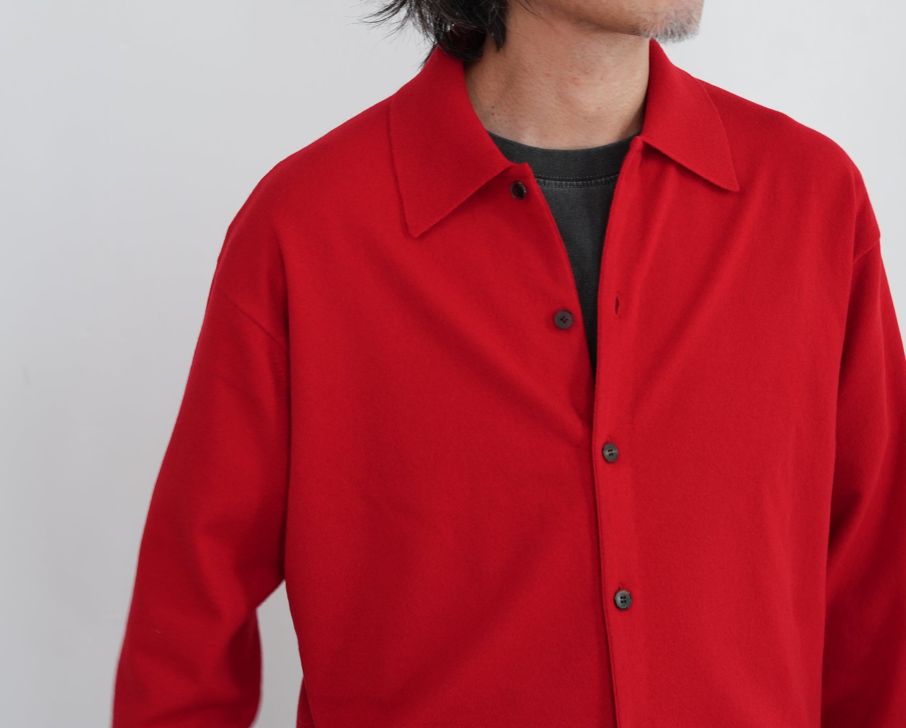 ハイゲージ機で高密度に編み上げることで、ハリ感と滑らかな風合いを併せ持つ、上品で洗練された素材に仕上げています。