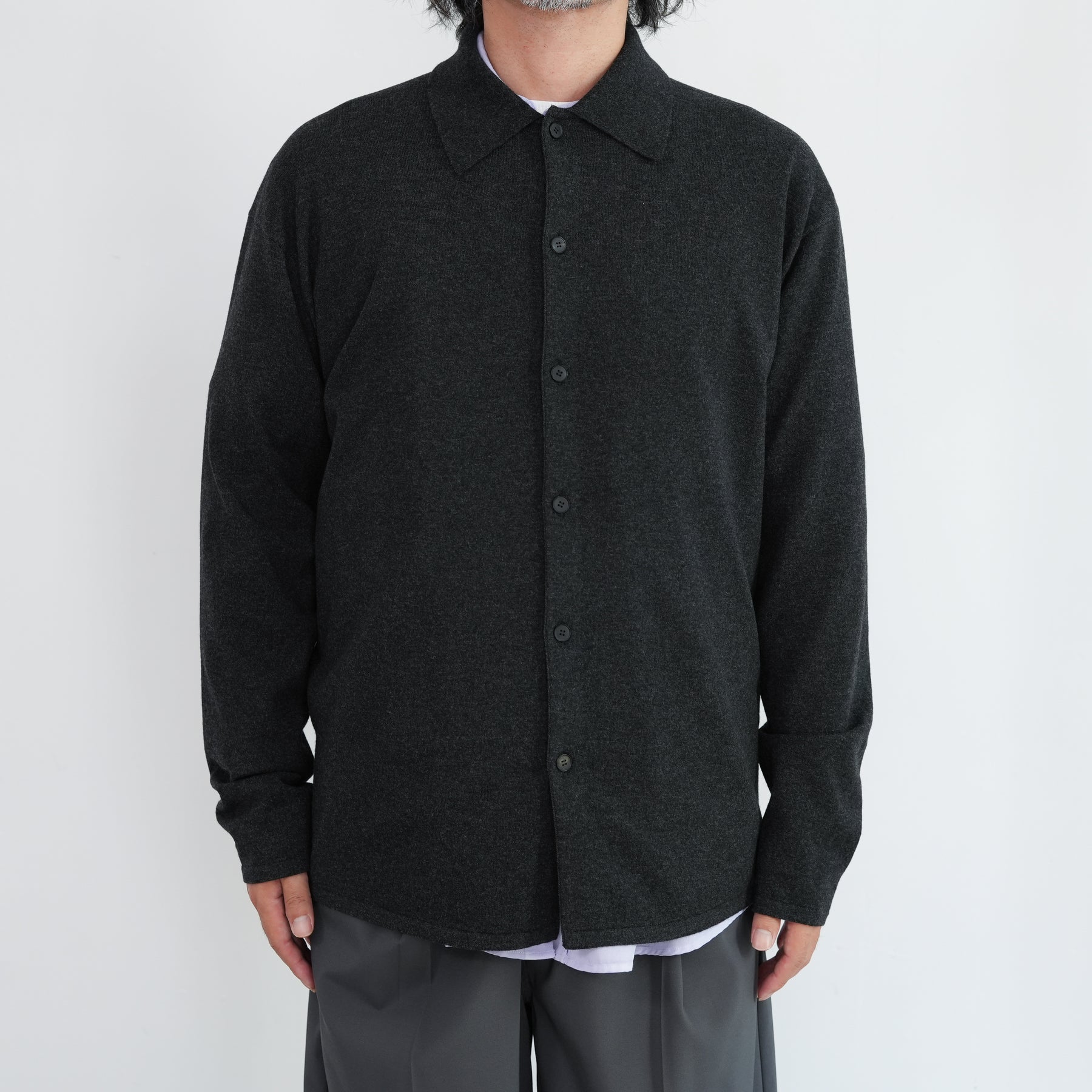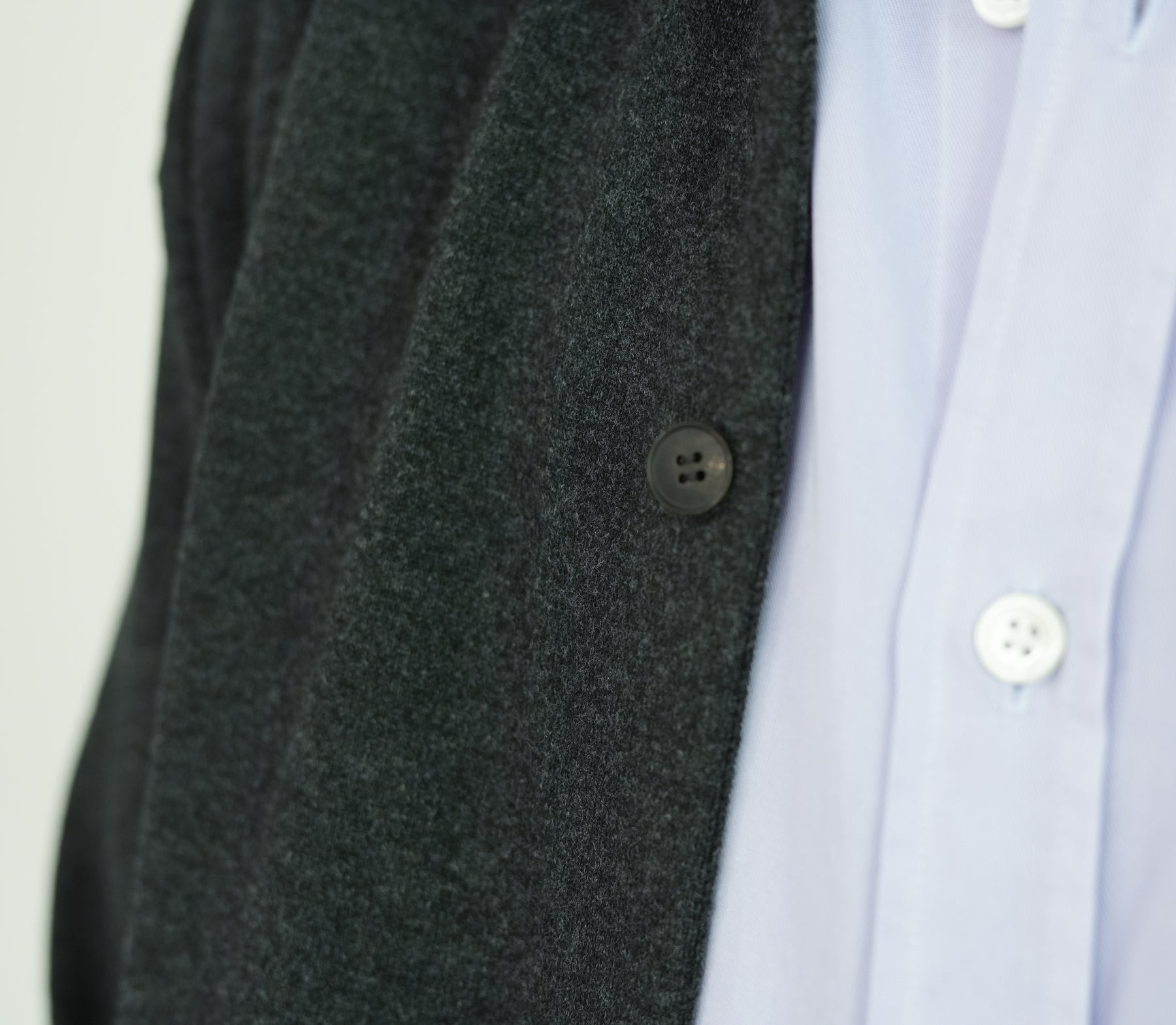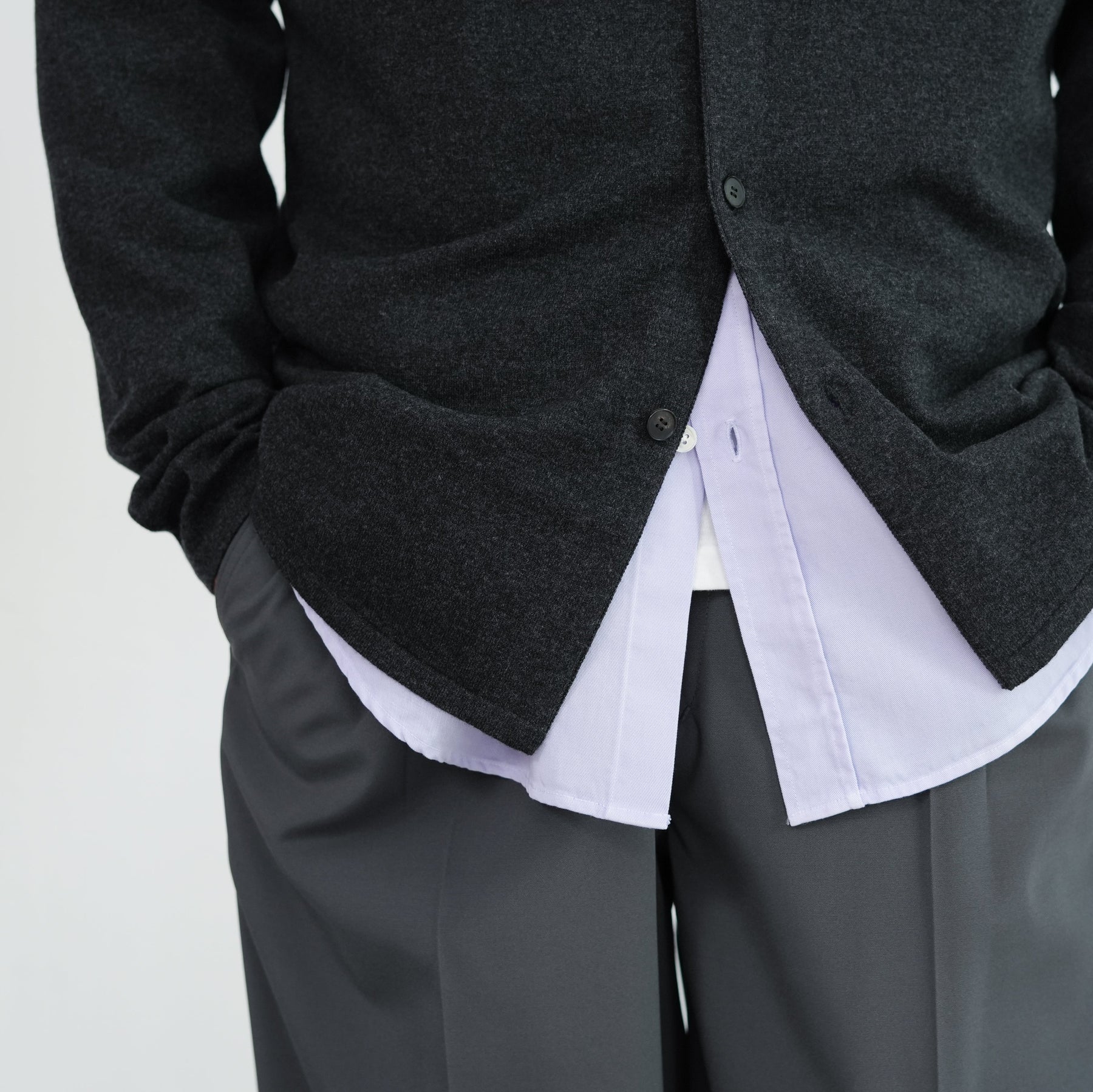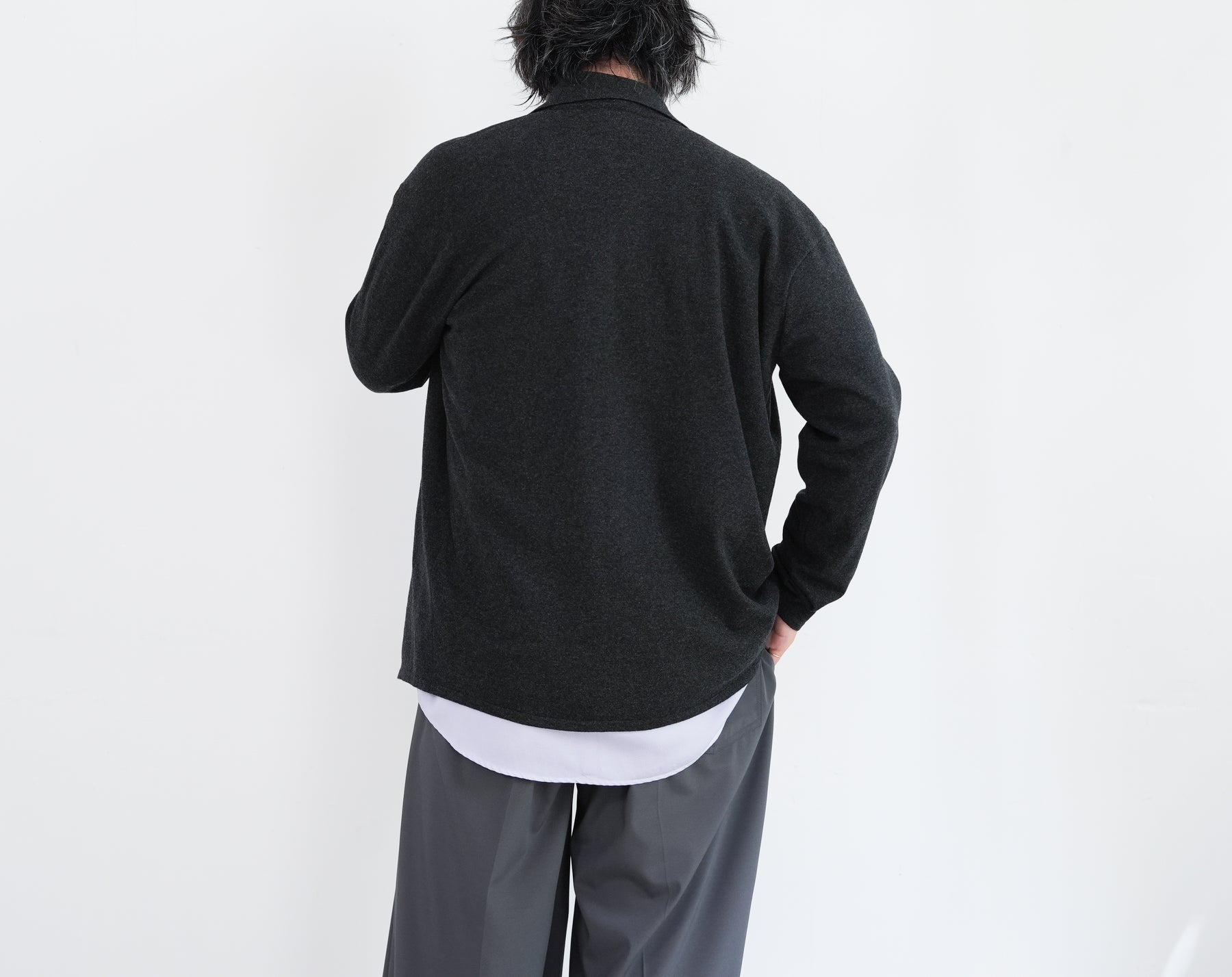 上質な極細ウール原料(15.5マイクロン)を使用し、カシミヤと同じ紡績機で時間をかけて丁寧に紡績した糸をさらに追撚して編み立てたニットです。