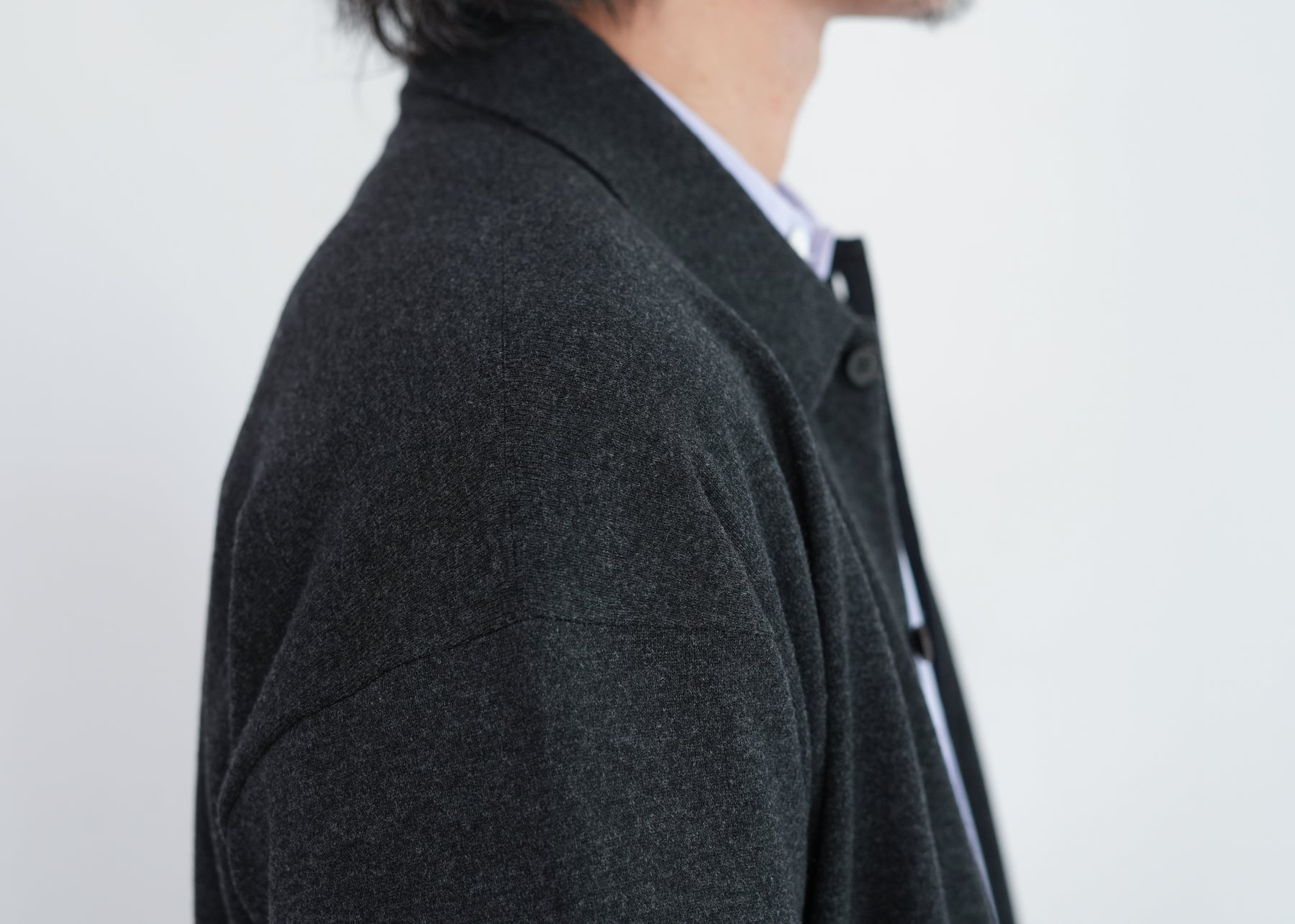 ハイゲージ機で高密度に編み上げることで、ハリ感と滑らかな風合いを併せ持つ、上品で洗練された素材に仕上げています。