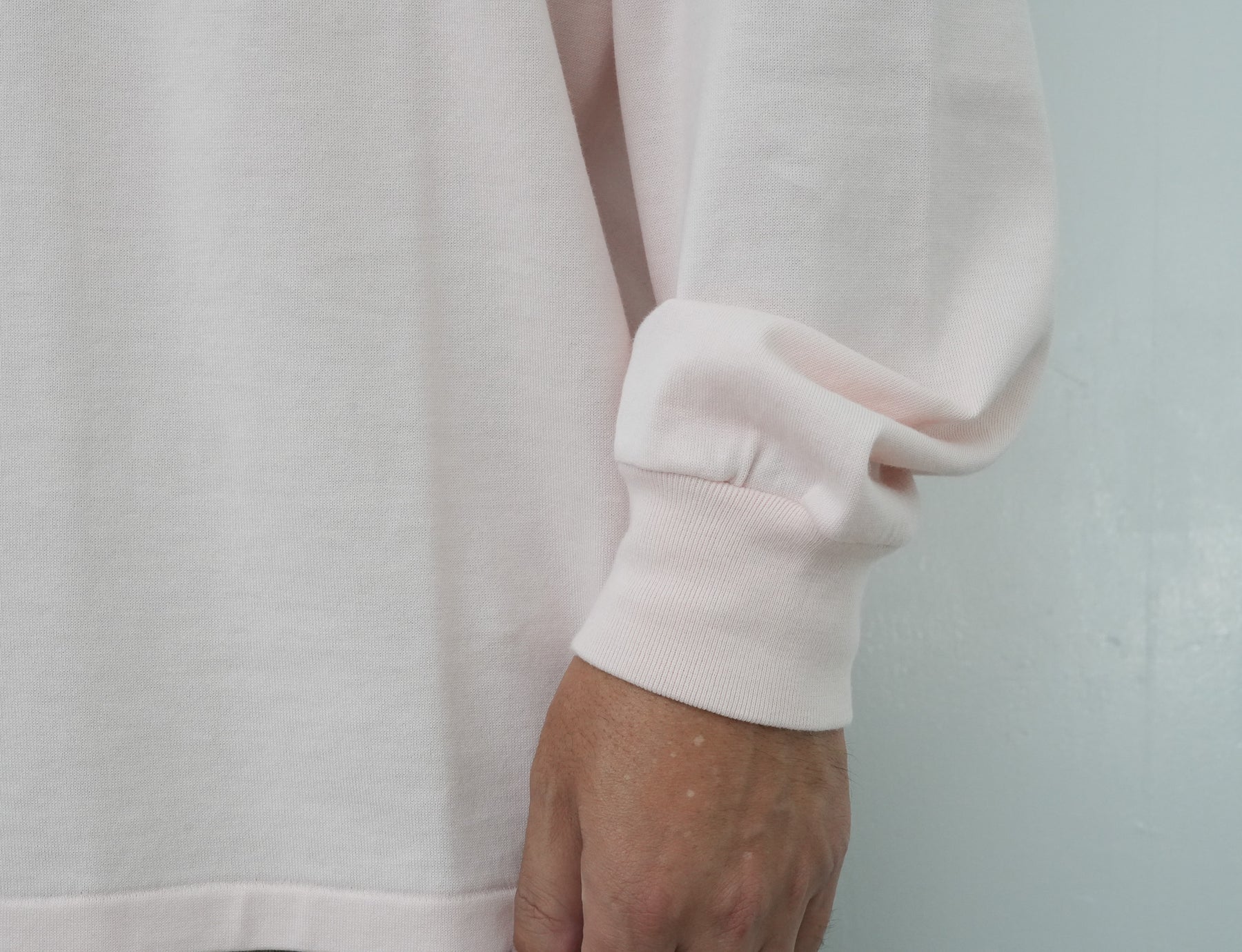 ピマコットンと柔らかな甘撚り糸を使用して編み立てたプレーティング素材です。