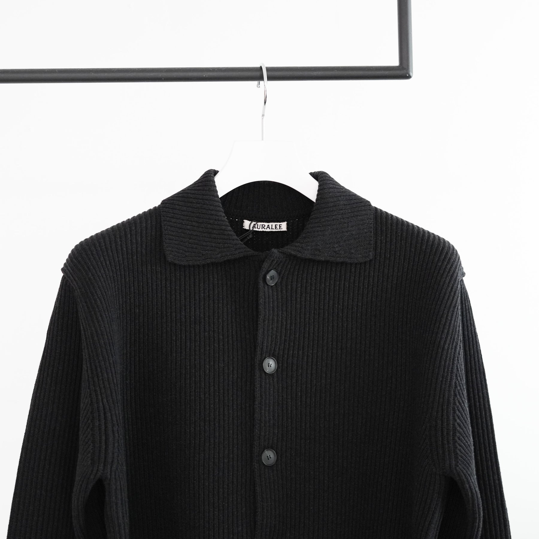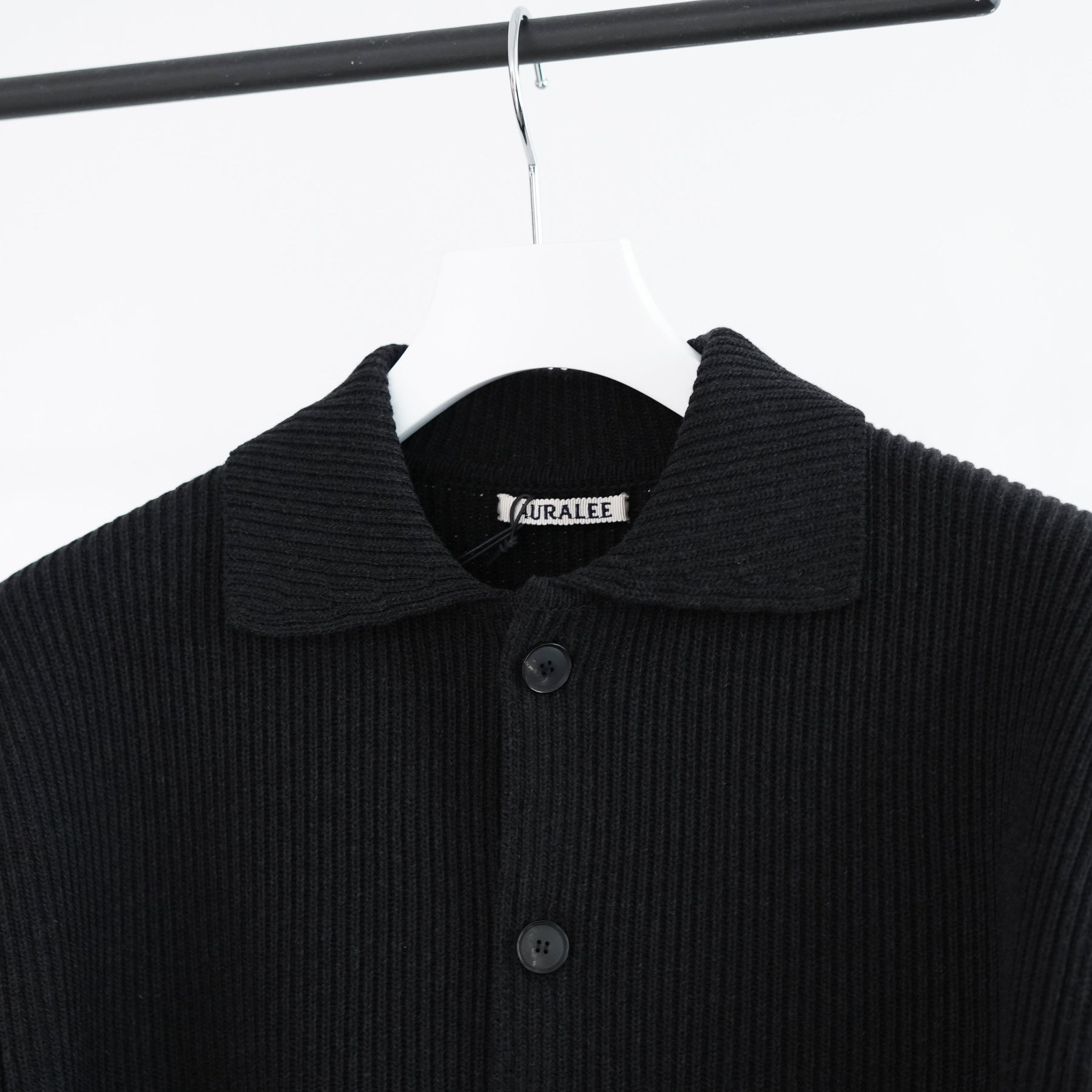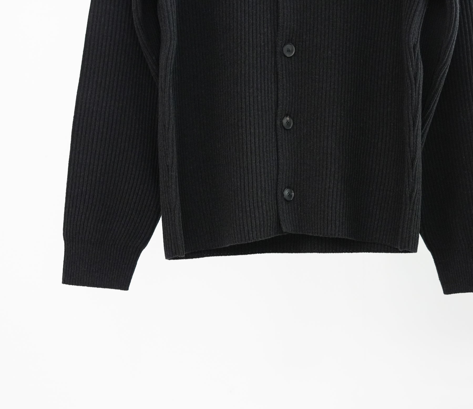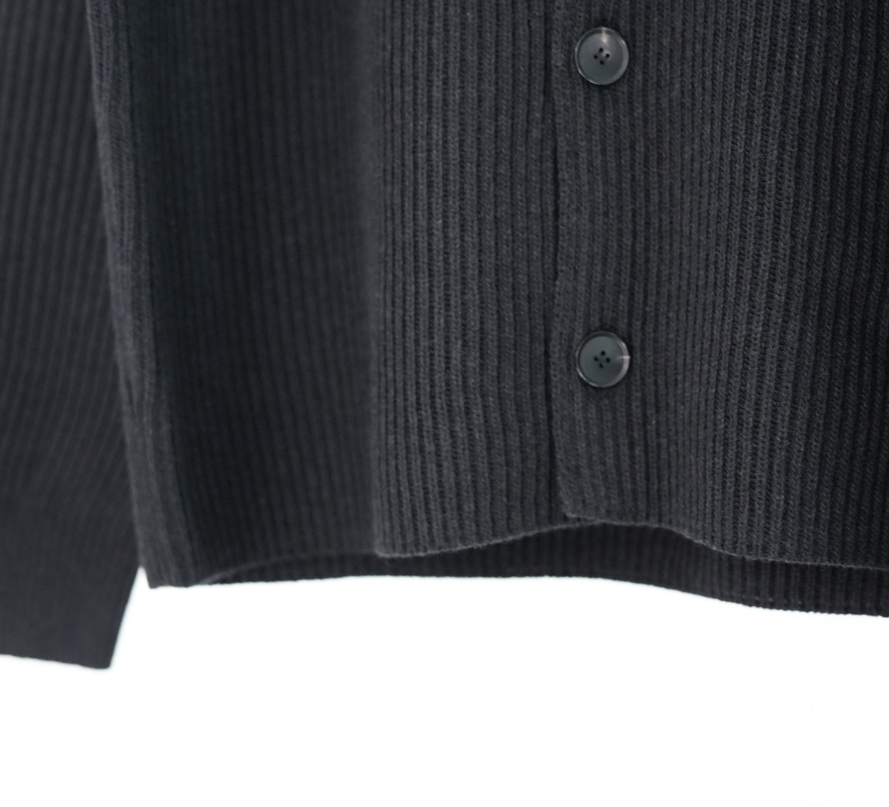 Super160'sの超極細番手ウールを紡毛に紡績し、限界まで度目を詰めて編み立てた両畦編みニットです。