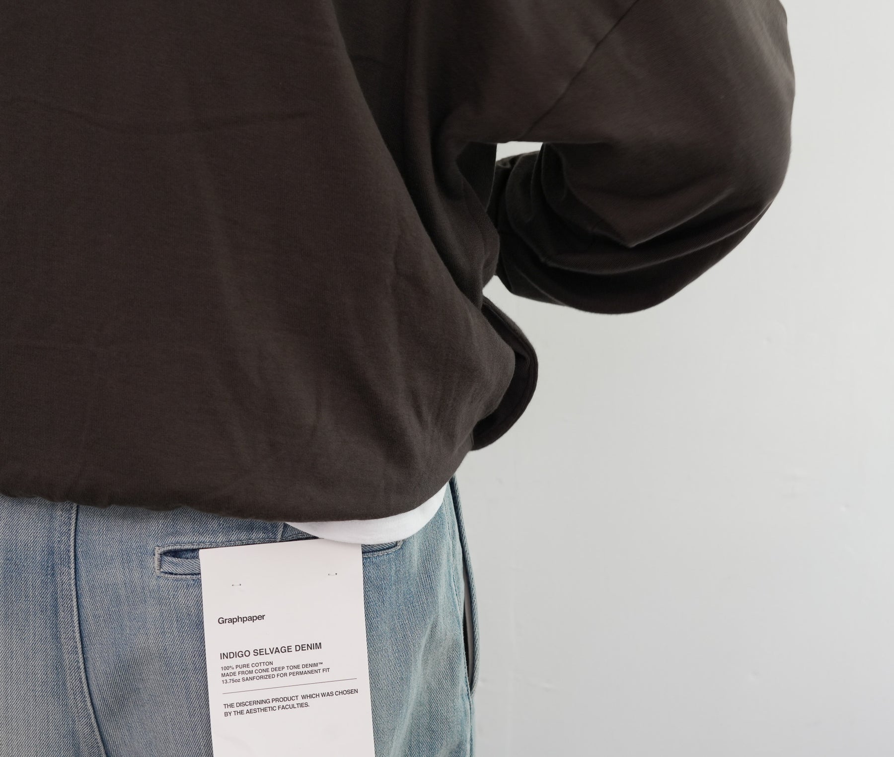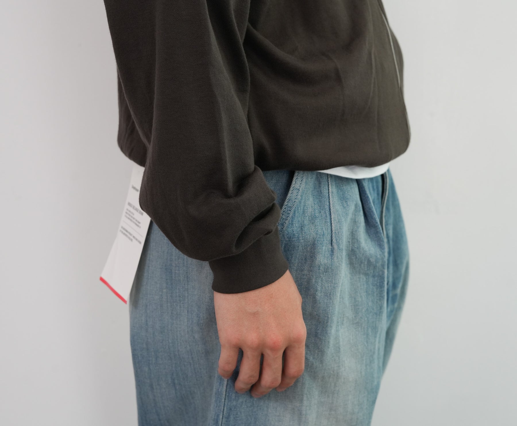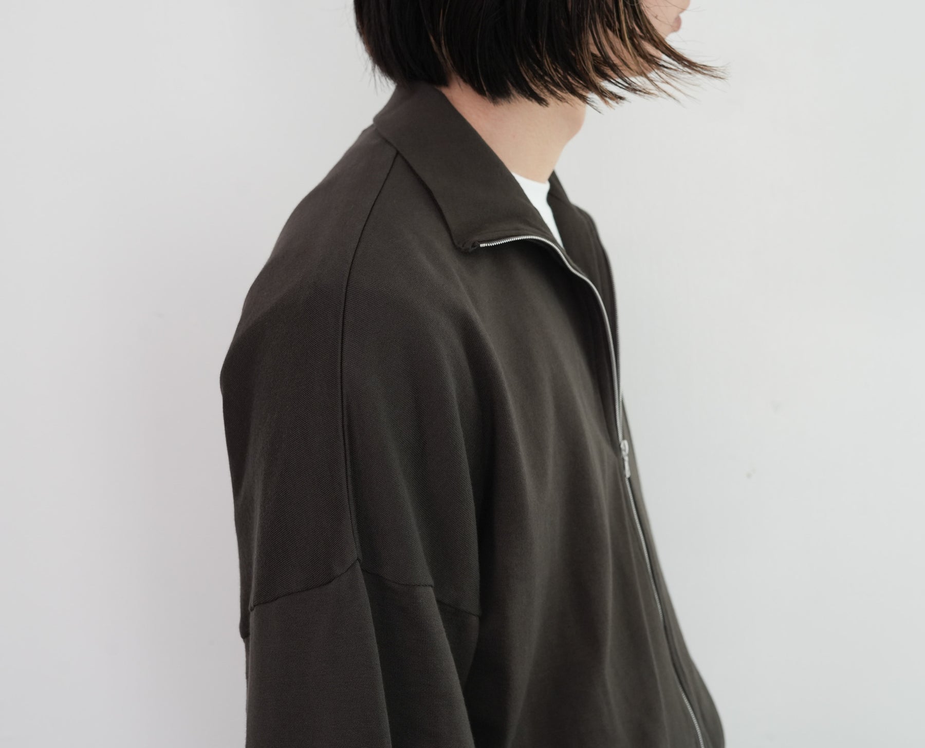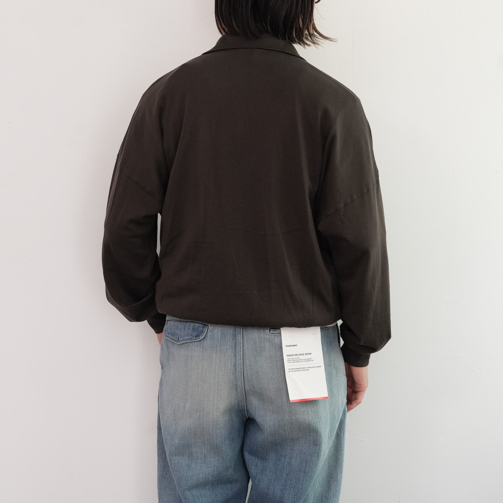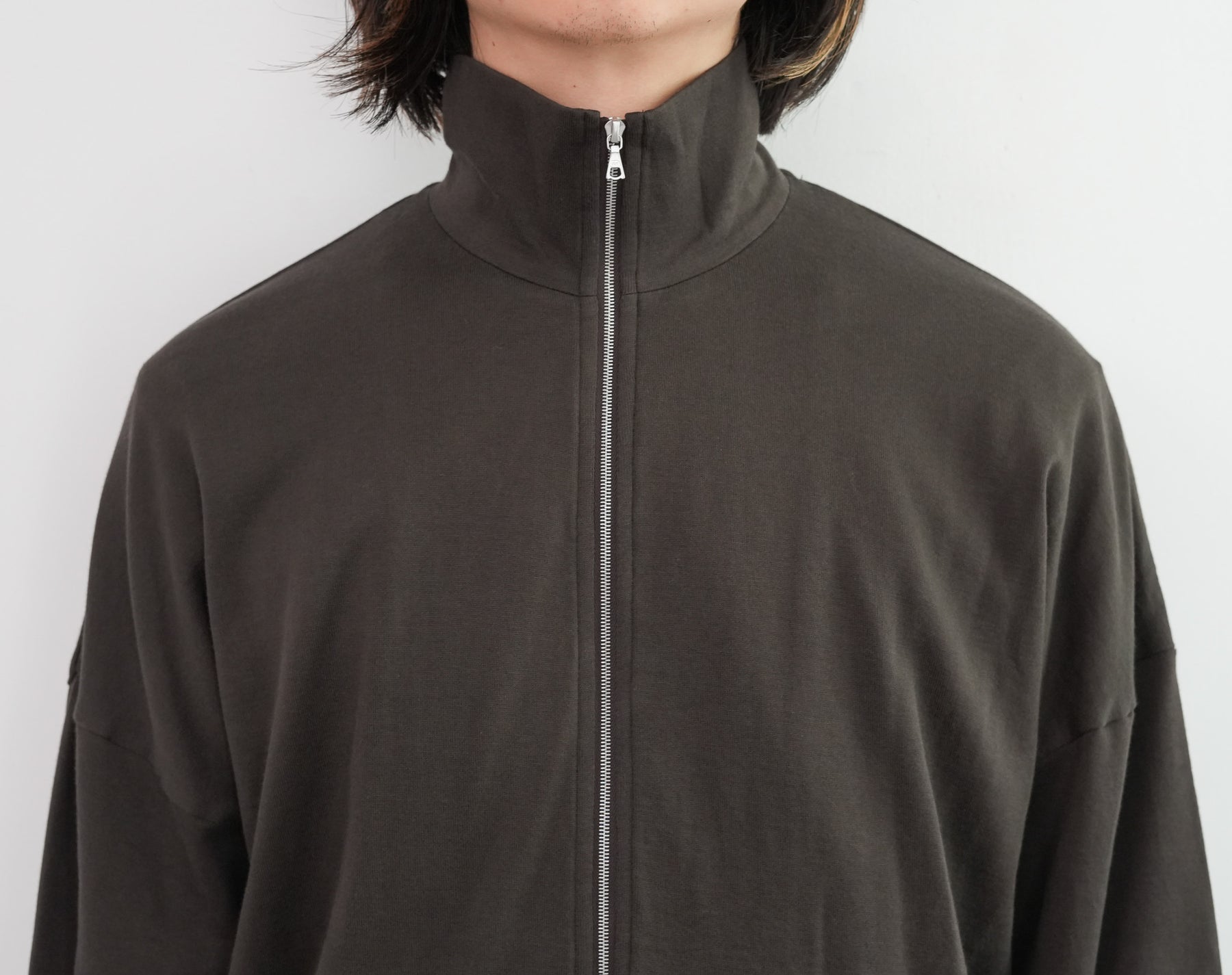 表糸に超長綿であるピマコットンを使用し、最大限の膨らみを持たせるために綿の状態で加工してから紡績し、ハイゲージ機械で編み上げたスウェット素材を使用しています。加工過程で毛羽を溶かす処理を施し、綺麗な落ち感と滑らかで柔らかな風合いに仕上がっています。軽やかでありながらも豊かな膨らみと、上質な触感が特徴です。