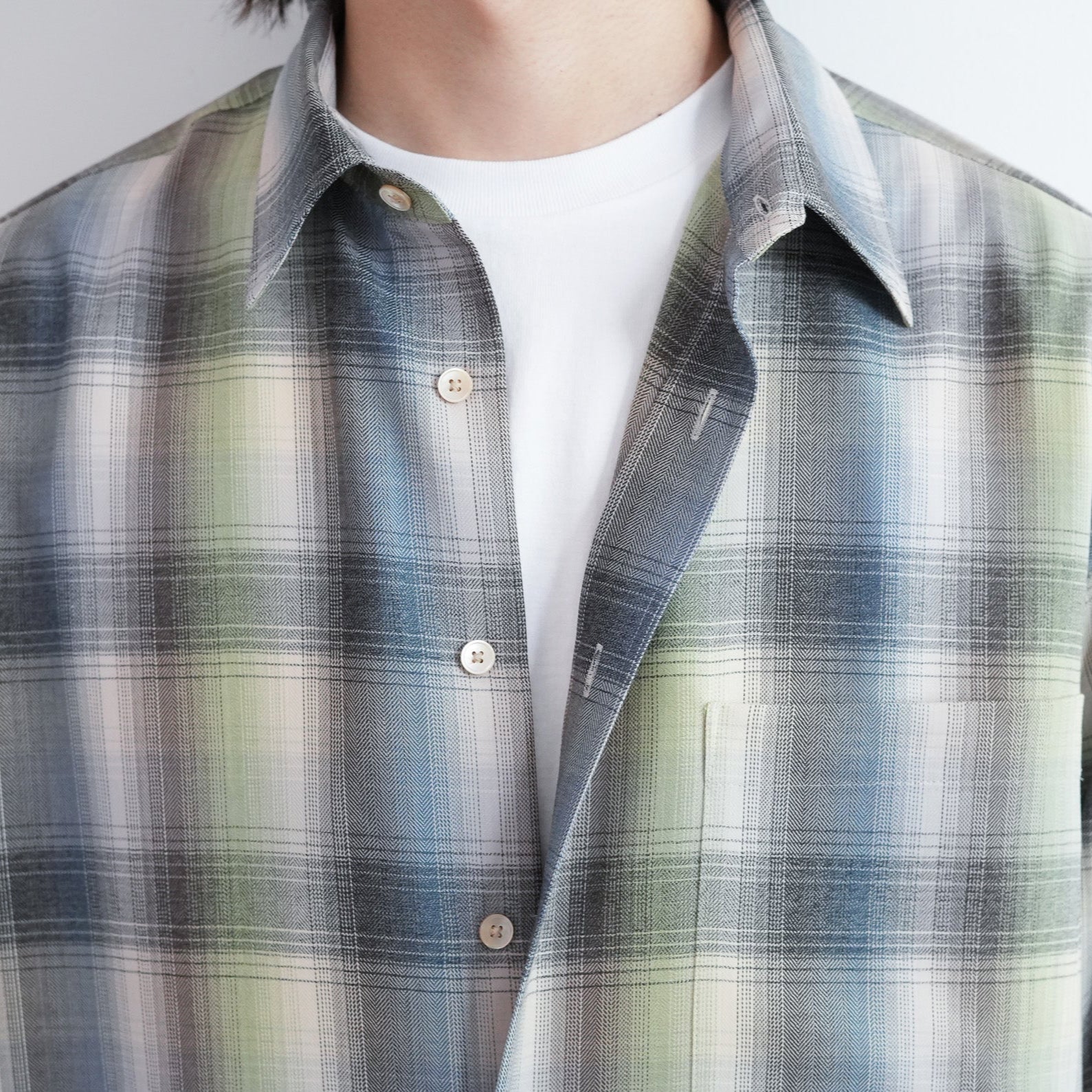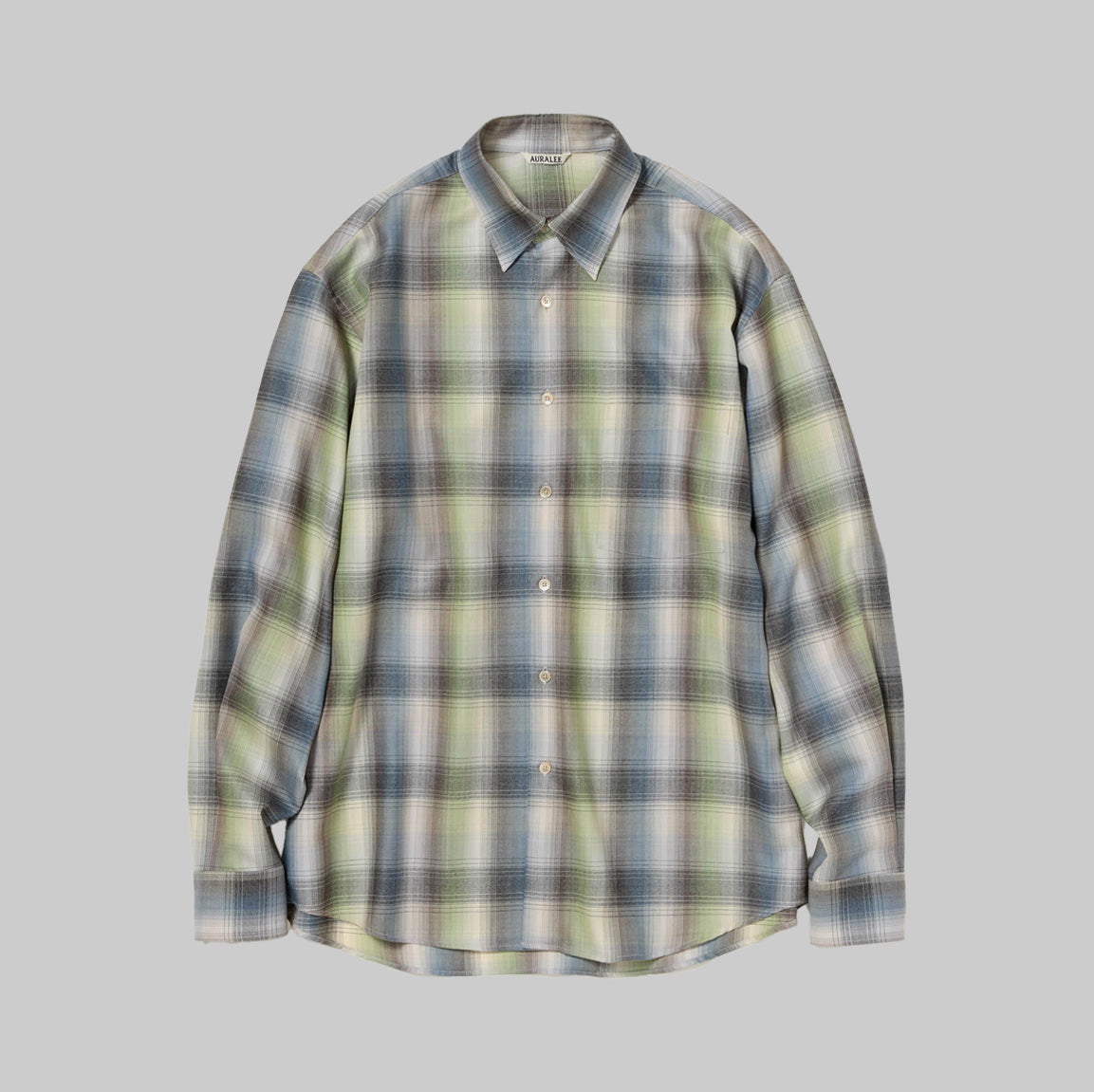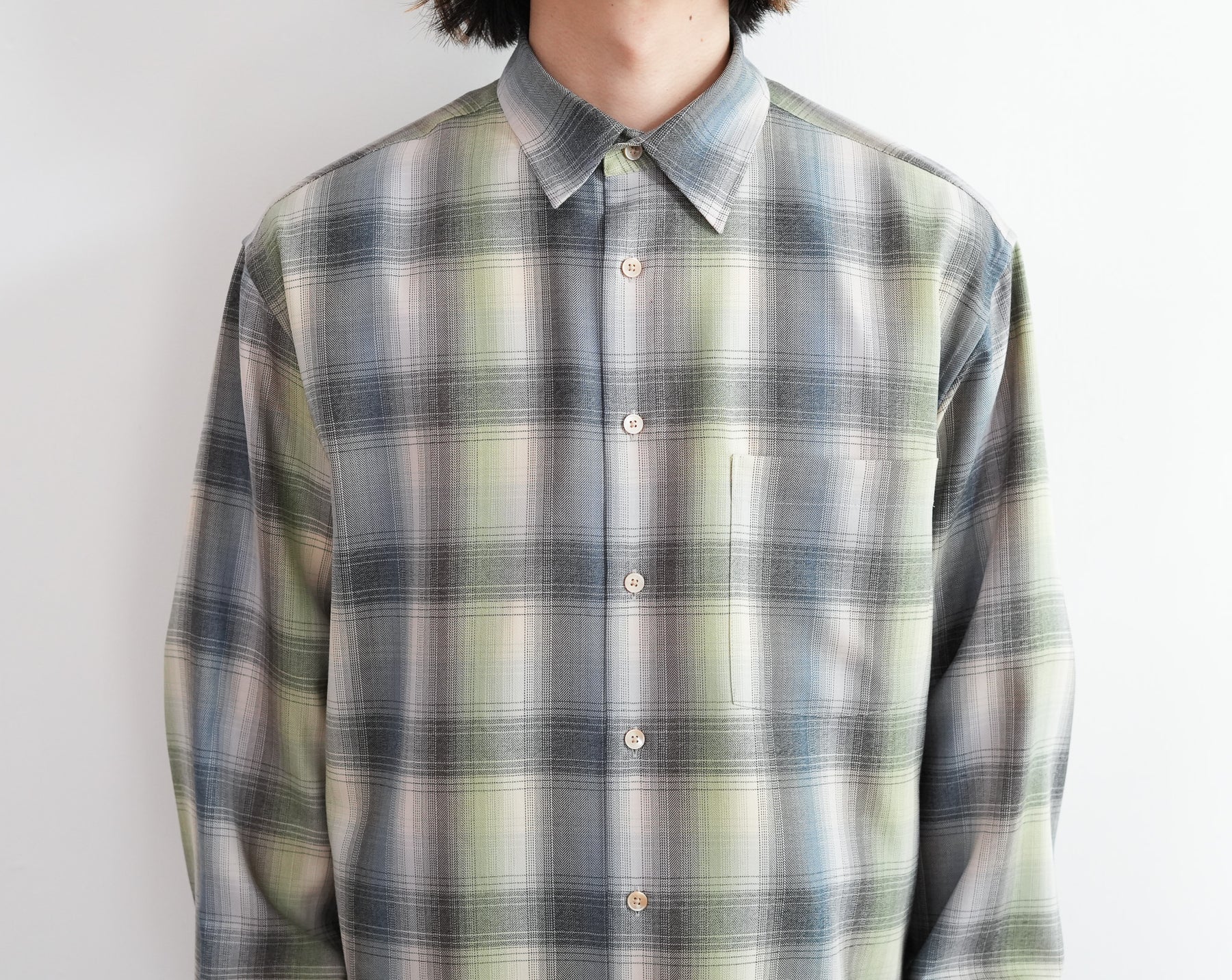 Super120'sの超極細番手ウール梳毛糸を、多彩な色に染め分けて撚り杢糸とし、高密度に織り上げたチェック柄のウール素材です。