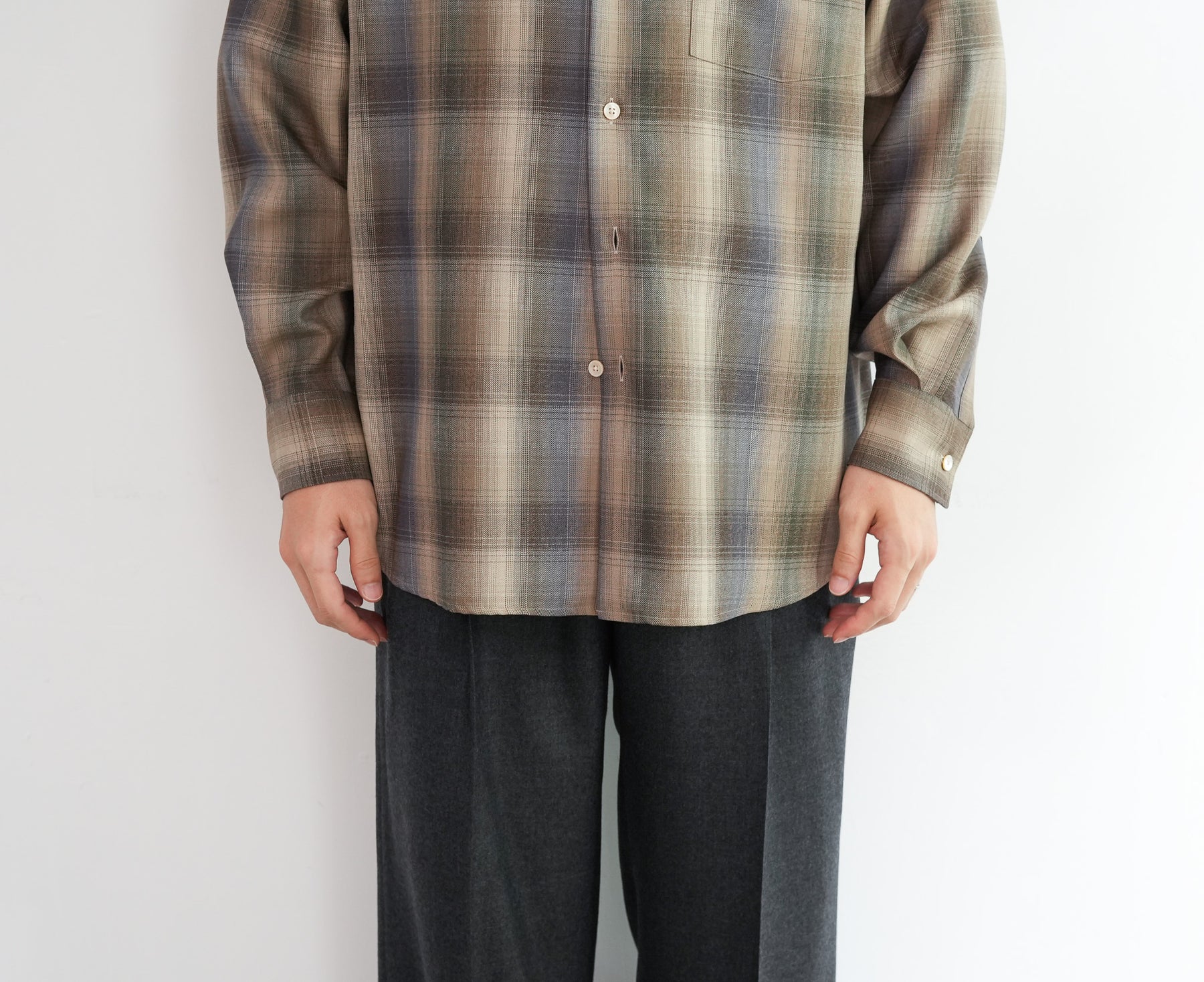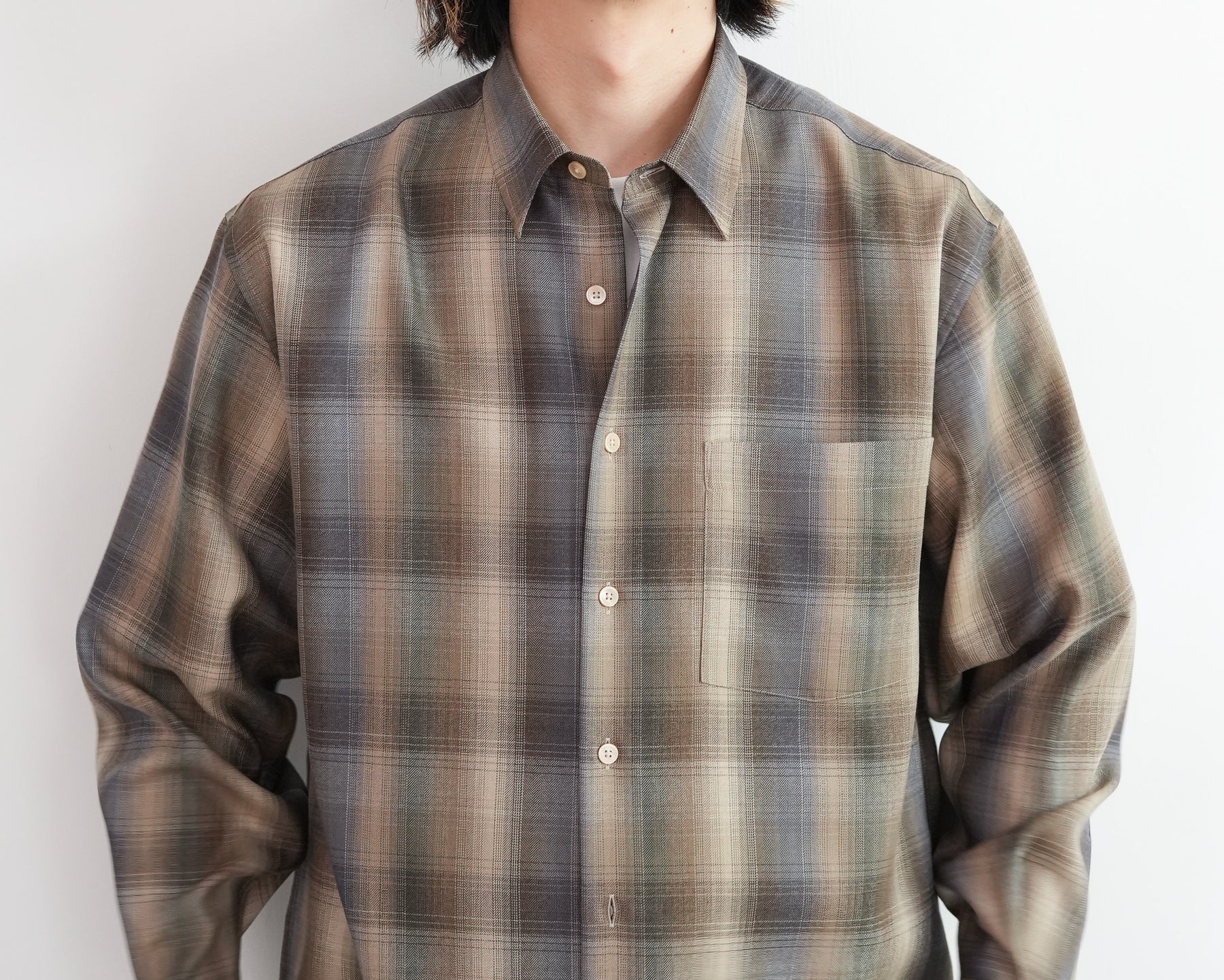 Super120'sの超極細番手ウール梳毛糸を、多彩な色に染め分けて撚り杢糸とし、高密度に織り上げたチェック柄のウール素材です。