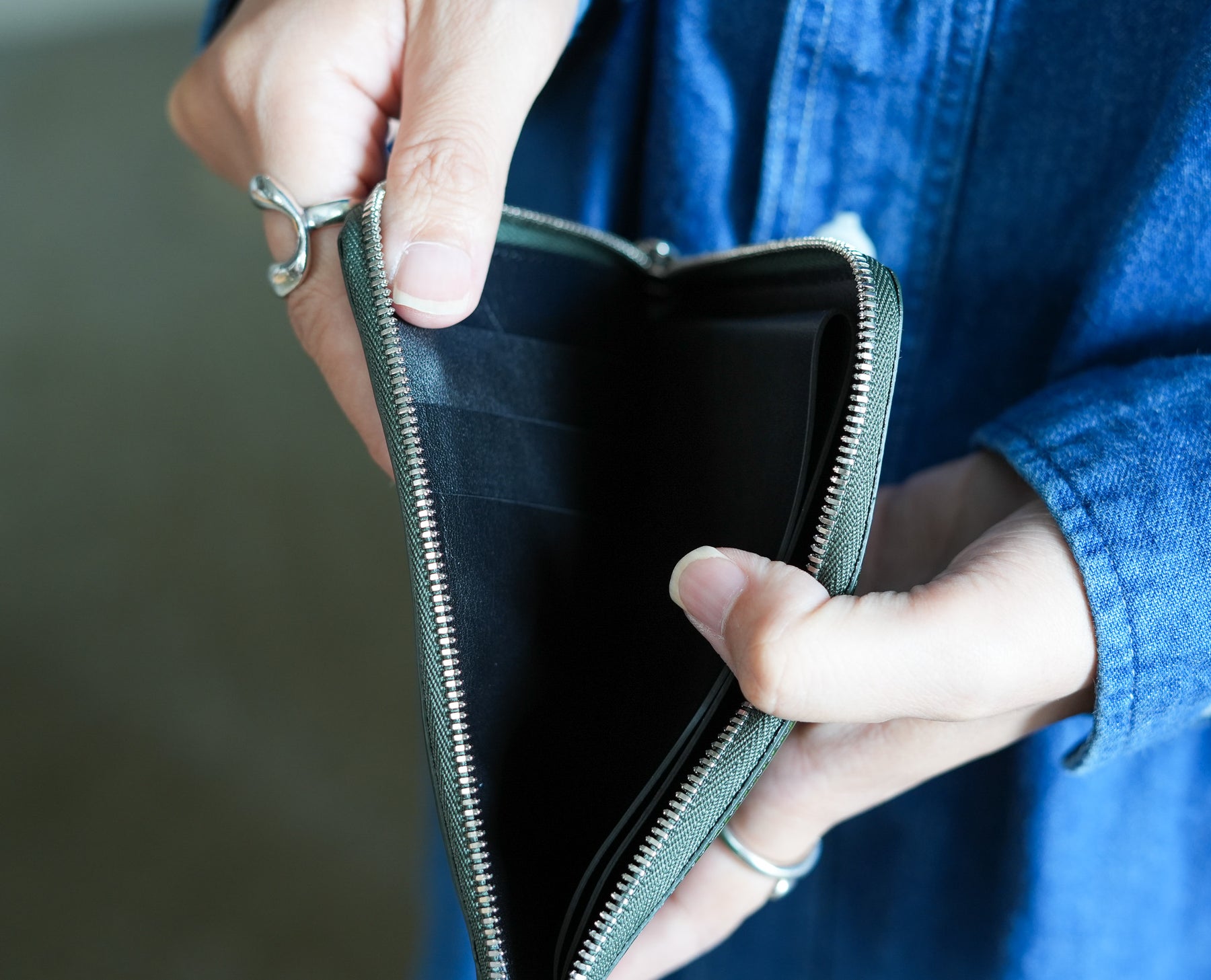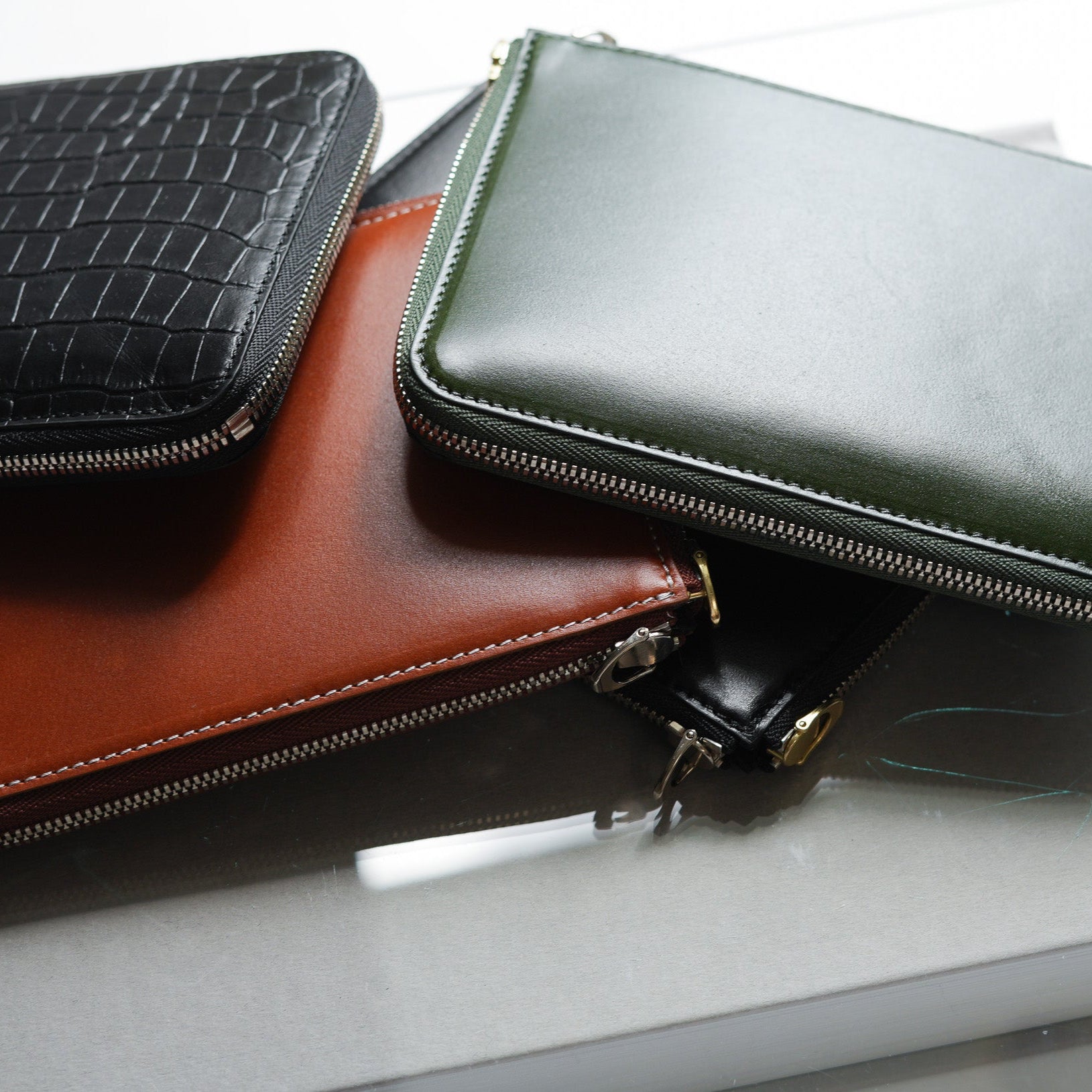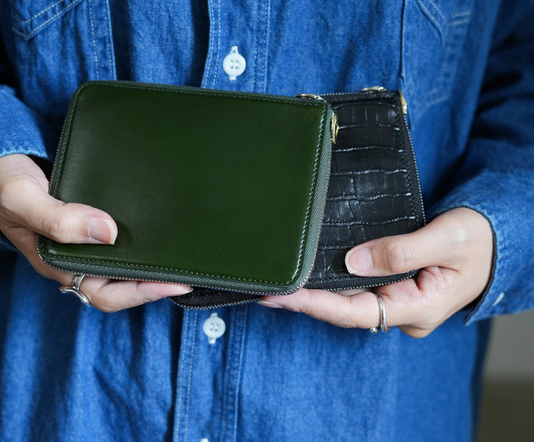 1本のファスナーから2つのポケットが現れる独自の構造( *PATENTED)をもったラウンドジップシリーズです。