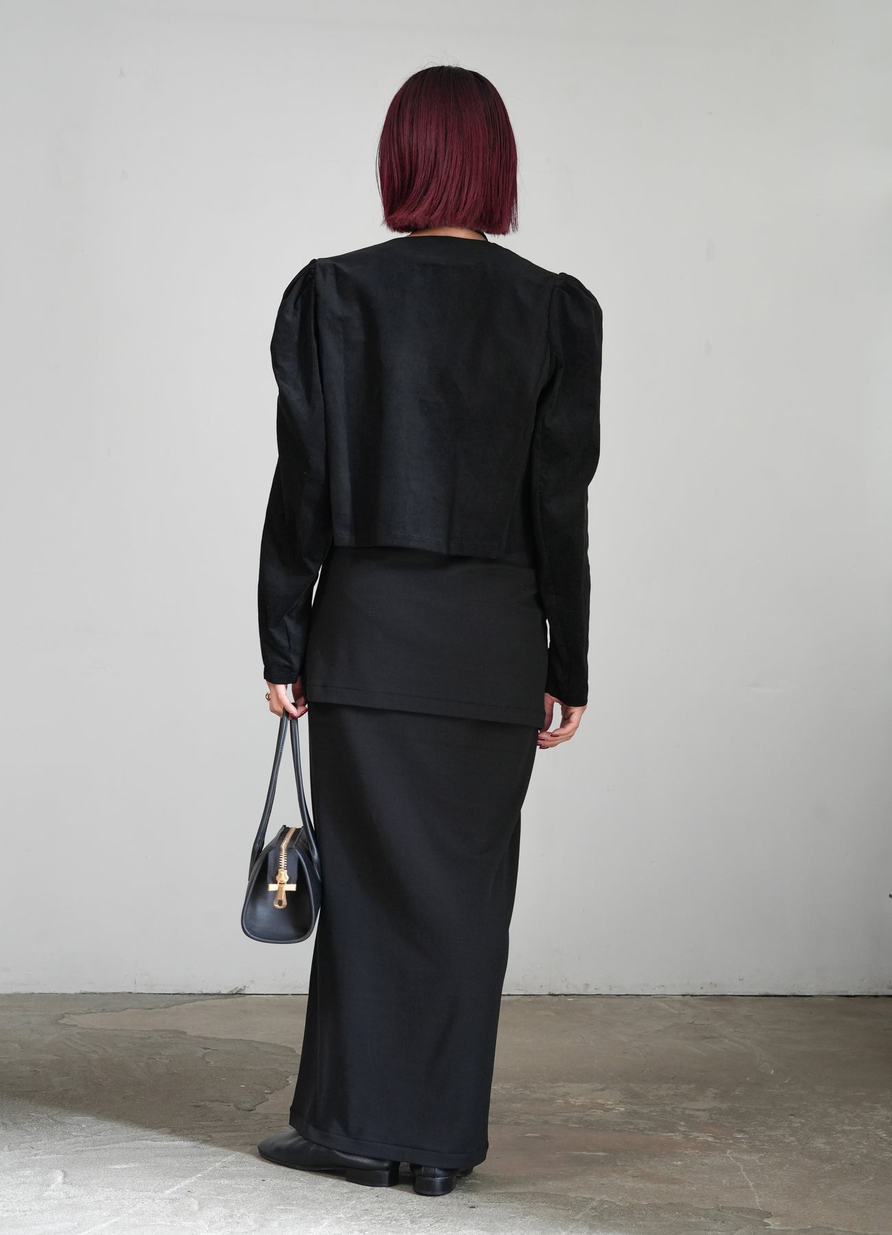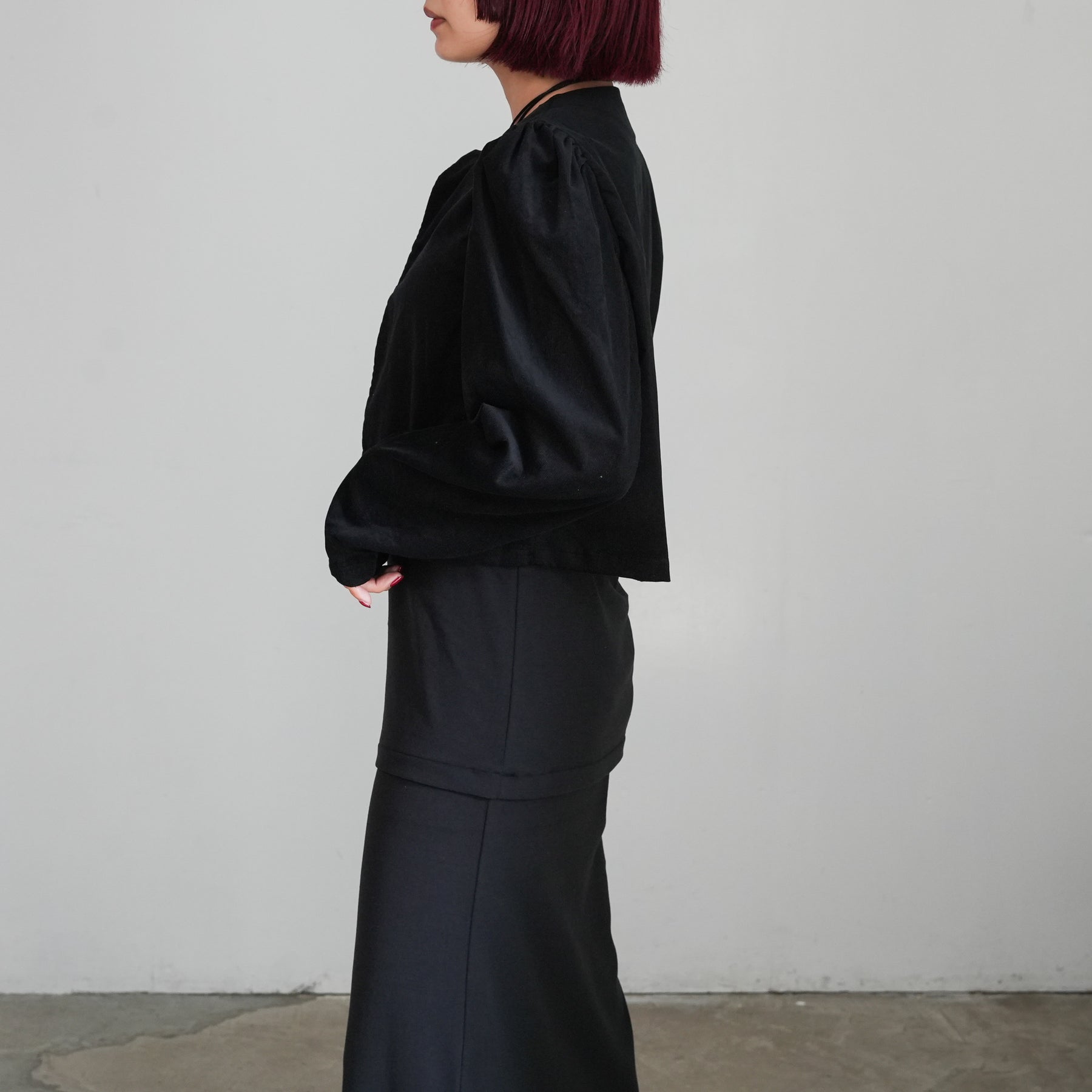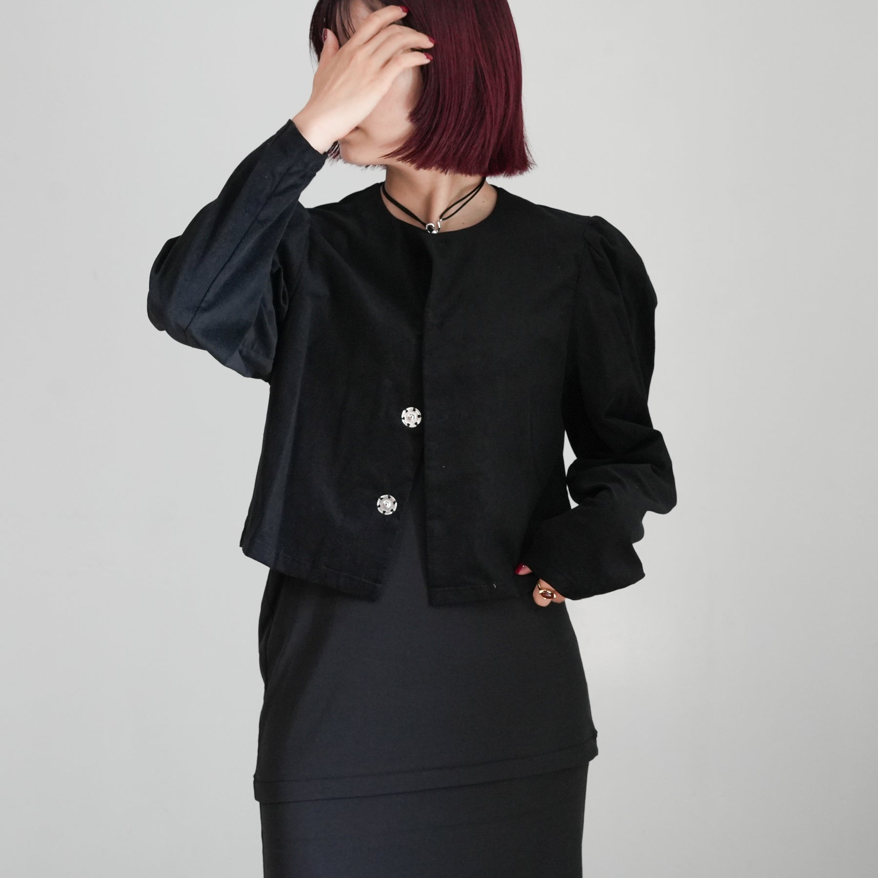 前肩に袖をつけているので、着用した時にも綺麗でモダンな印象に。