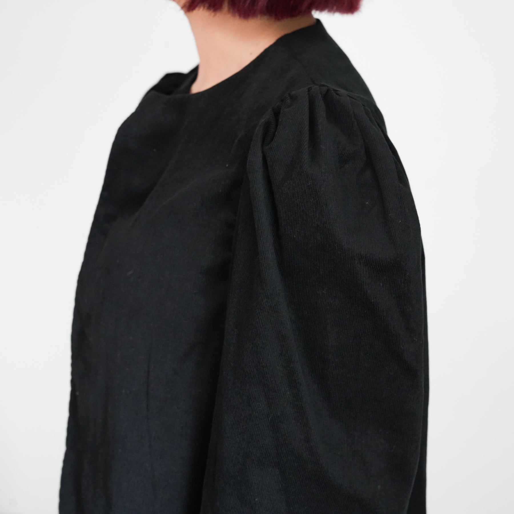 ビクトリアン風のショルダーに大きくボリュームをつけ、