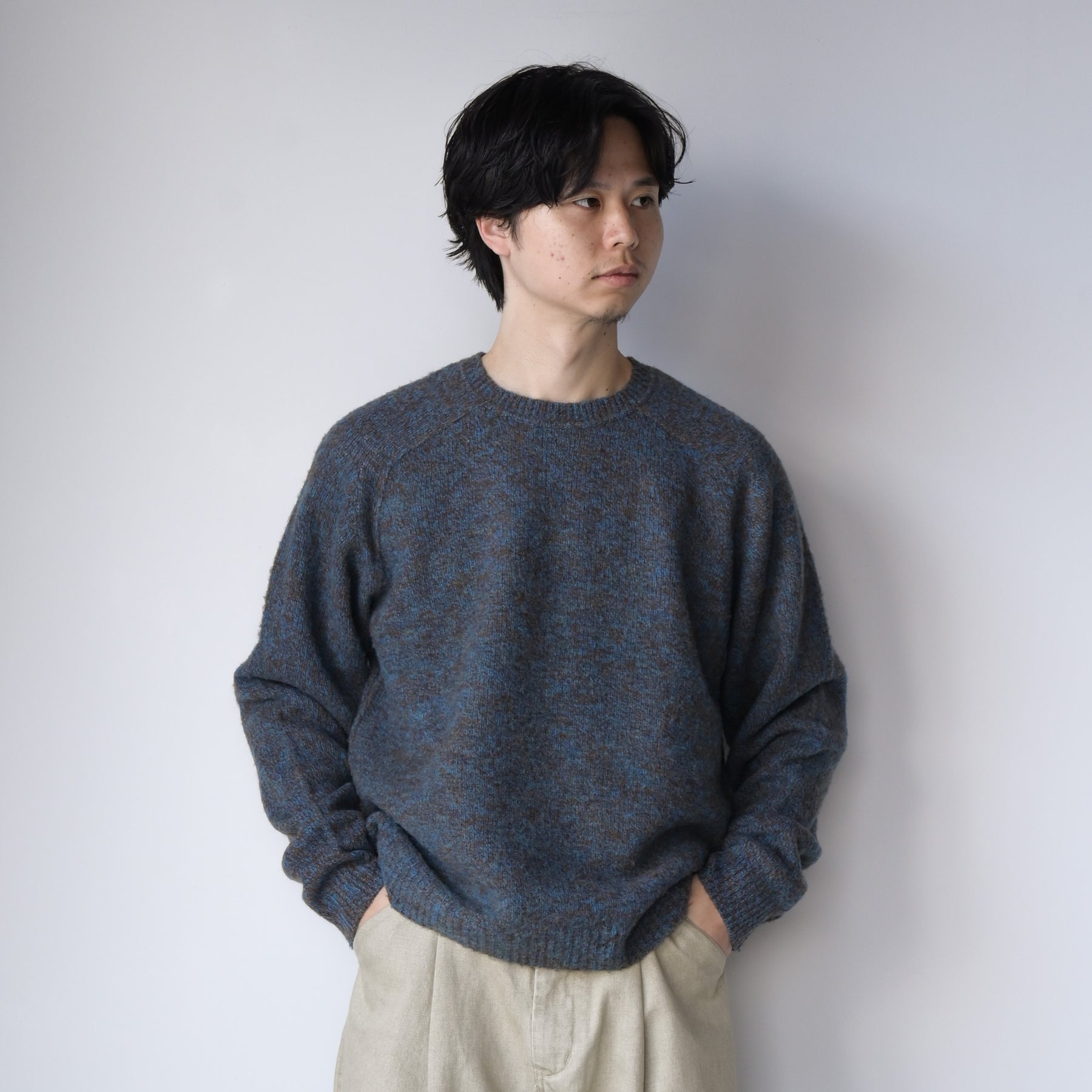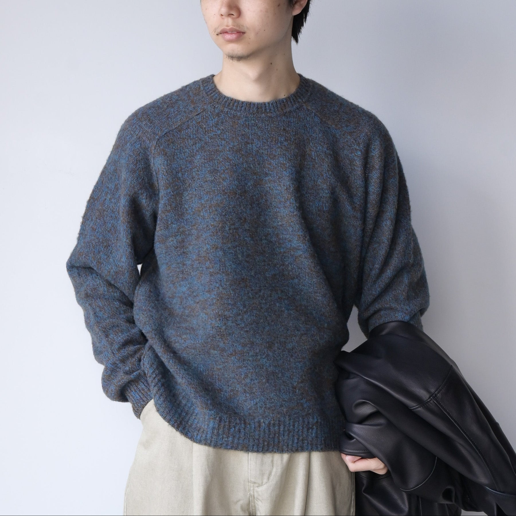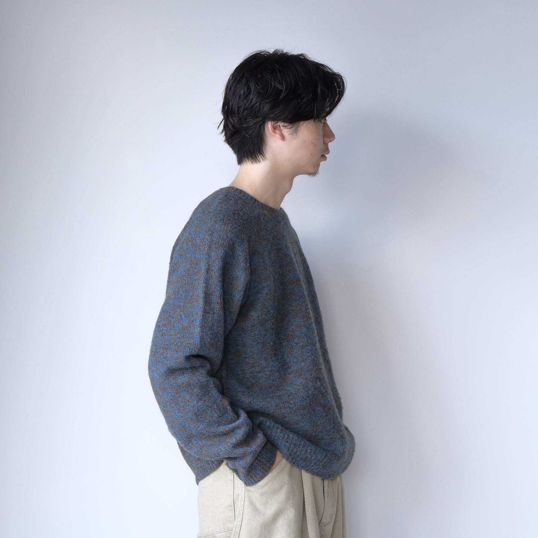 【25AW】YLÈVE ITARIAN MERINO WOOL MELANGE KNIT PULL OVER"BLUE"
