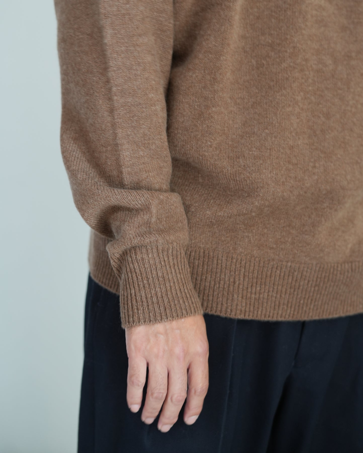 最も代表的なカシミヤニットである12GGセーターは、BODHIらしく最高級のホワイトカシミヤを使用しています。縮めてリンキングする伝統的な製法を用いており、ホワイトカシミヤの純白な性質を最大限に活かし、発色の良さが特徴です。いつまでも親しんでいただけるオーセンティックなアイテムです
