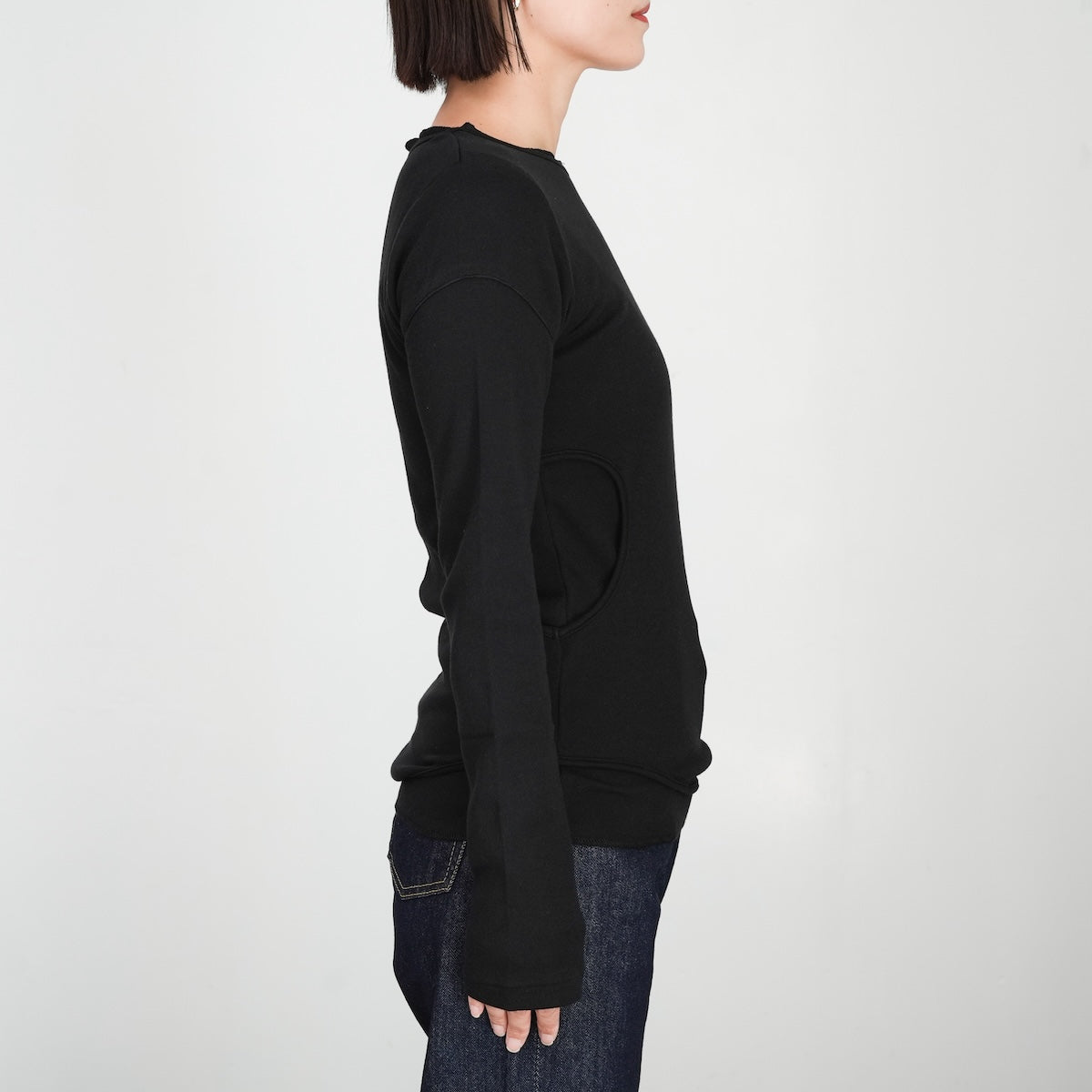 30sのスイムウエアをデザインソースにし、当時は男性も着用していた脇下に大きくホールの空いたデザインが斬新で可愛いのですが、着用しやすいように長袖とのレイヤードデザインに変更。