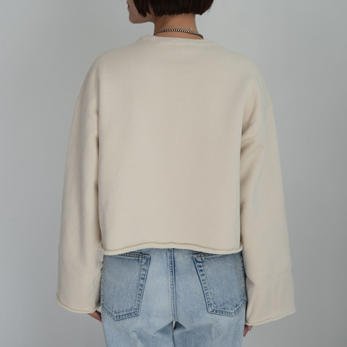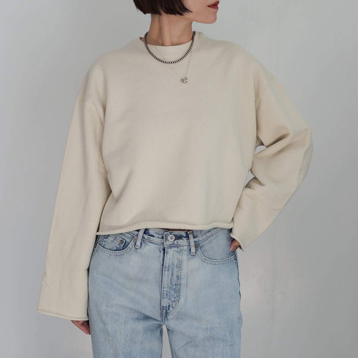 ショートレングスのフォルムが効いたスウェットプルオーバー。