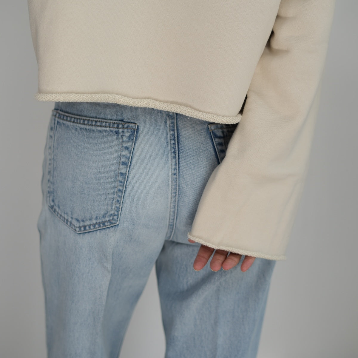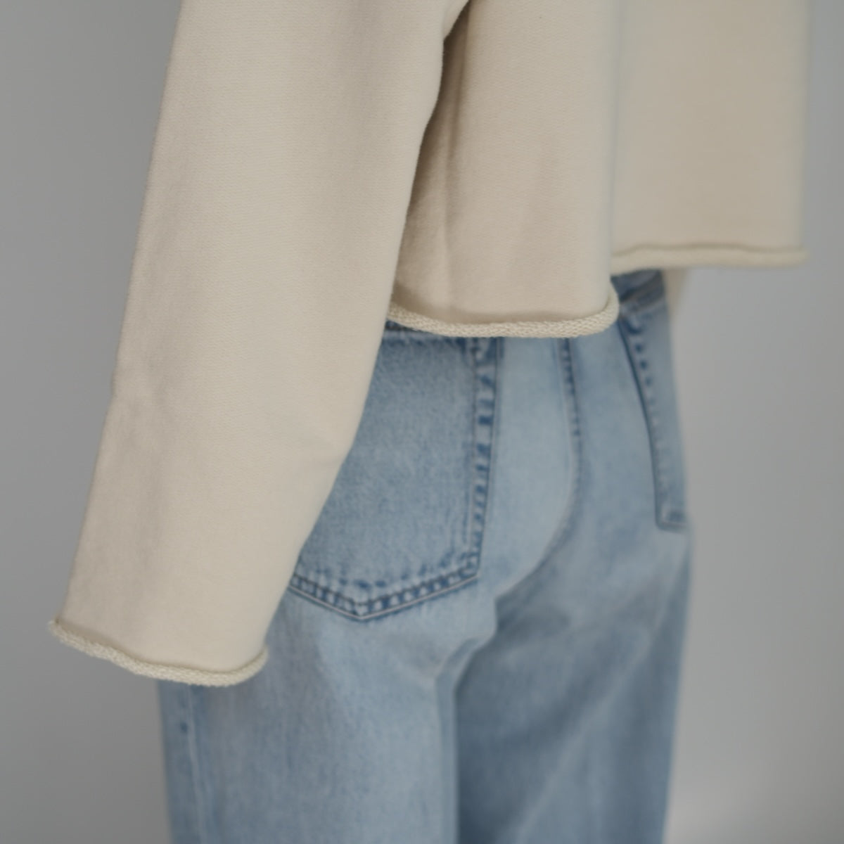 カットオフで仕上げた裾と袖口がアクセントになっています。