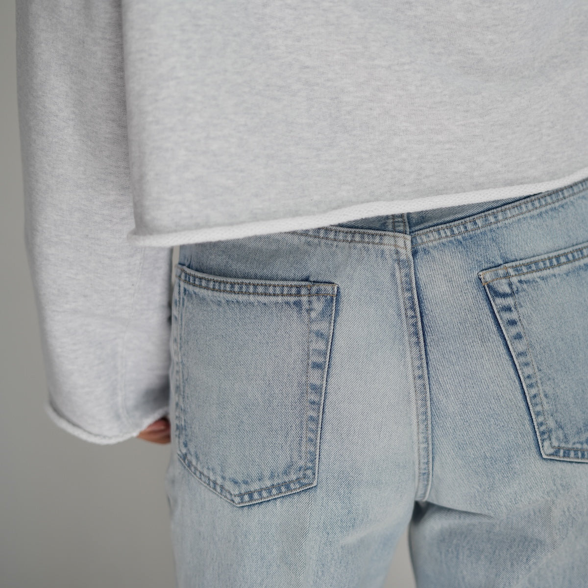 カットオフで仕上げた裾と袖口がアクセントになっています。