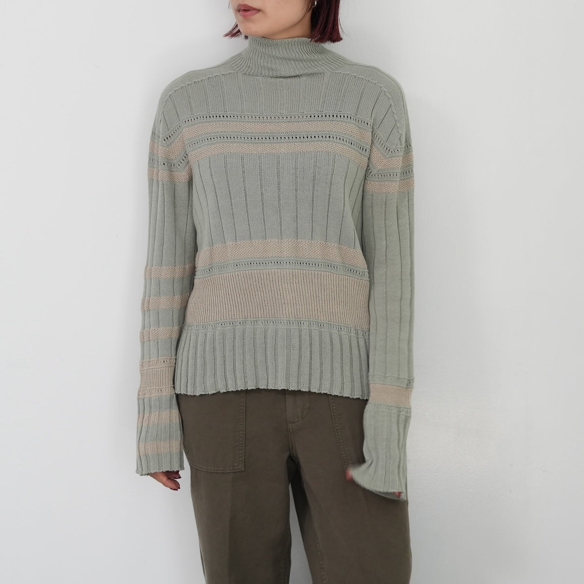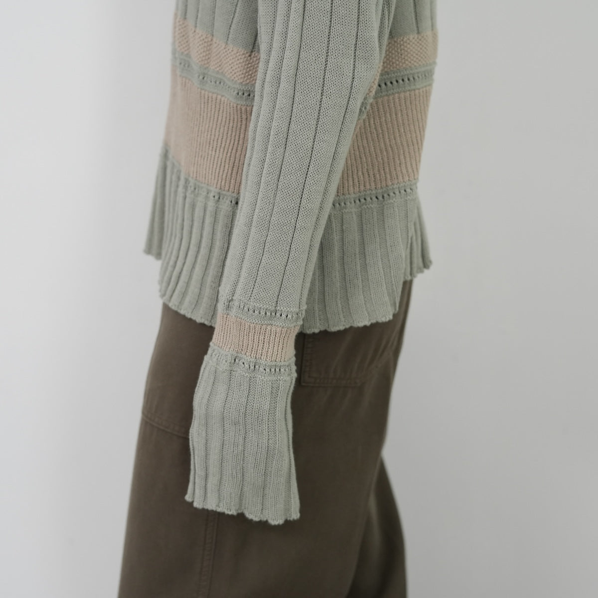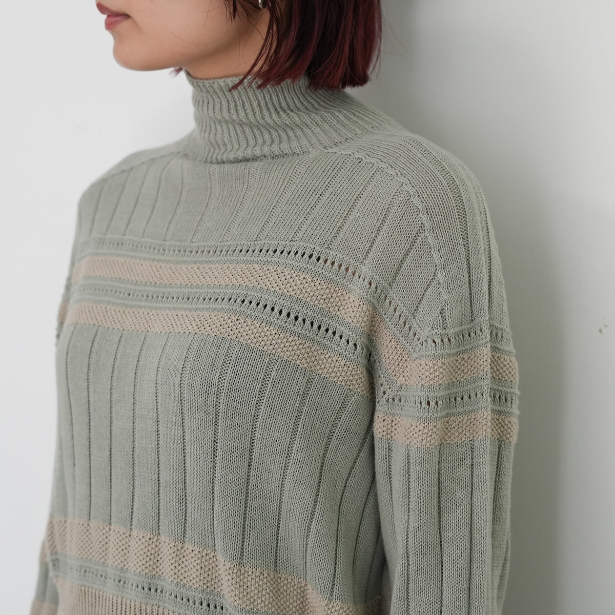 デザインボーダーのアクセントや編みのゆるさなど、つい手に取ってしまう着やすさを大切にデザインした主役にも脇役にもなる万能な1着。