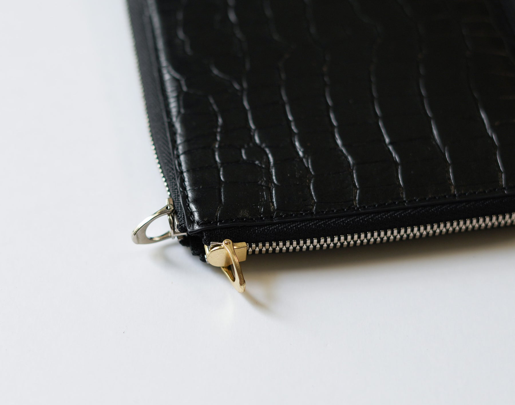 1本のファスナーから2つのポケットが現れる独自の構造( *PATENTED)をもったラウンドジップシリーズです。