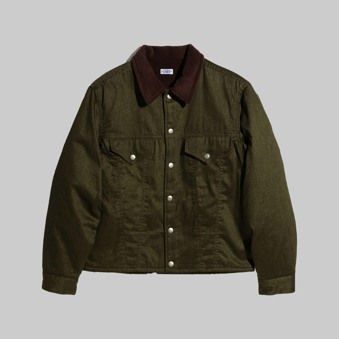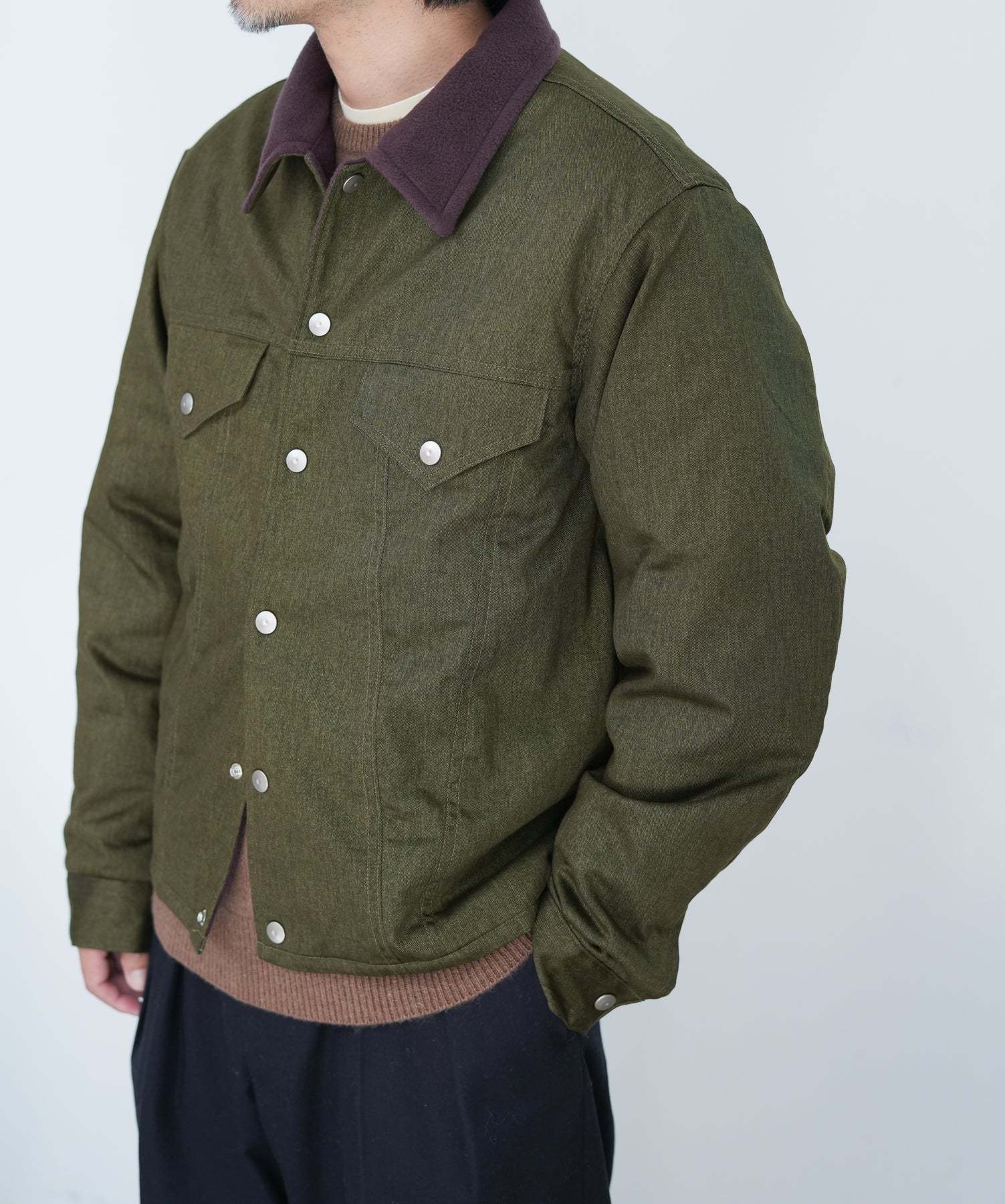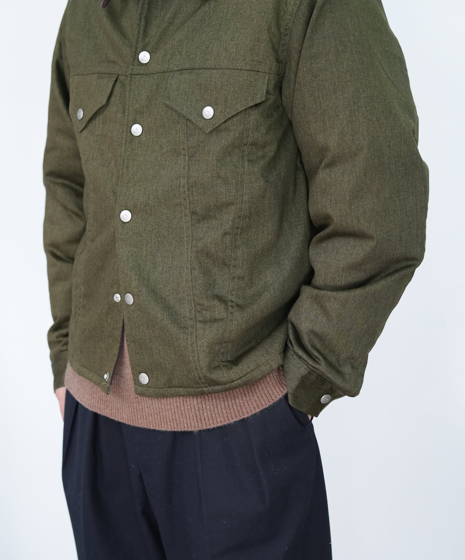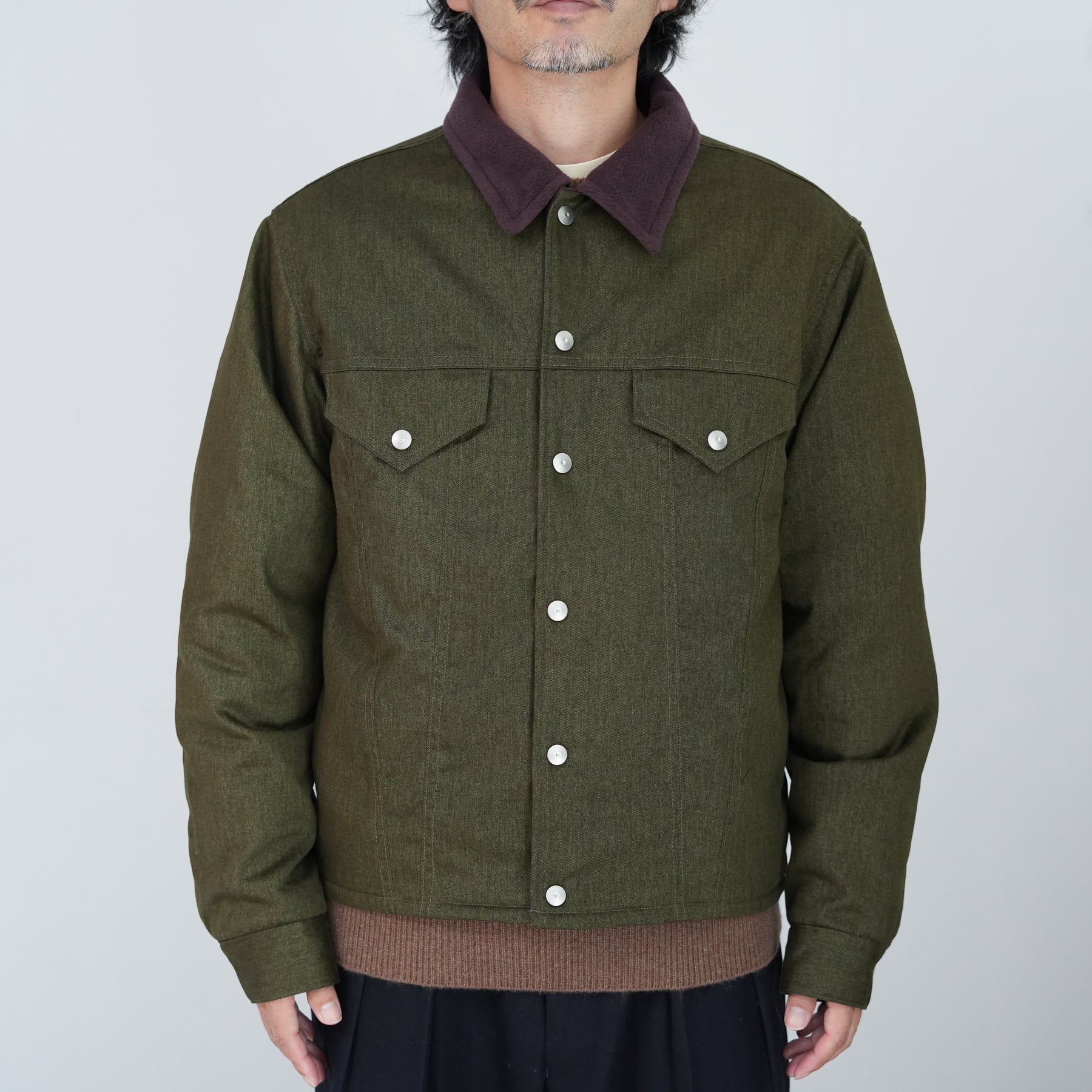 表の厚いデニムは薄手の生地に置き換え、中のボアはフリース素材に変換。そうして軽くて着やすいジャケットに仕立て直しました。パターンは当時のまま。60年代くらいのアイテムですが、コンパクトながらも可動域が確保され、カラダを動かしやすくつくられています。