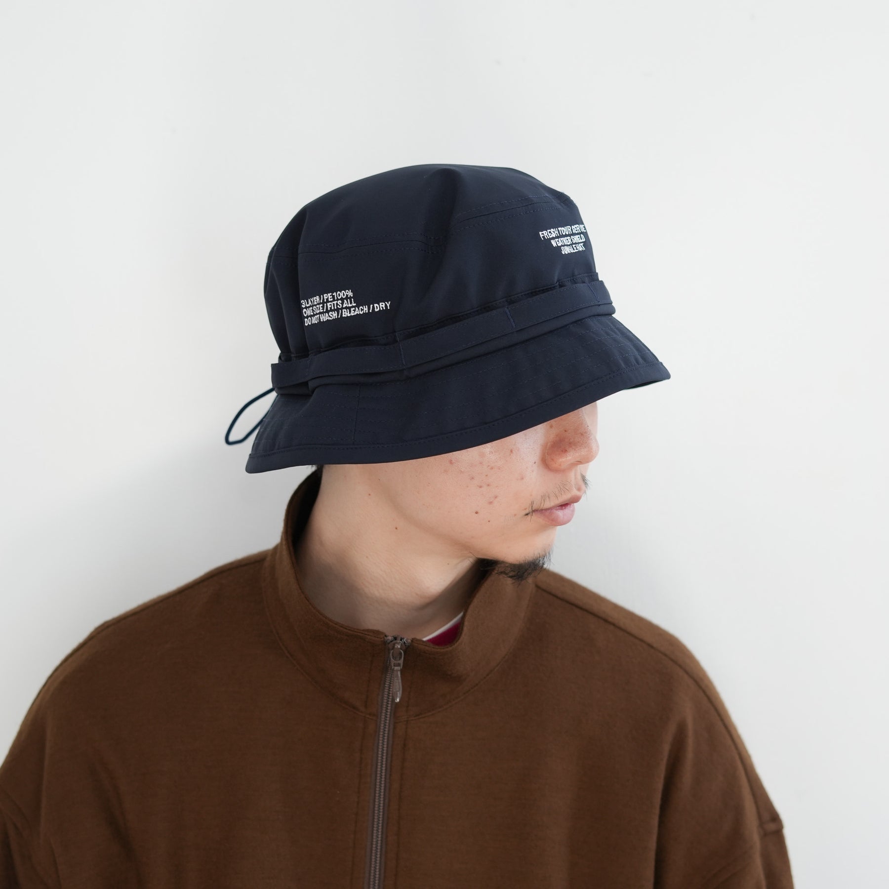 軽量で撥水性・透湿性に優れたオリジナル3レイヤーファブリックを採用したジャングルハット。天候の変化に左右されにくいタフな機能性と、コンパクトに折り畳める携帯性を兼ね備える。ドローコードやループ状のテープなど、実用性を高めるパーツを随所に配置。無駄のないミニマルなルックスと高機能素材の融合が、街でもフィールドでもスタイルに自然と溶け込む。都市と自然をシームレスにつなぐ、新しい視点のヘッドギア。
