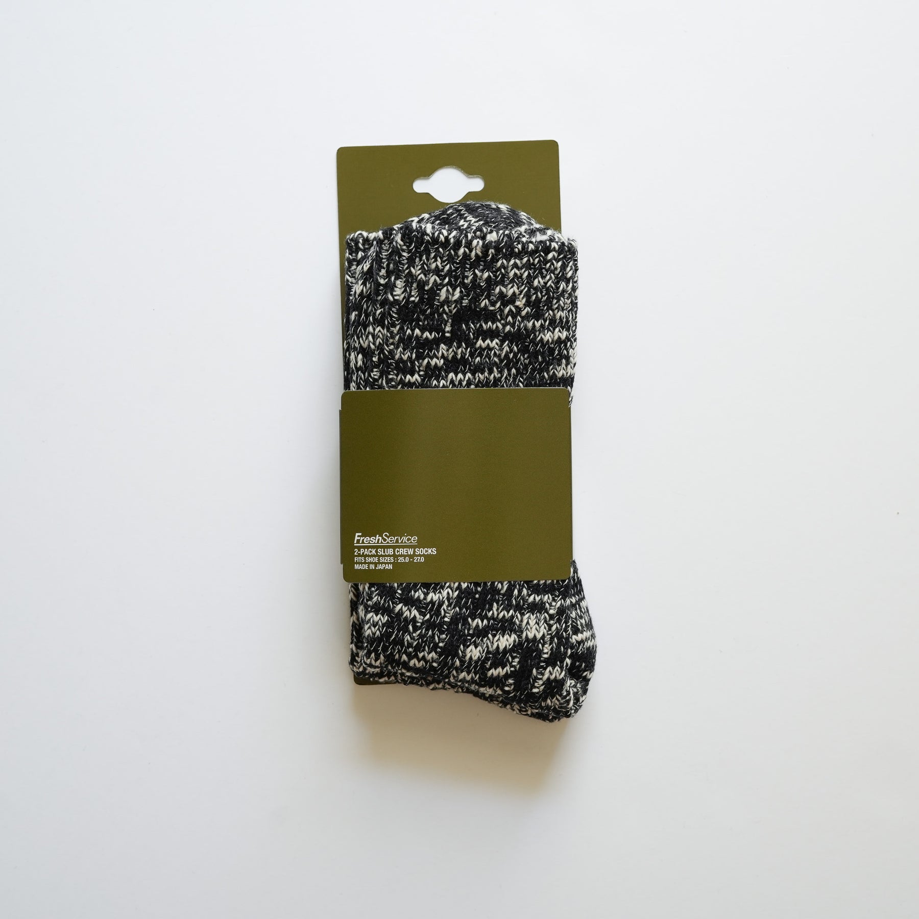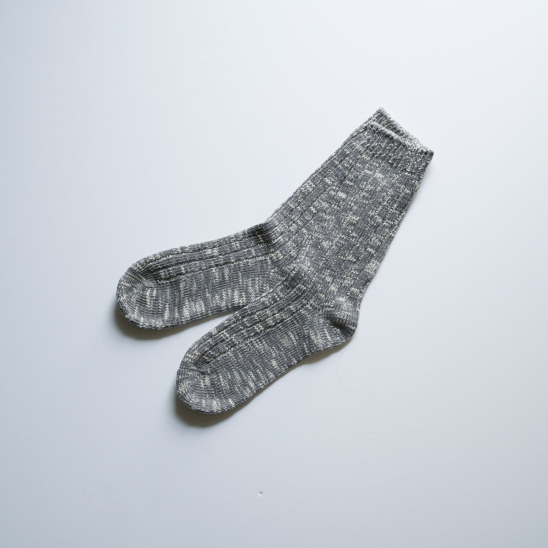 どこか懐かしいアウトドアテイストで、凹凸のあるスラブ糸をブレンドしたメランジ調のクルーソックス。毎日履きたくなる心地よさを提供し、毛玉も目立ちにくく耐久性も抜群。同色の2パック展開。