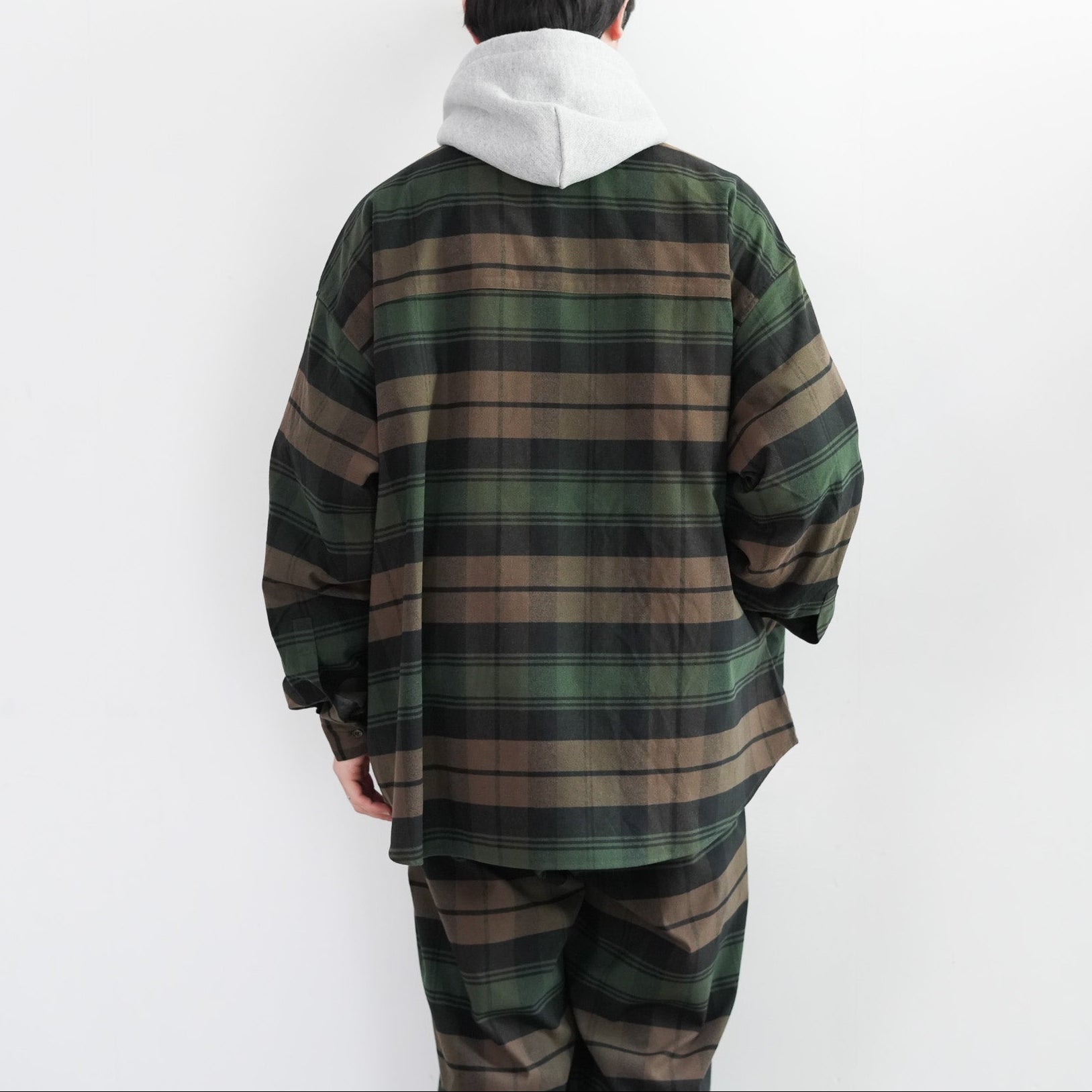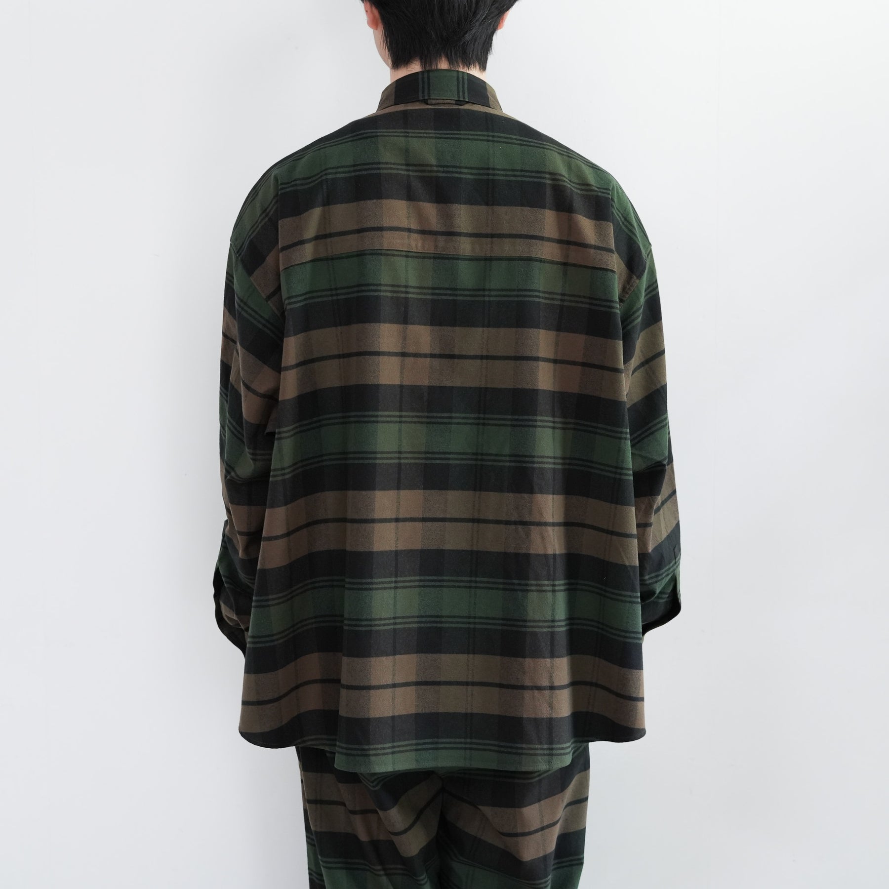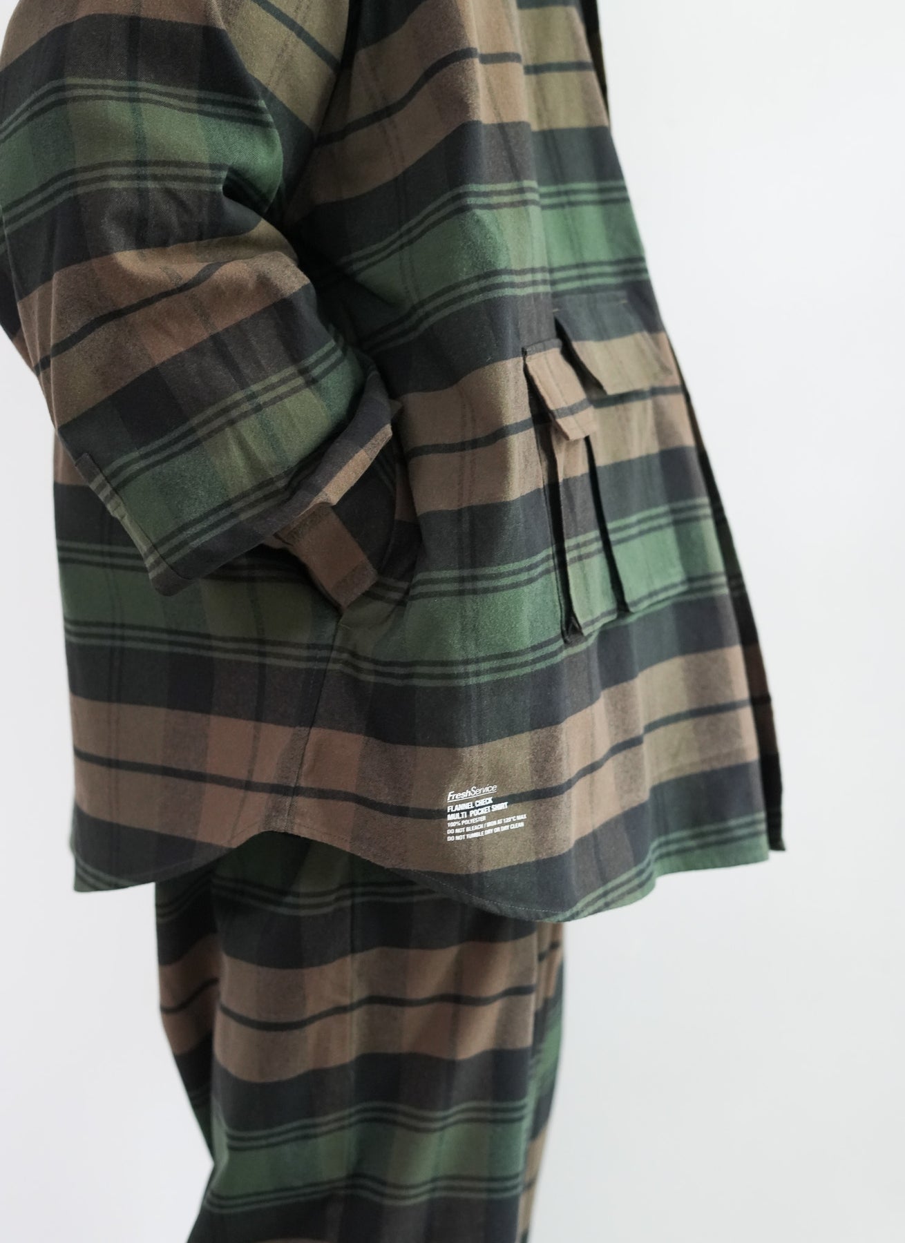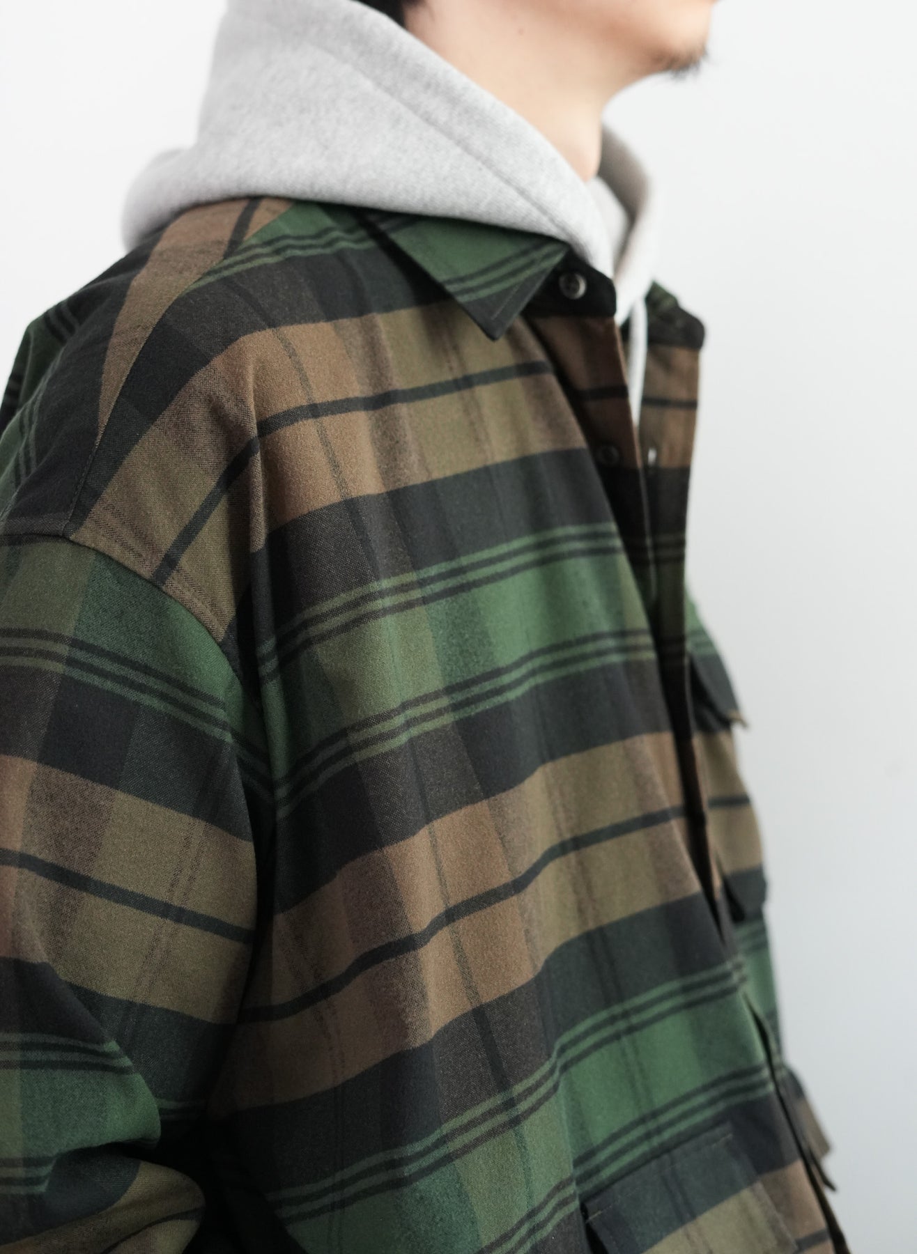 フランネルチェック生地を採用したマルチポケットシャツ。軽さと暖かさに加え、イージーケアも備えた機能素材をチョイス。大小さまざまなポケットをフロントに配し、ツールウェア由来の実用性とデザイン性を両立した一着。肩線を落とした丸みのあるシルエットが、ラフで抜け感のある着こなしに。