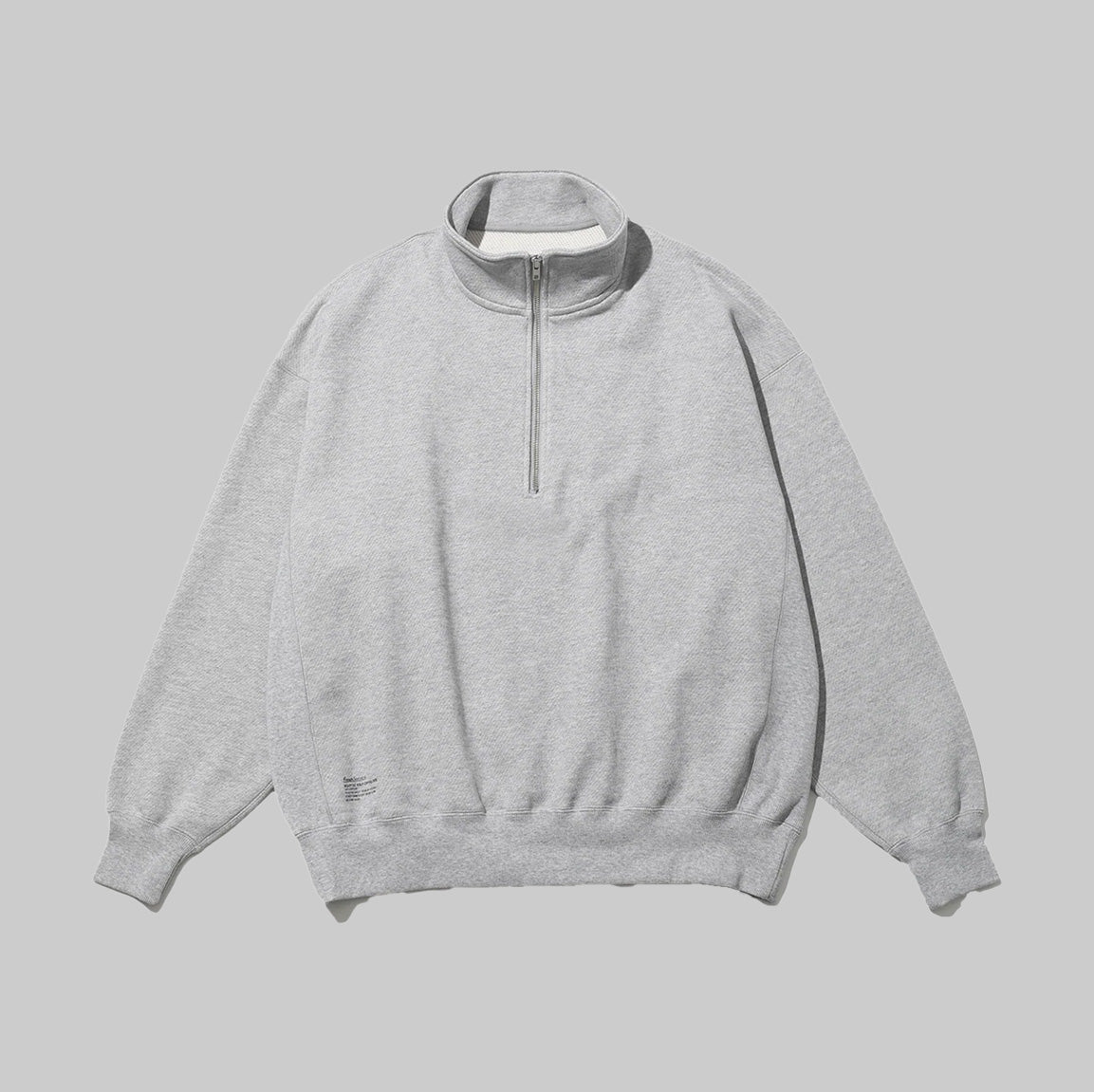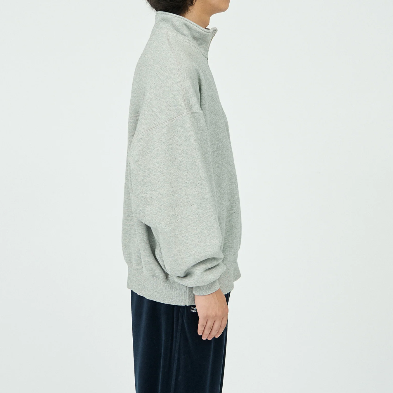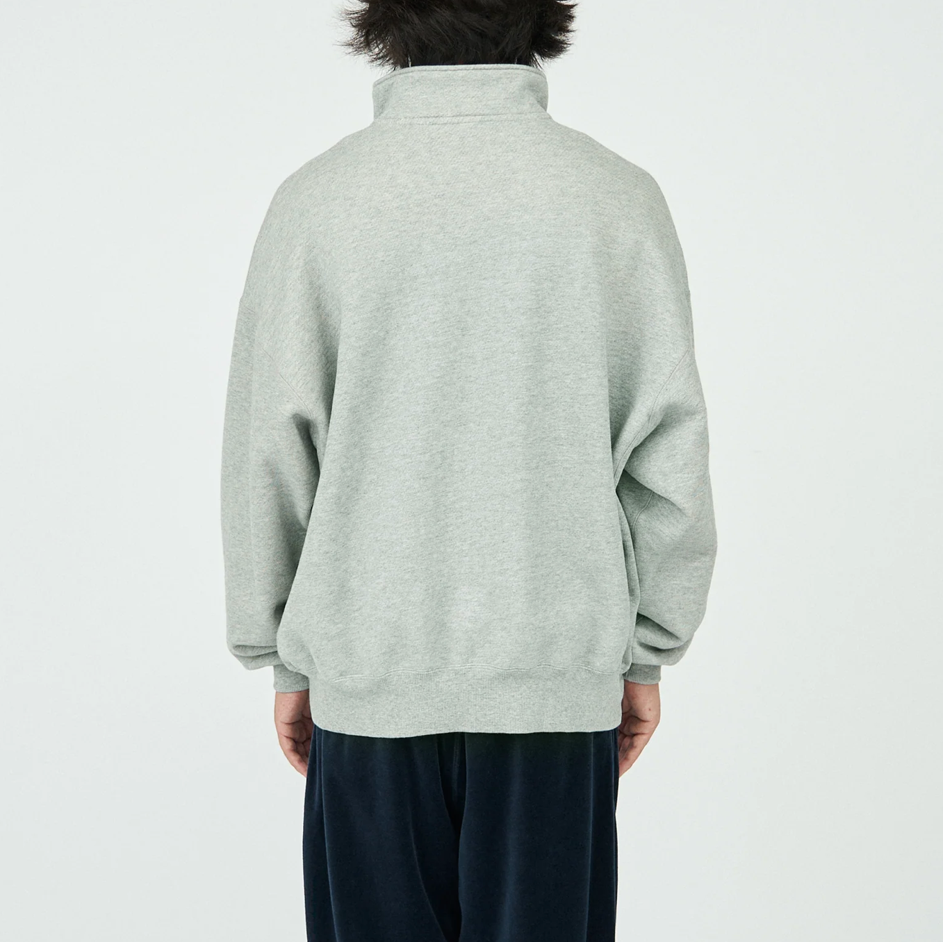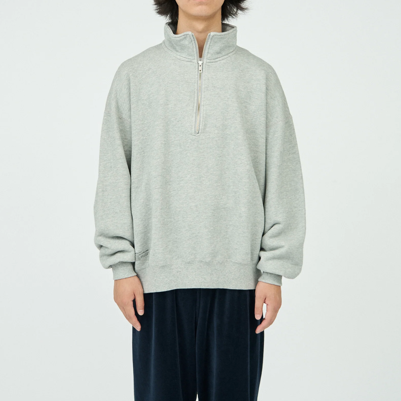 しっかりとしたタフな風合いを感じられるスタンドカラーのハーフジッププルオーバー。90年代のストリートカジュアルをイメージしたハーフジッププルオーバーは身幅からアームまでゆったりとしたルーズフィット。表面はクリーンな表情でありながらしっかりと目が詰まった肉厚な生地に。