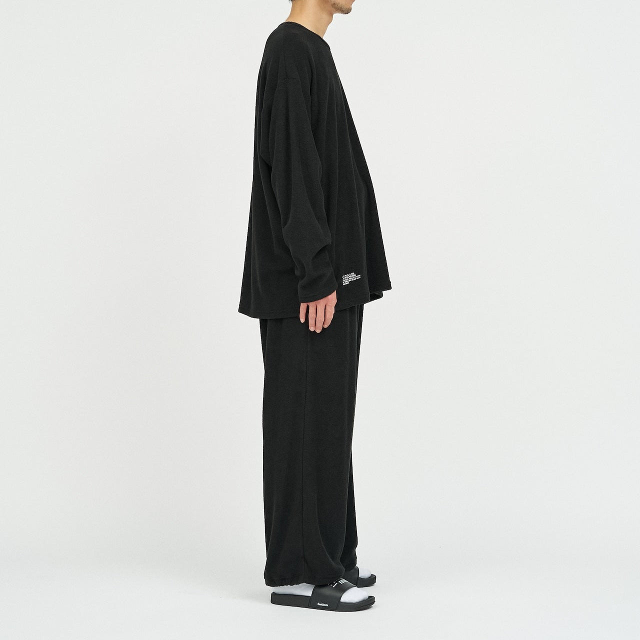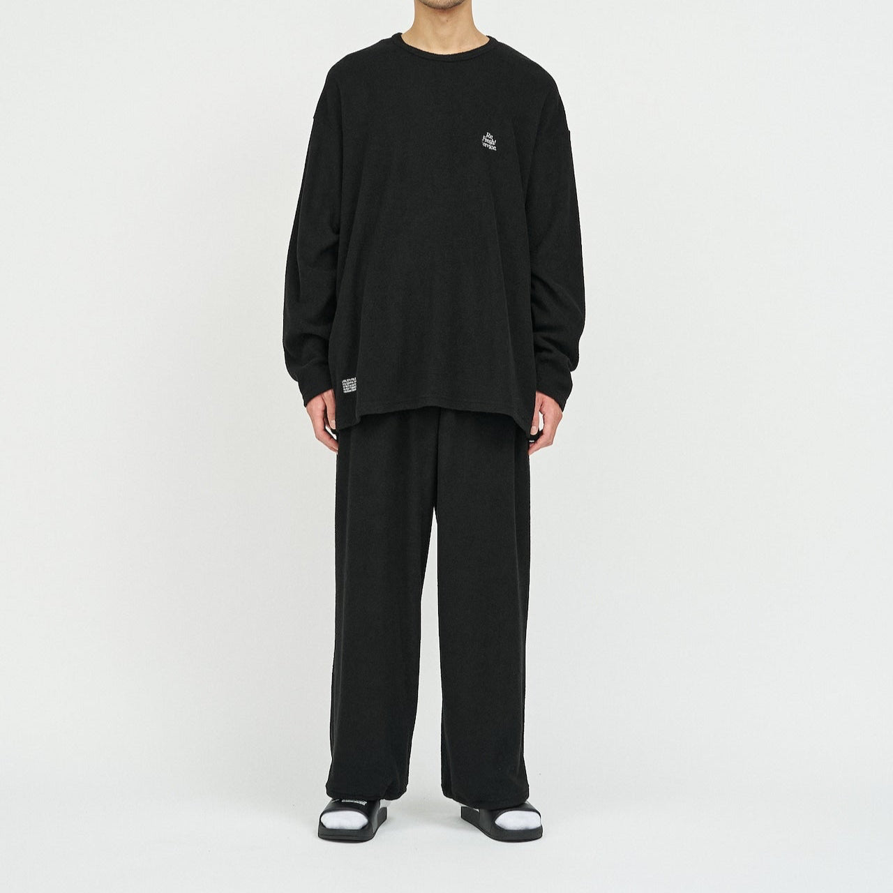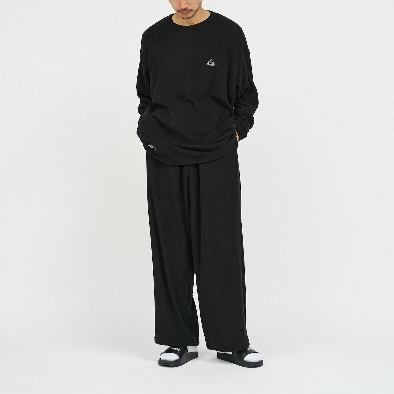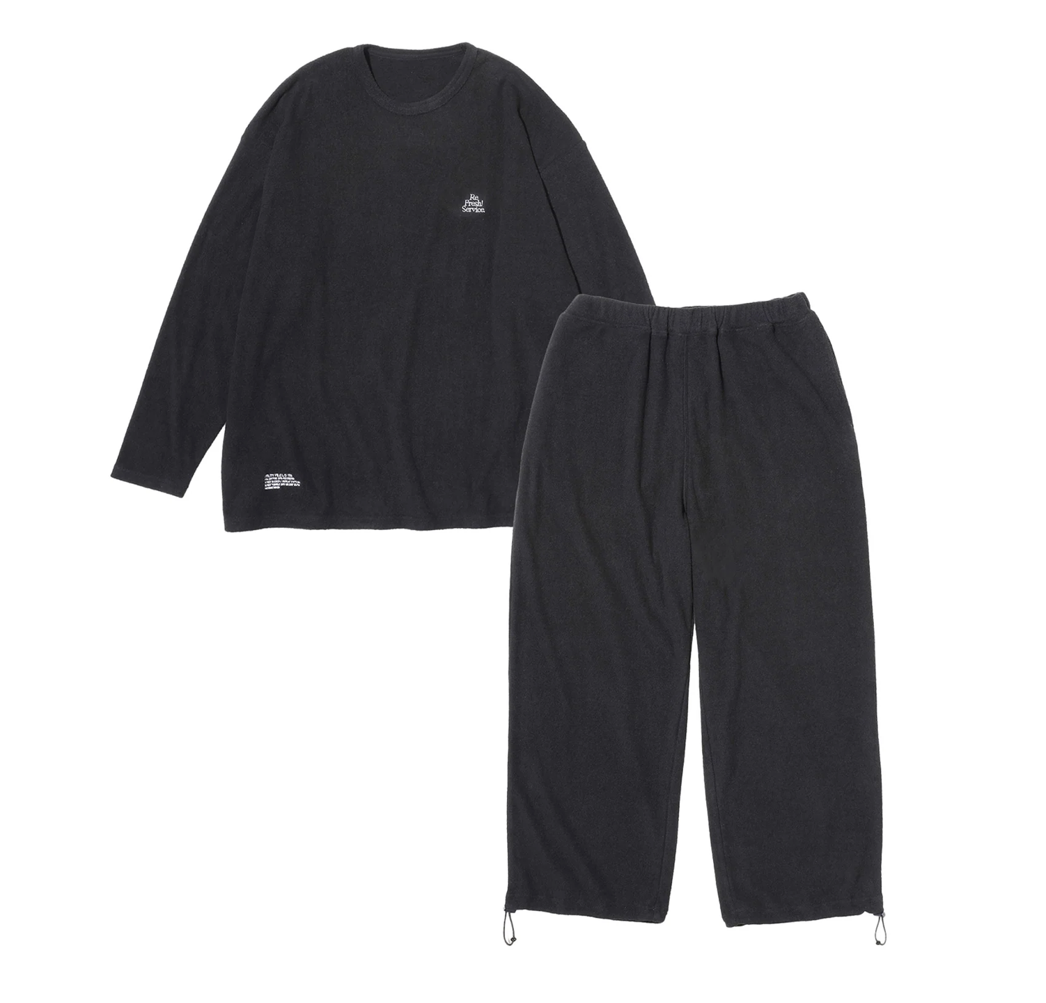 柔らかな肌触りでリラックス感溢れるパイル地を使用したReFresh!ServiceのロングスリーブTシャツとイージーパンツのセットアップ。ゆったりとしたサイジングで伸縮性も抜群。通気性も良くルームウェアとしても快適。