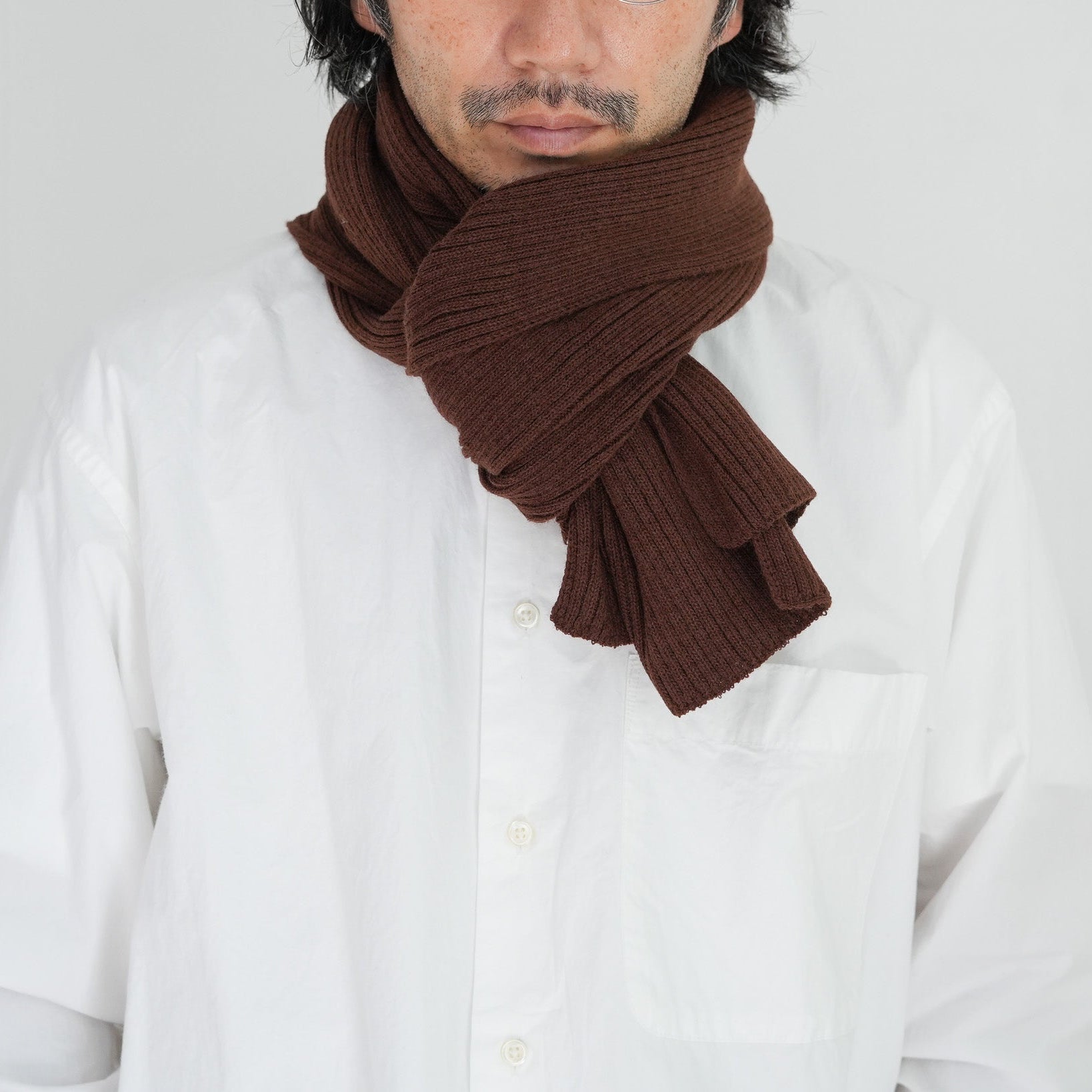 冬場の外出時に頼れる一本。滑らかな肌触りと高い保温性を両立しながら、ワンポイントの刺繍ロゴがさりげないアクセントに。遠赤外線を放出するセラミック繊維を練り込んだアクリル/ナイロン混紡糸を、7ゲージで編み立てたリブニットを使用。中厚手の程よいボリューム感に加え、抗菌・防臭機能も備え、機能とデザインをミニマルに融合した、デイリー仕様の防寒アイテム。
