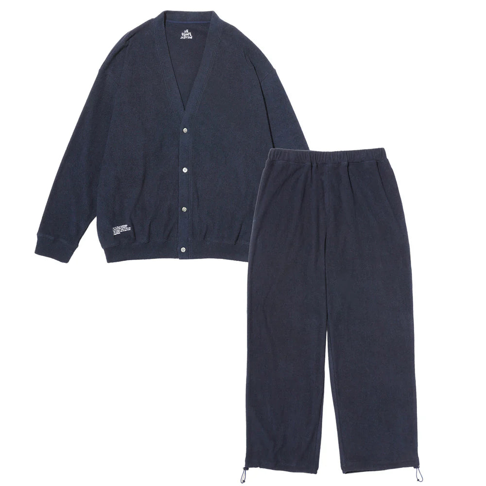 柔らかな肌触りでリラックス感溢れるパイル地を使用したReFresh!Serviceのカーディガンとイージーパンツのセットアップ。ゆったりとしたサイジングで伸縮性も抜群。通気性も良くルームウェアとしても快適。