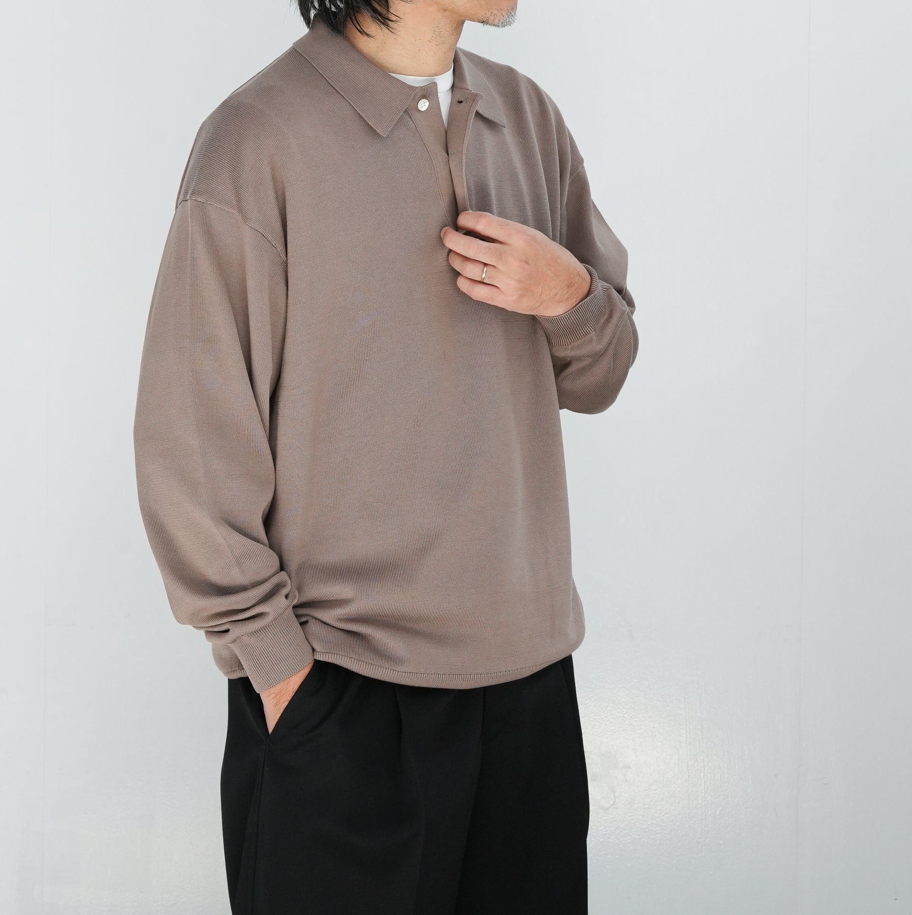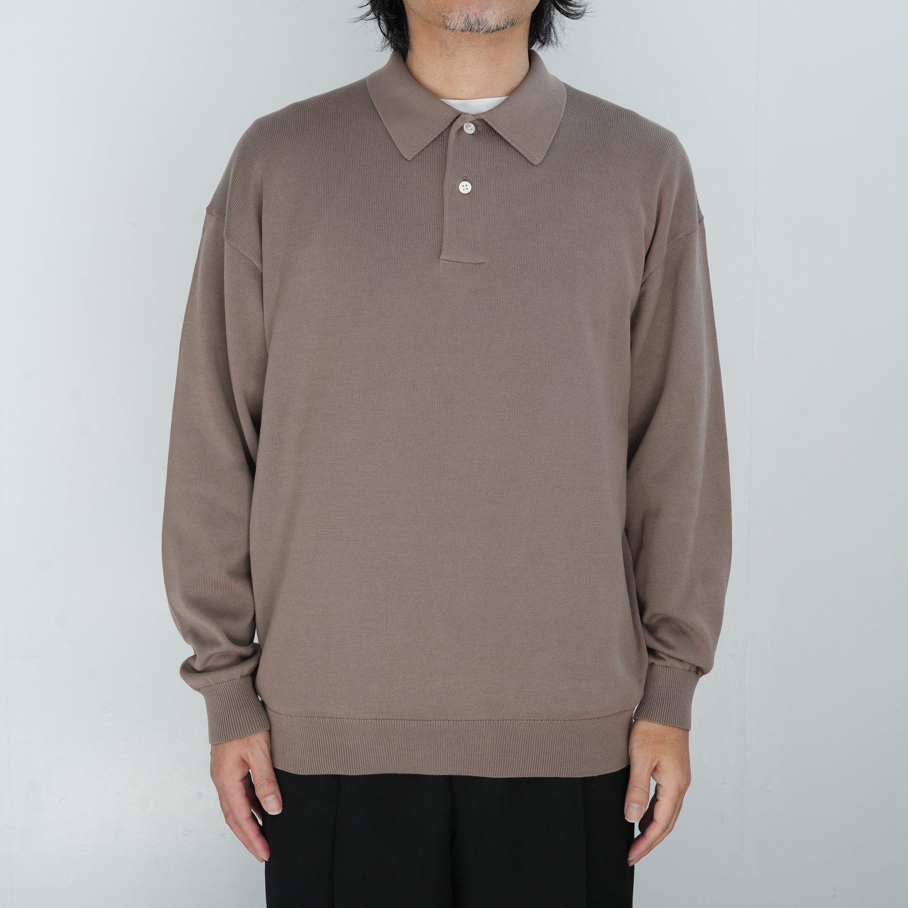 ボリュームのあるシルエットが特徴のロングスリーブニットポロ。イタリアを拠点に世界中に高品質な糸を供給するEmilcotoni社のスビンコットンを採用。糸本来が持つ上品な光沢と、豊富な油脂分による滑らかな肌触りが特徴です。