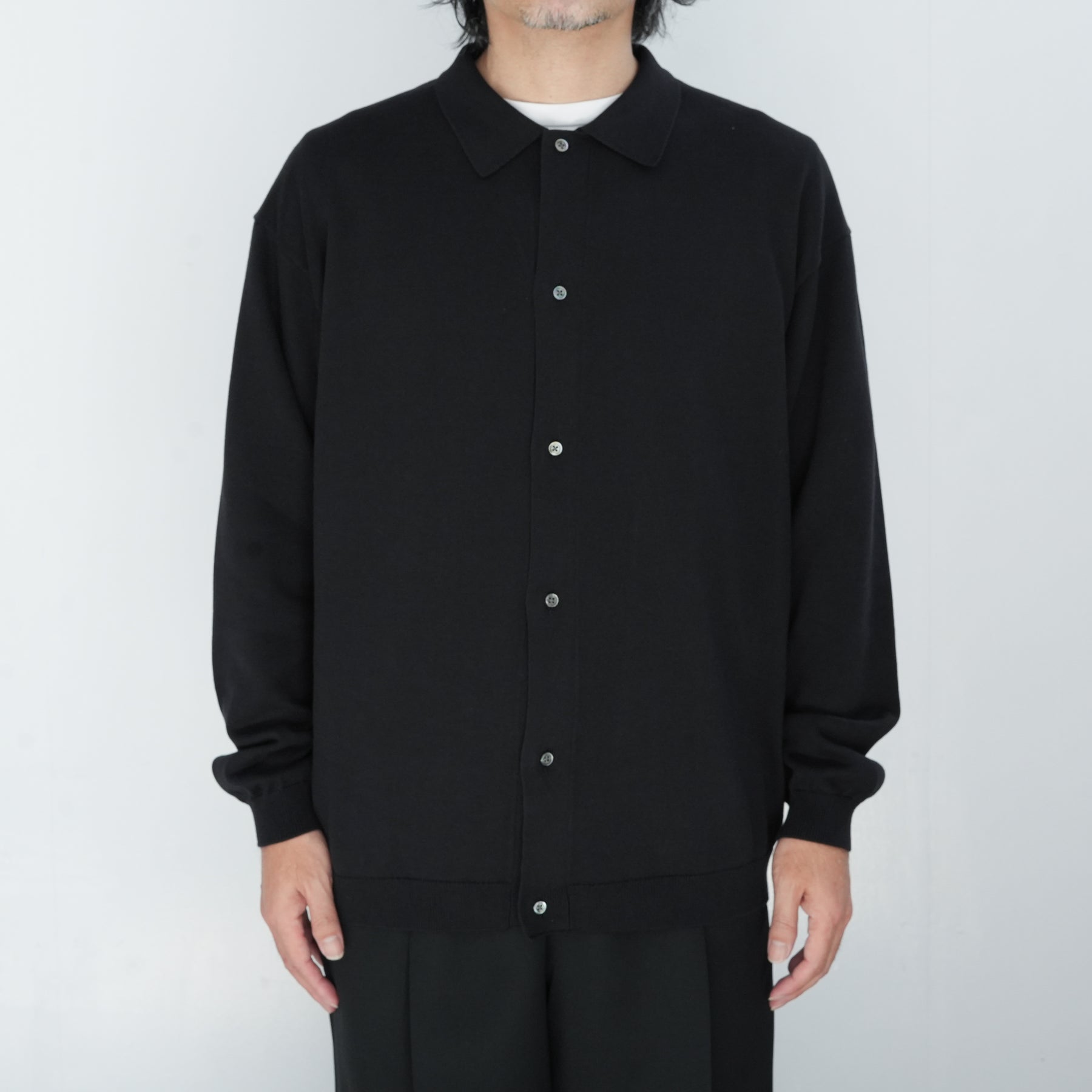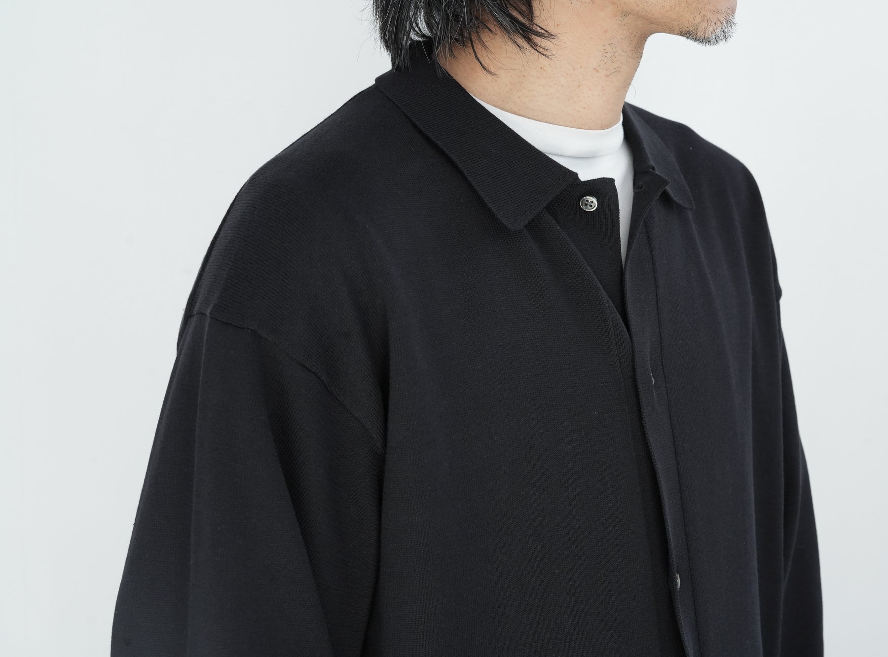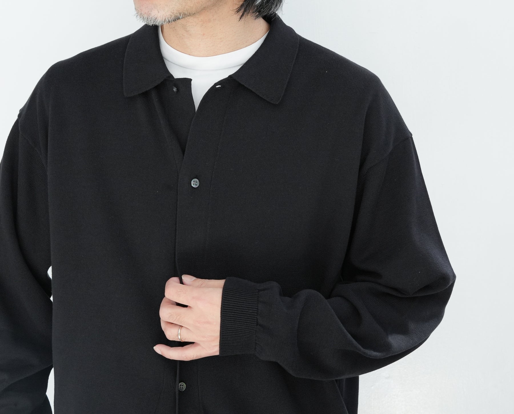 イタリアを拠点に世界中へ高品質な糸を供給するEmilcotoni社のスビンコットンを使用したロングスリーブニットシャツ。ボリュームのあるシルエットで、カーディガンのようにも着用が可能。糸本来が持つ上品な光沢と、豊富な油脂分によるなめらかな肌触りが魅力です。