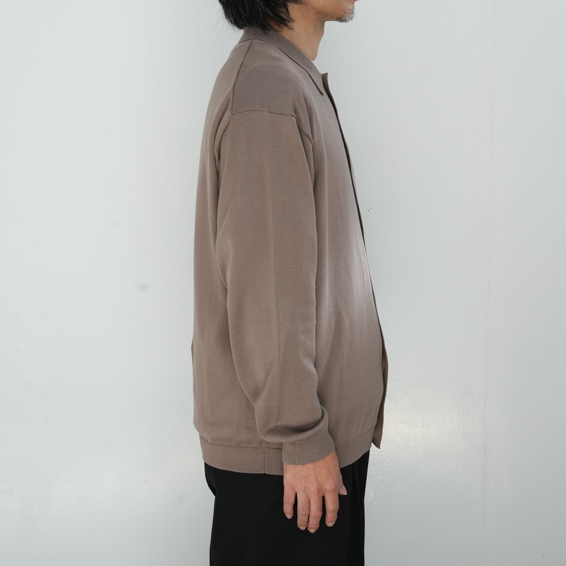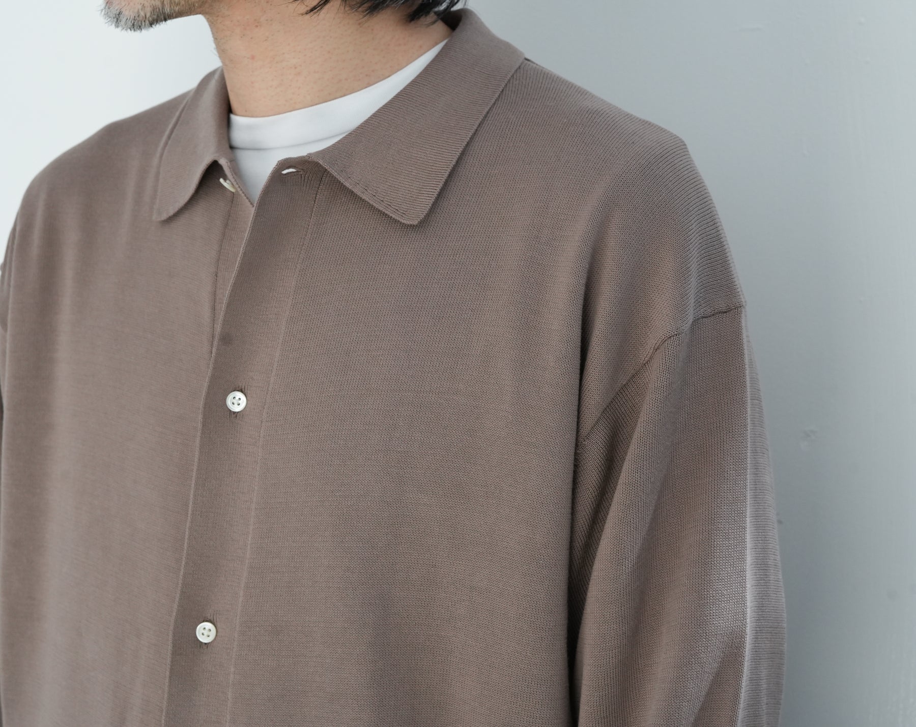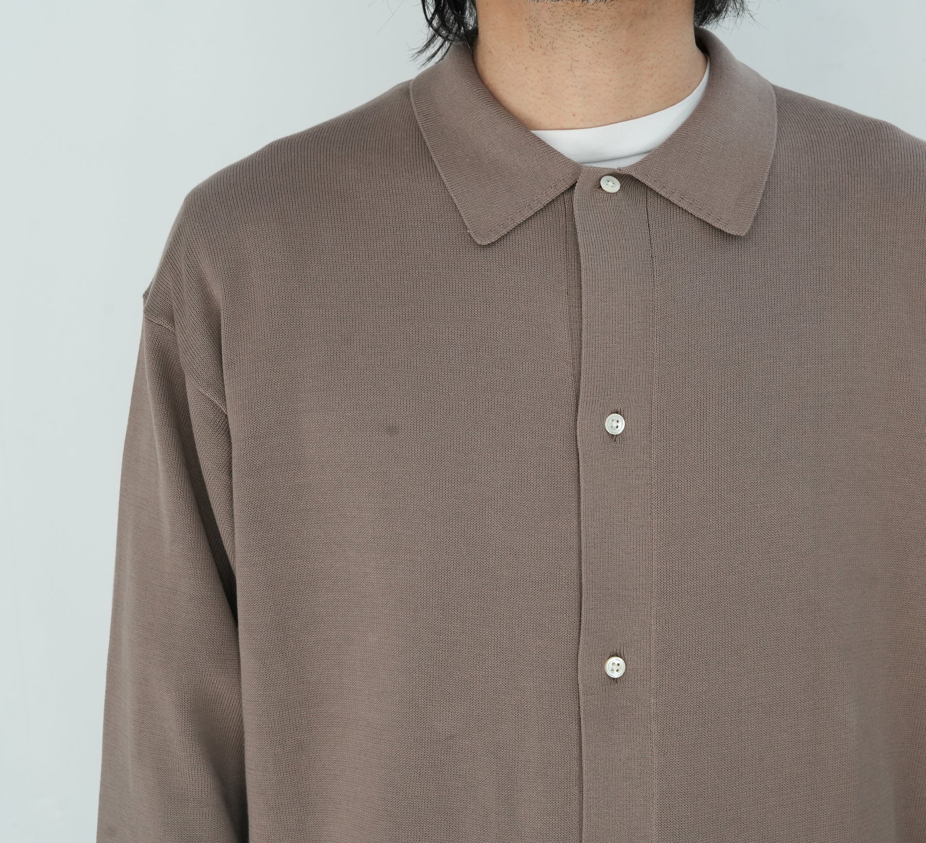 イタリアを拠点に世界中へ高品質な糸を供給するEmilcotoni社のスビンコットンを使用したロングスリーブニットシャツ。ボリュームのあるシルエットで、カーディガンのようにも着用が可能。糸本来が持つ上品な光沢と、豊富な油脂分によるなめらかな肌触りが魅力です。