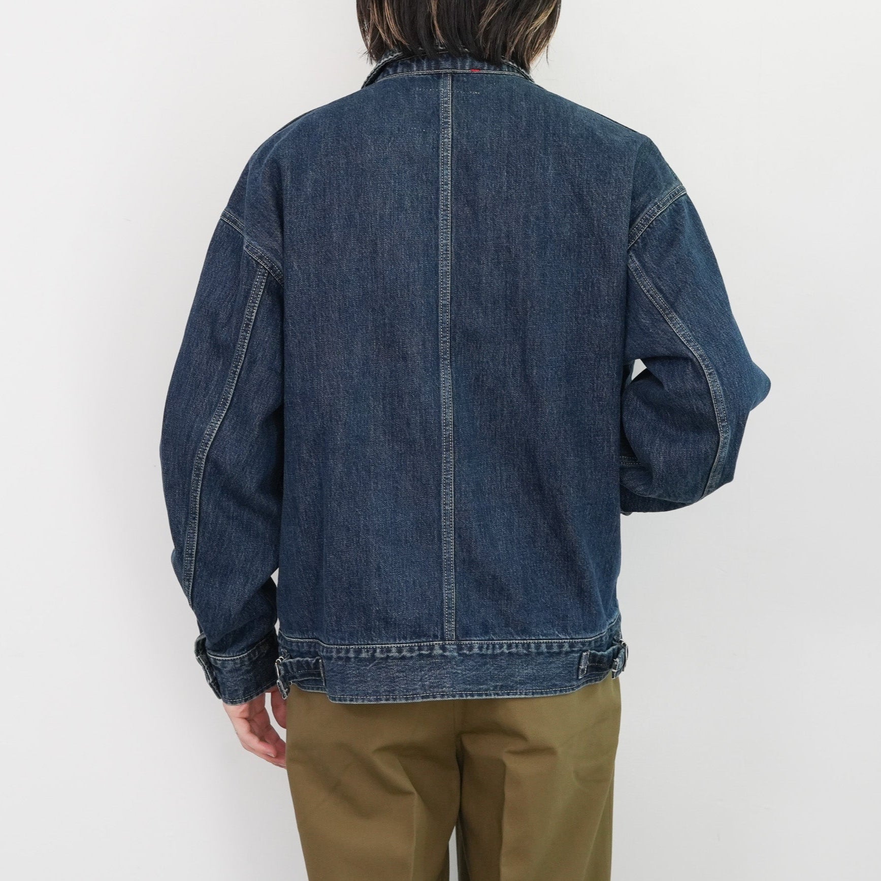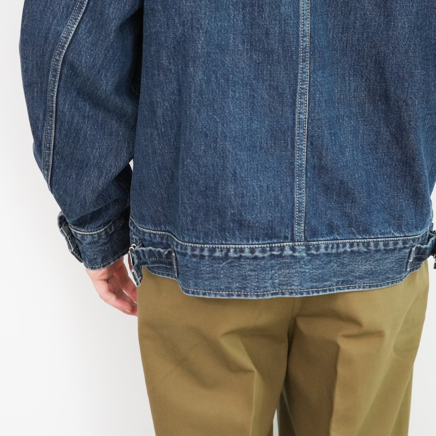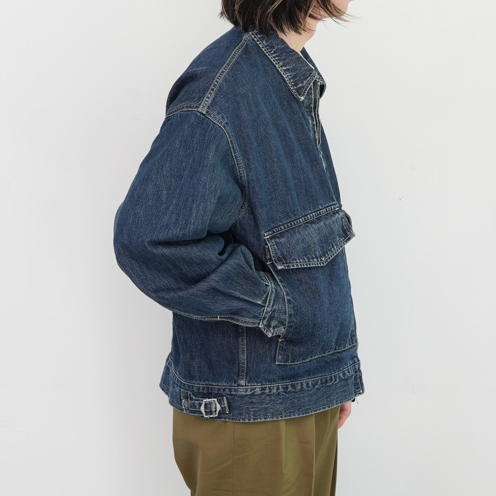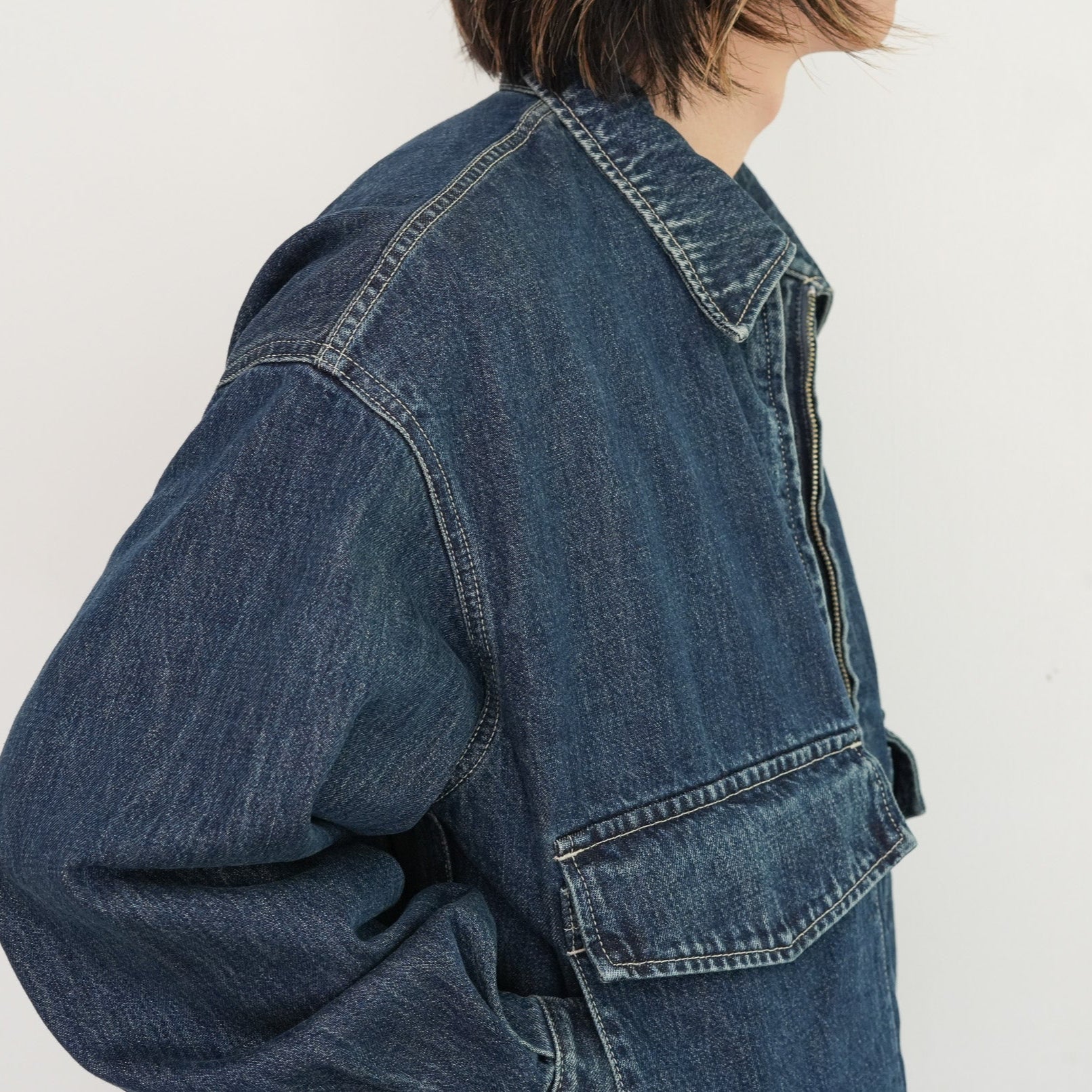 130年もの歴史を誇る米国Cone Denim社が作る13.75オンスのセルビッチデニム。旧式力織機でゆっくりと織り上げることで生まれる、生地表面のざらっとした凹凸やムラがデニム本来の風合いを感じさせる魅力的な素材。コンパクトな身幅に反して大胆にドロップしたショルダーと大振りなスリーブが特徴のフロントジップジャケット。今シーズンからメンズモデルも展開。短めの着丈がレイヤリングの幅を広げる1着。長く使い込まれたような淡い色合いのライトフェイド。