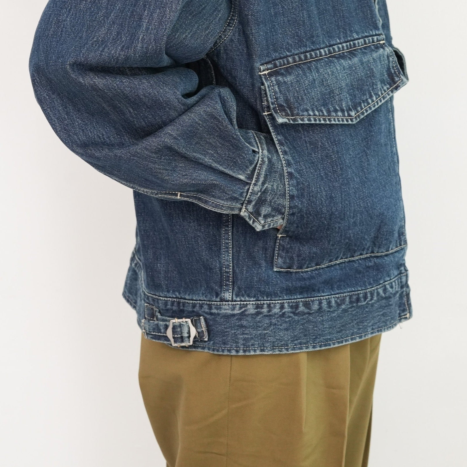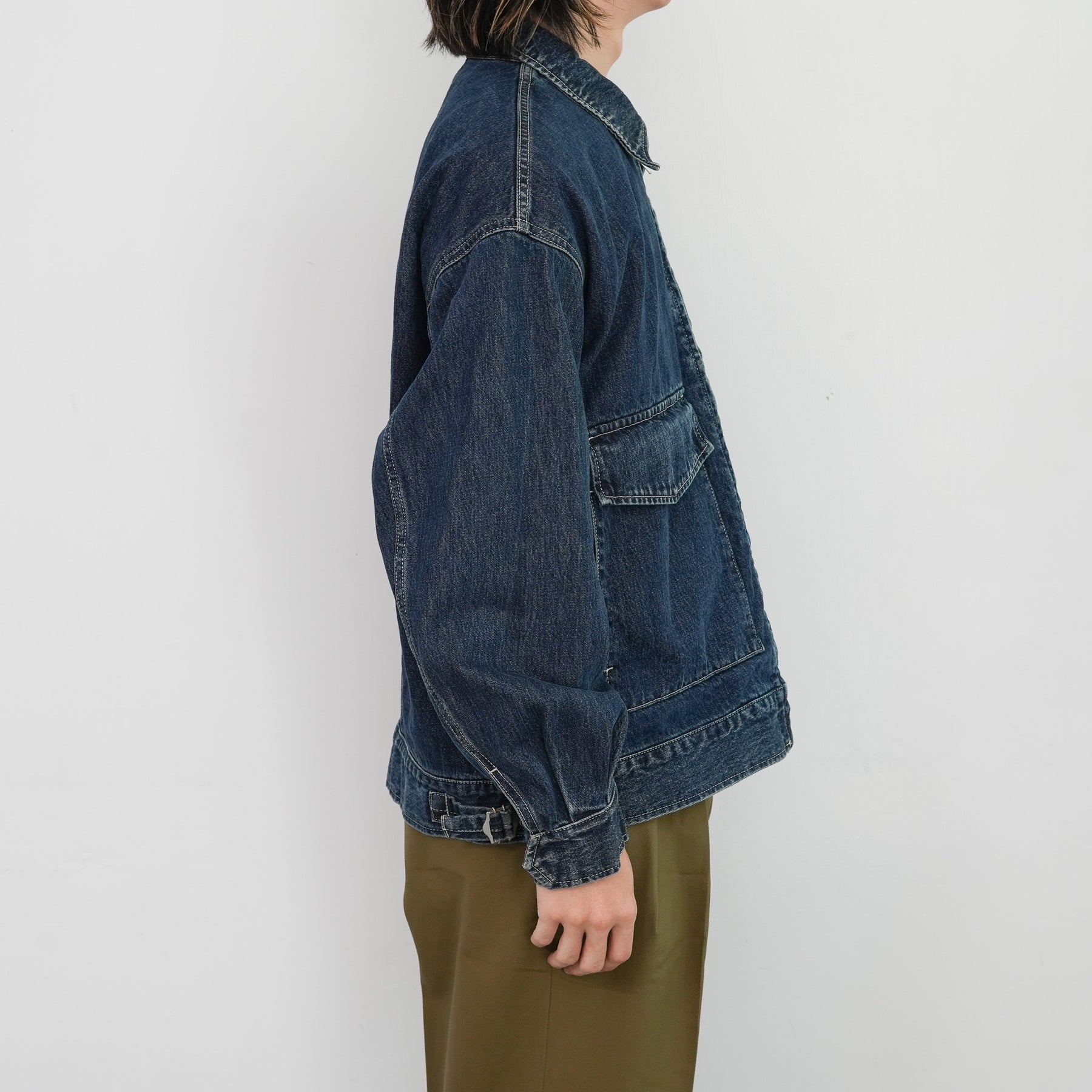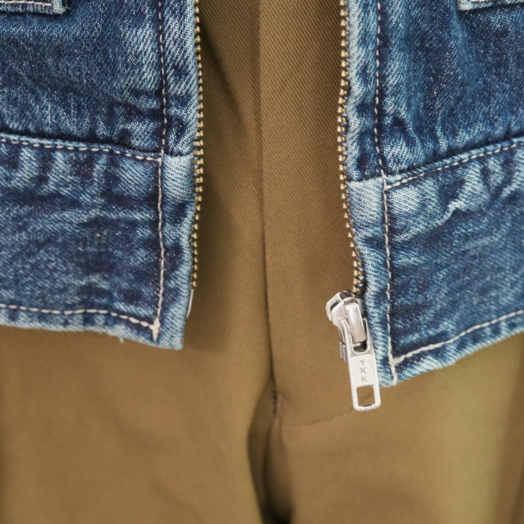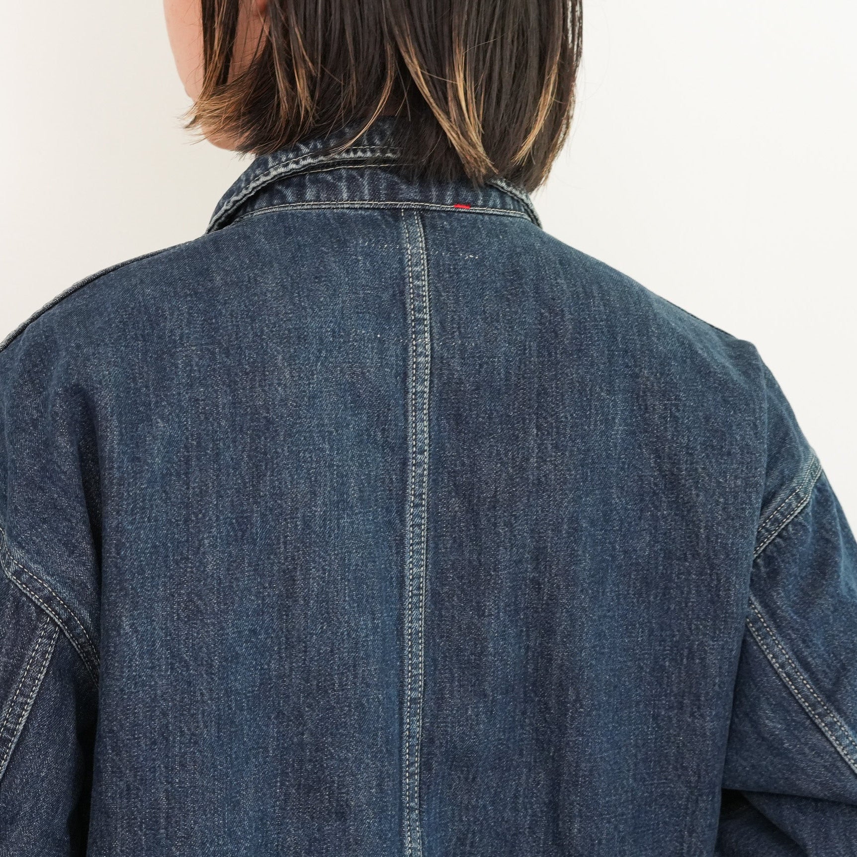 130年もの歴史を誇る米国Cone Denim社が作る13.75オンスのセルビッチデニム。旧式力織機でゆっくりと織り上げることで生まれる、生地表面のざらっとした凹凸やムラがデニム本来の風合いを感じさせる魅力的な素材。コンパクトな身幅に反して大胆にドロップしたショルダーと大振りなスリーブが特徴のフロントジップジャケット。今シーズンからメンズモデルも展開。短めの着丈がレイヤリングの幅を広げる1着。長く使い込まれたような淡い色合いのライトフェイド。
