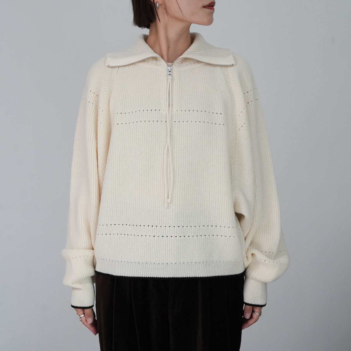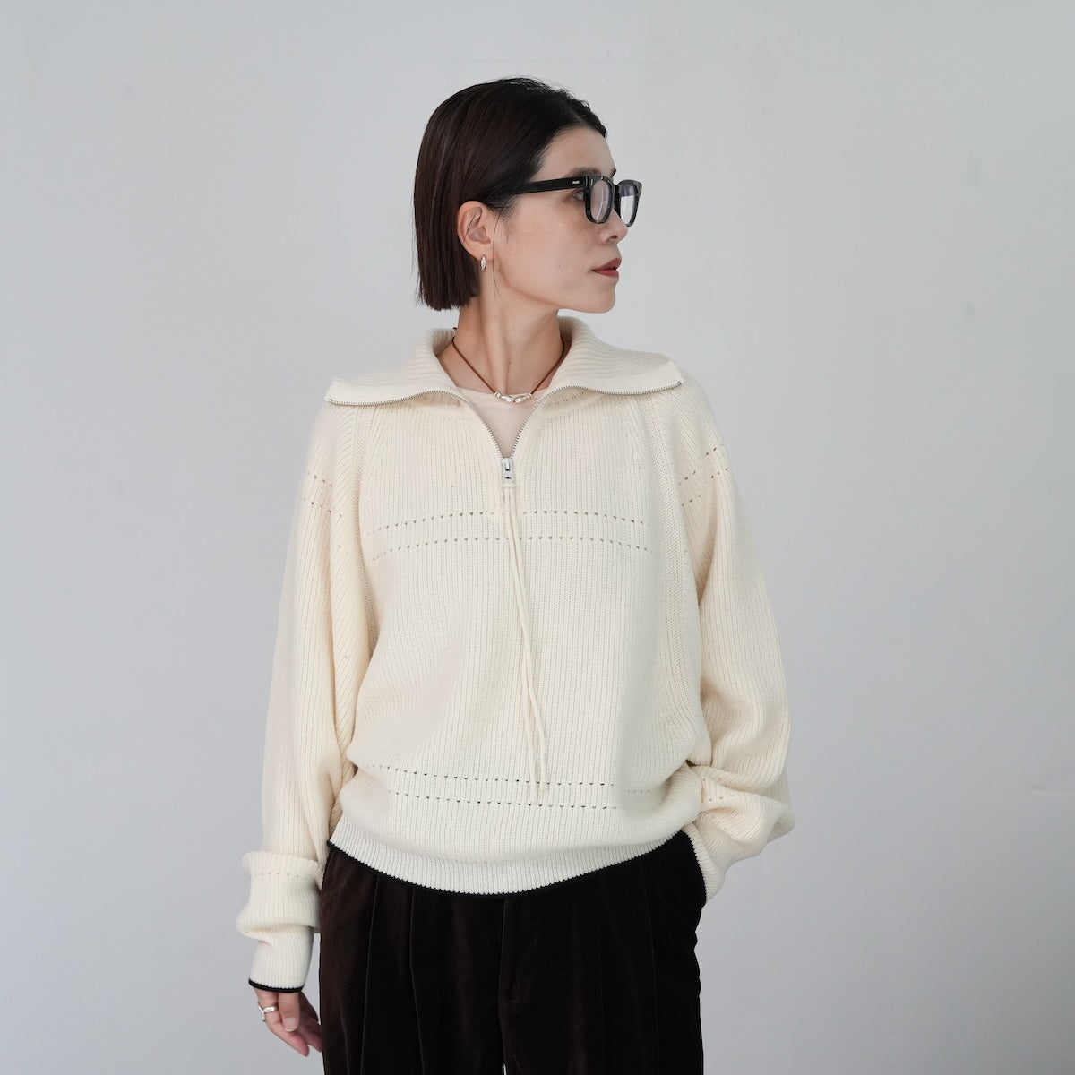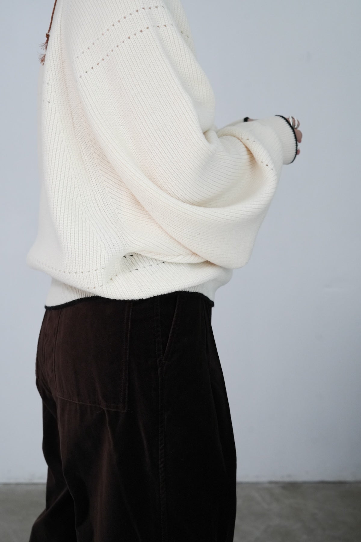 華奢さと無骨さを合わせた冬のセーター。