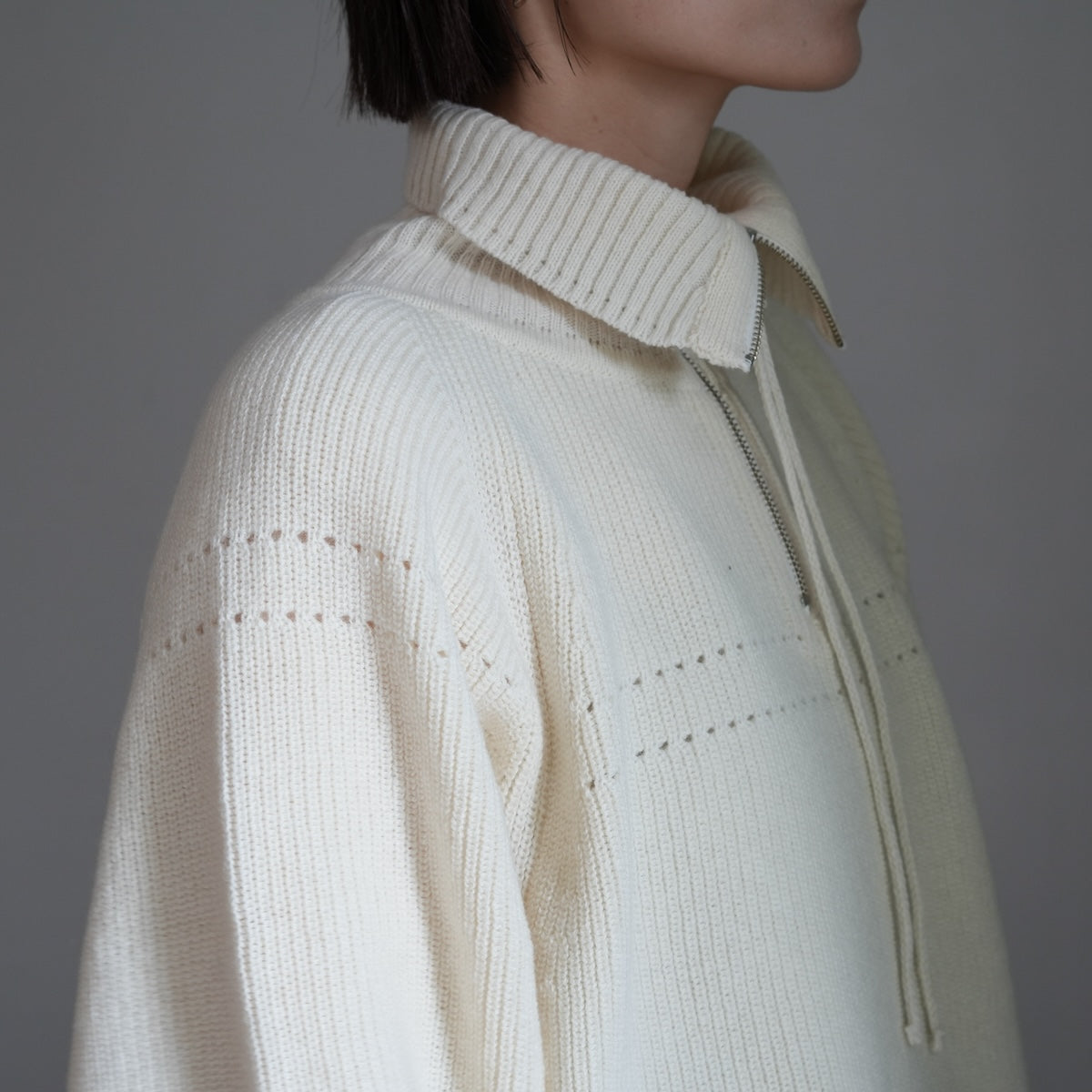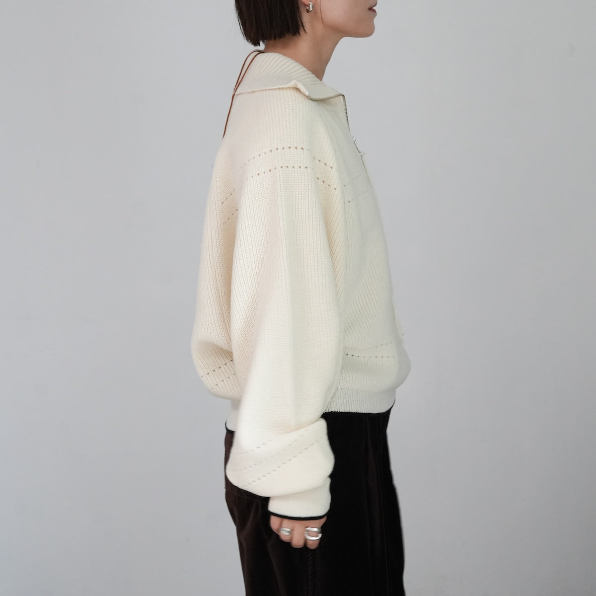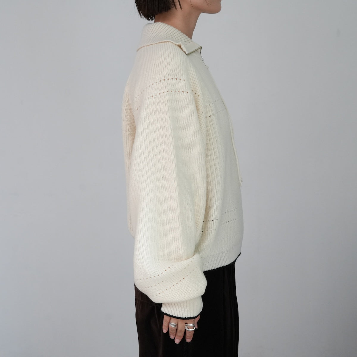 畦の重厚な見た目をミドルゲージで軽く仕立て、長いシーズン着用いただける丁度良いアイテムに仕上げています。