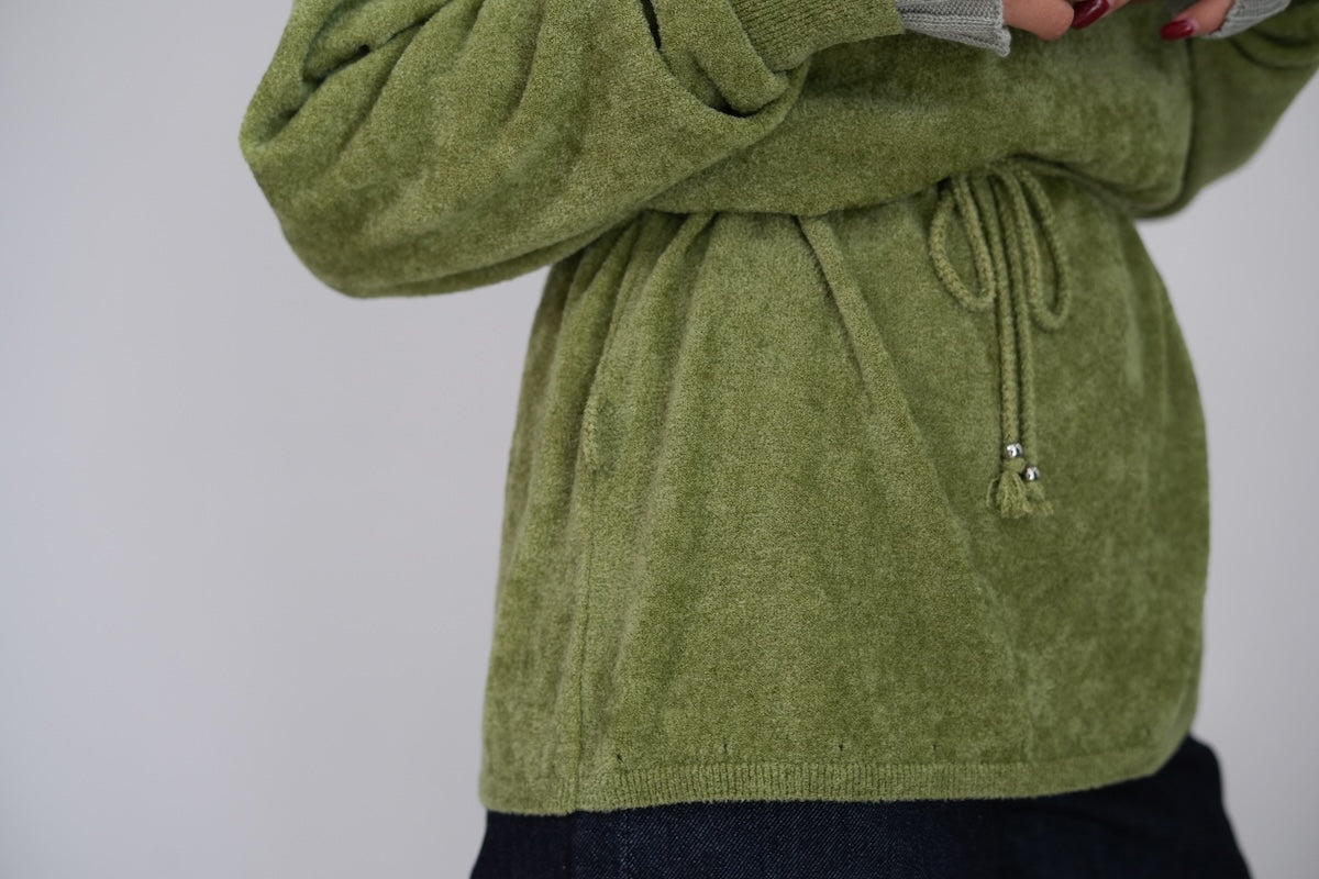 裾をアウトにしてシンプルに着たり、付属の紐でニュアンスを作ったり、着こなしの幅が広いのもJöICEADDEDの魅力。
