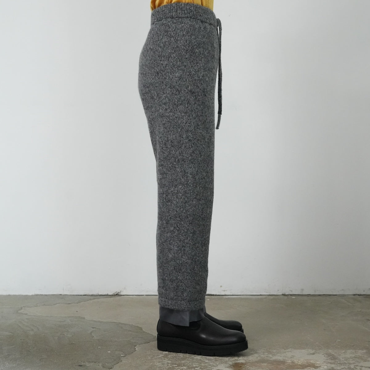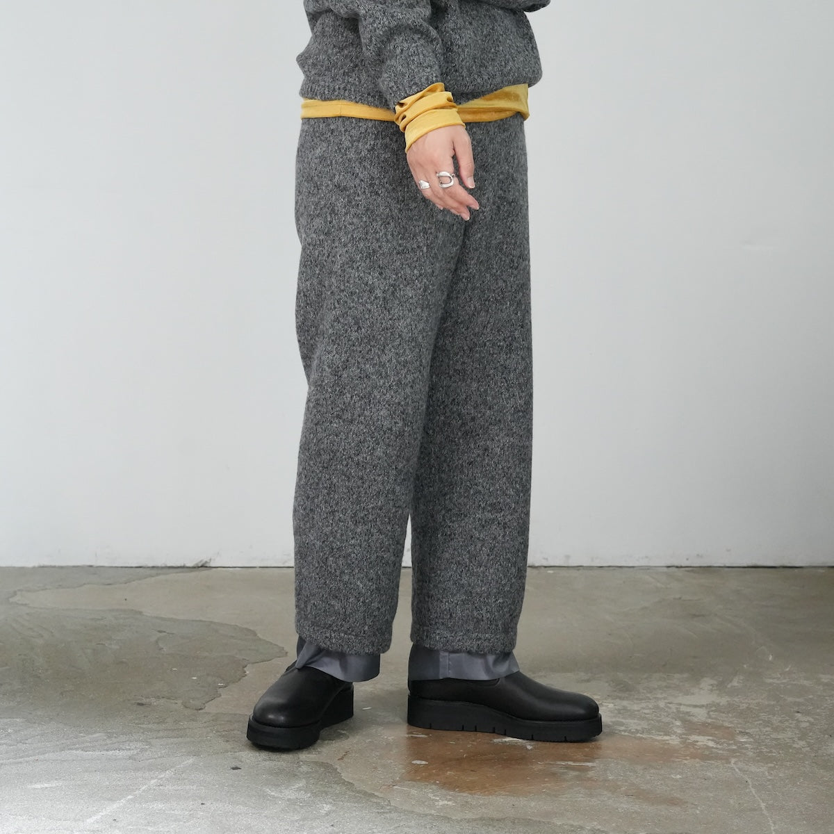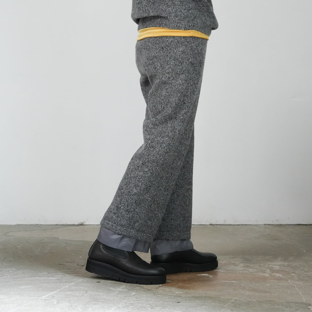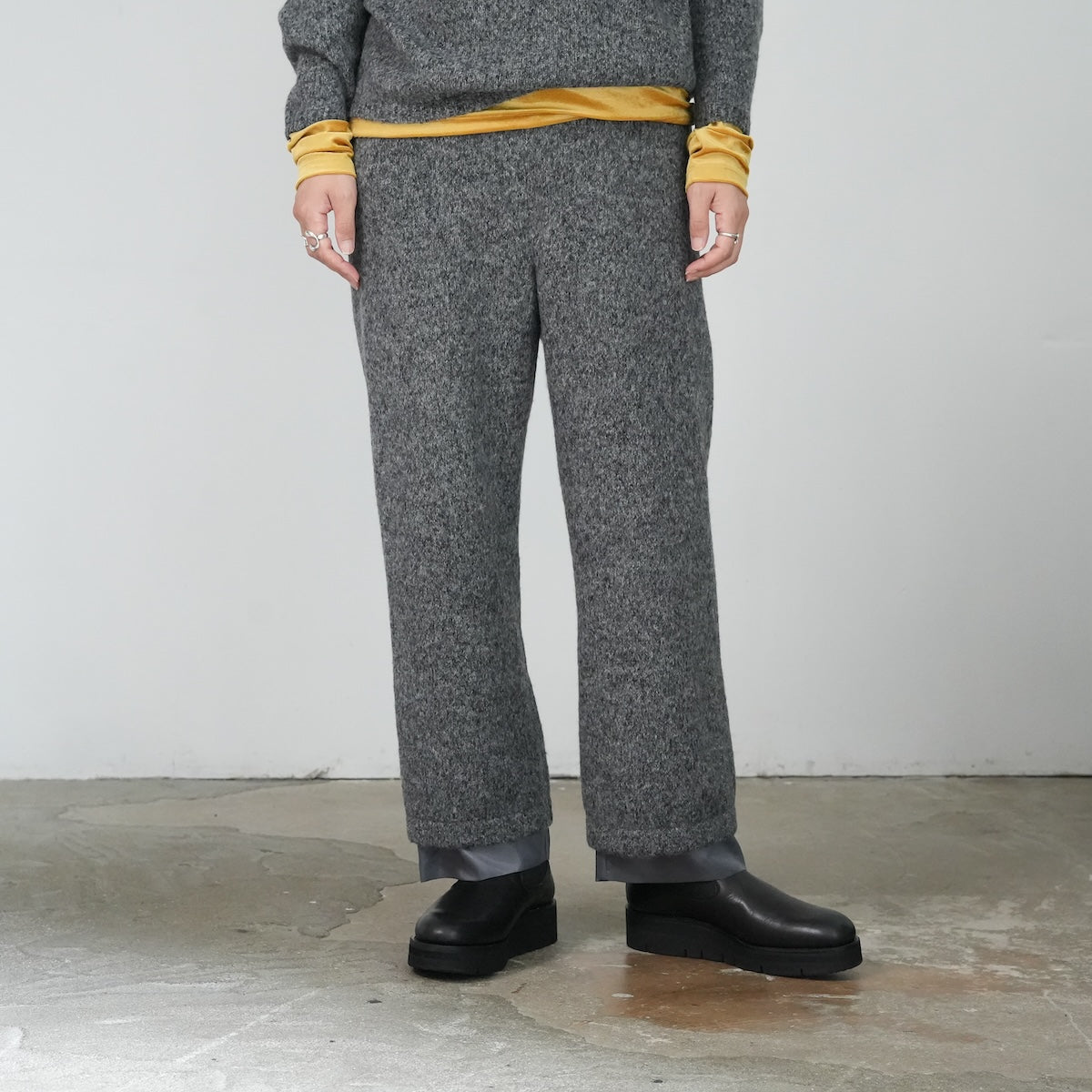 ウォーム感のあるニットパンツが引き締まり、少しクールな印象になります。
