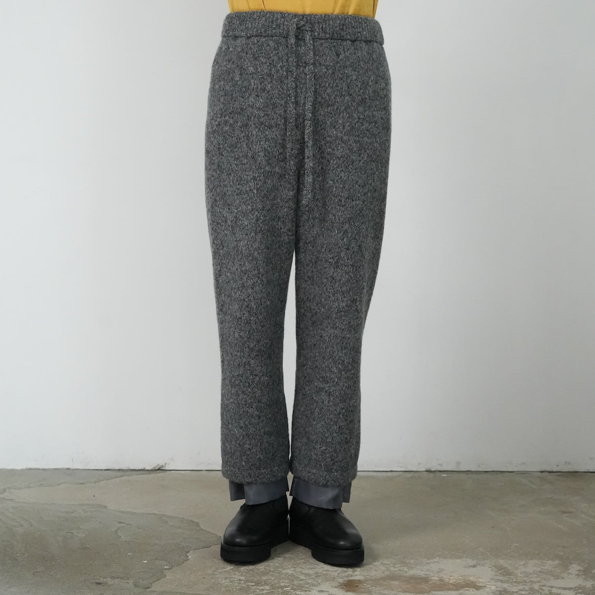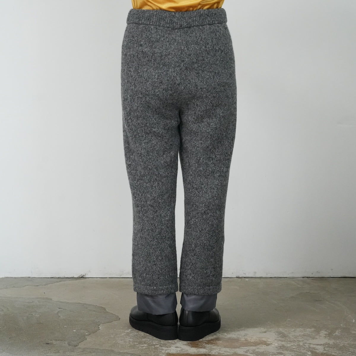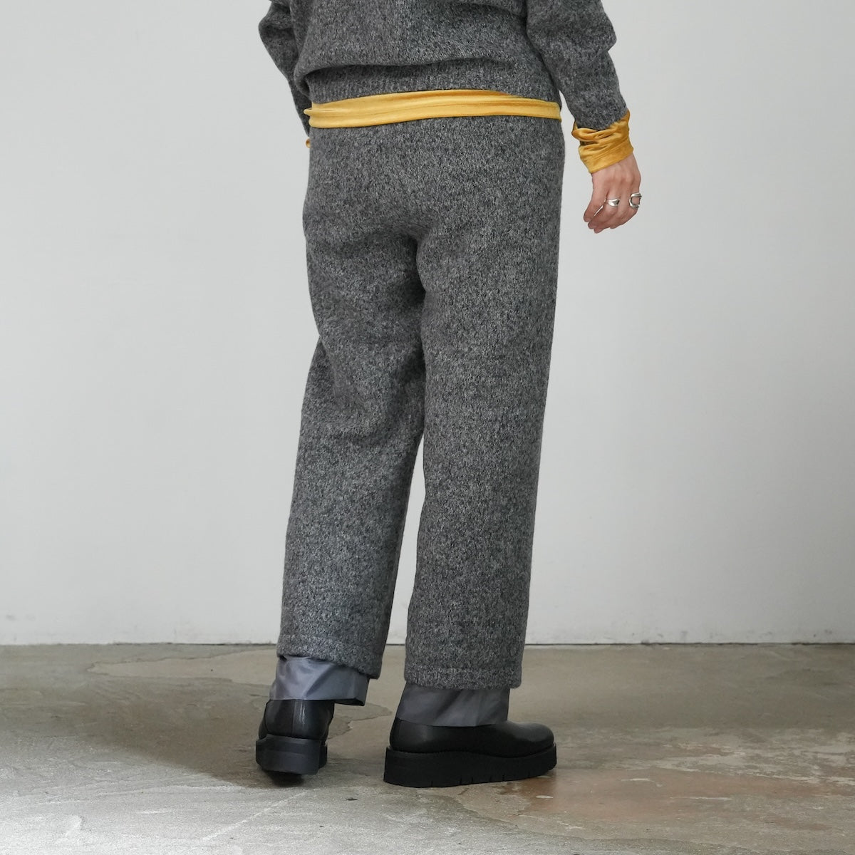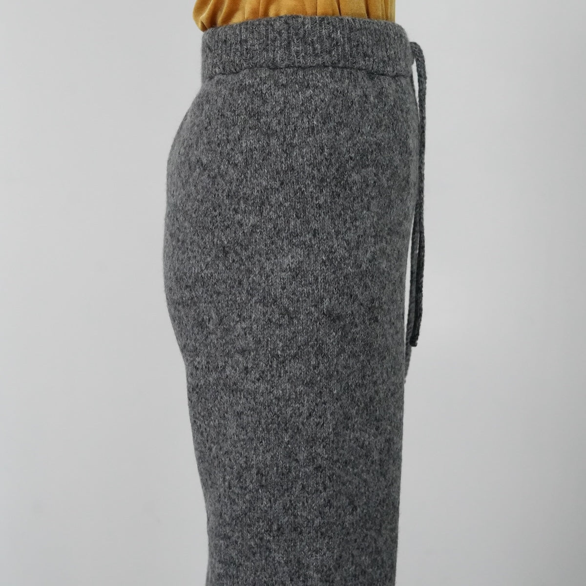 ウォーム感のあるニットパンツが引き締まり、少しクールな印象になります。