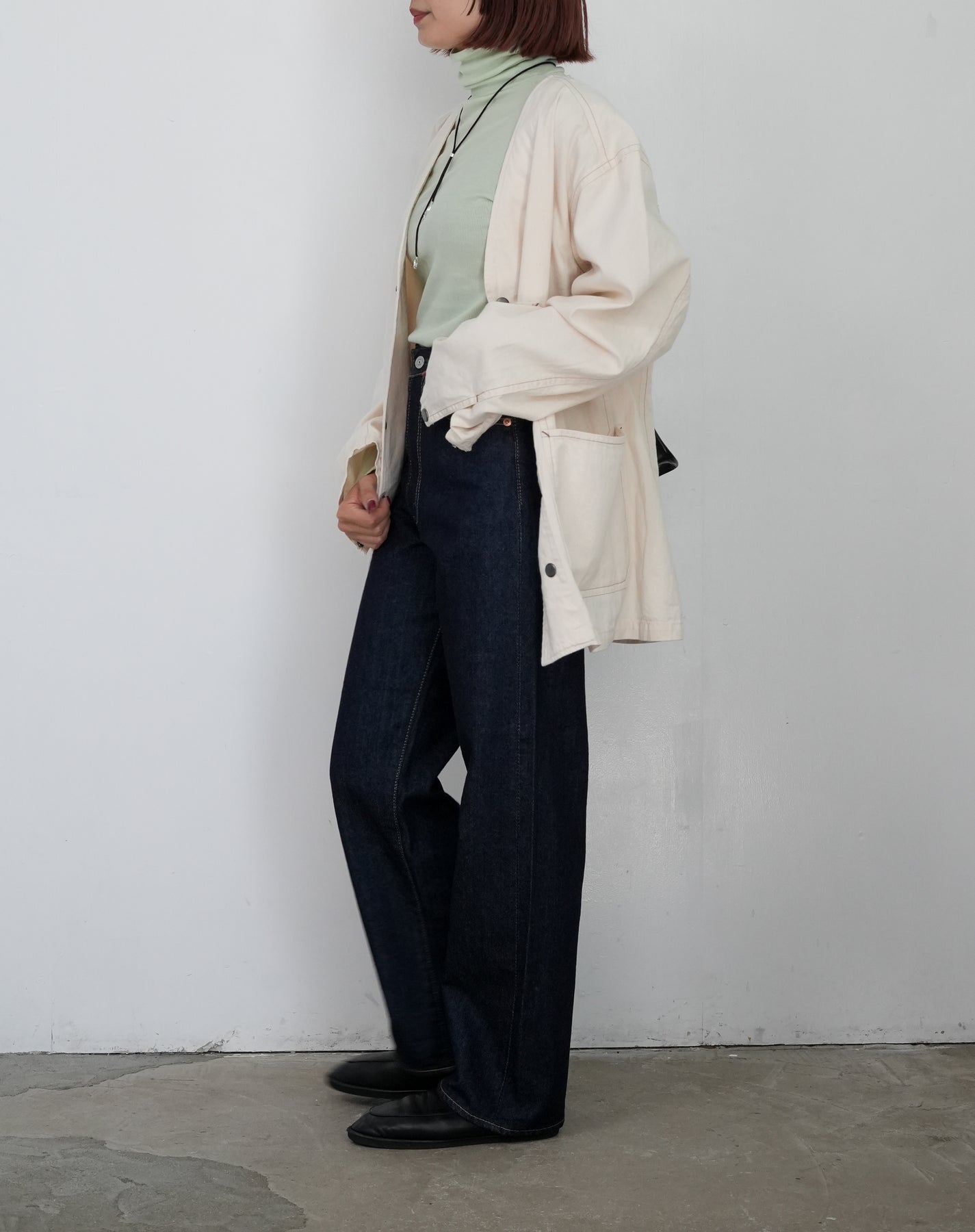 裾と袖口はロック始末で軽やかに仕上げています。