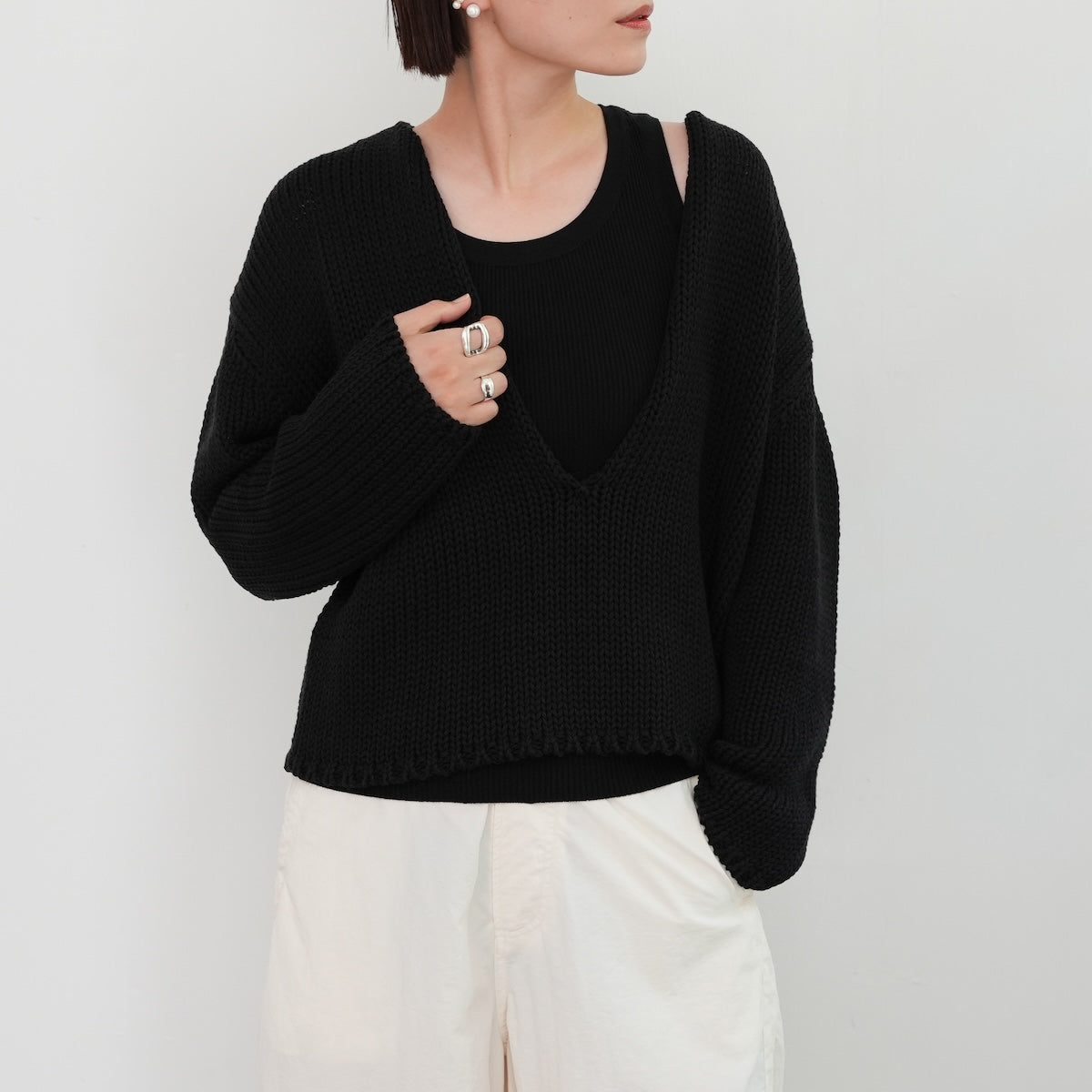 【25SS】MEYAME LONG SLIT KNIT "BLACK"